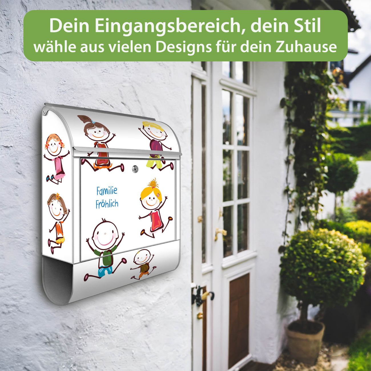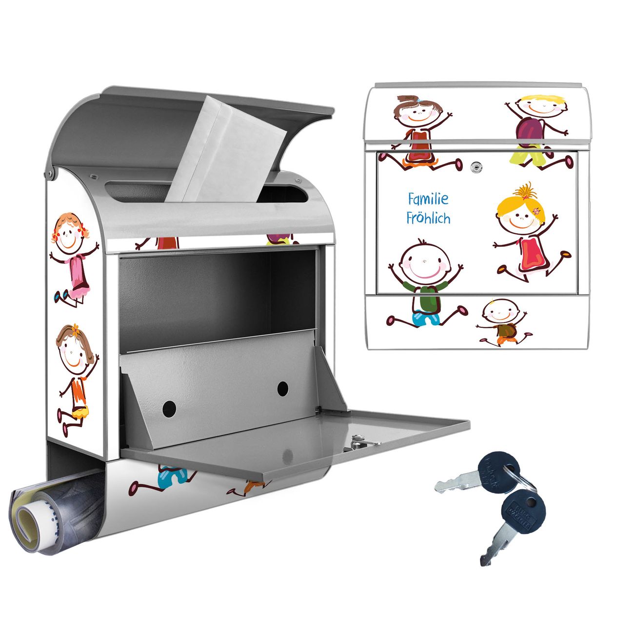 Großer Stahl Briefkasten Motiv Happy Kids