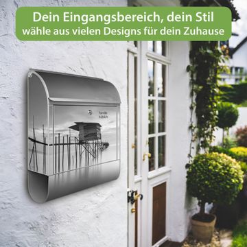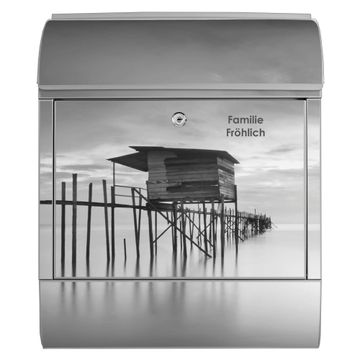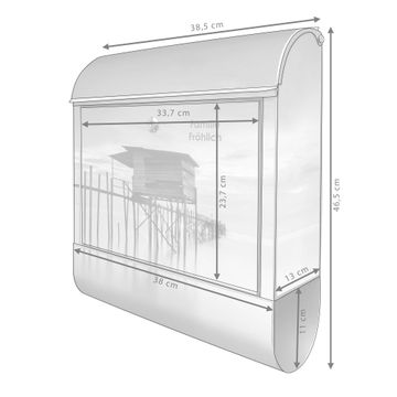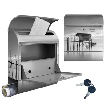 DESIGN: Der Postkasten mit Motiv Motiv Haus am See hat ein sehr ansprechendes und ausgefallenes Design, damit entlocken Sie Ihren Nachbarn und dem Postboten ein Lächeln. Heben Sie Sich von der tristen grauen Masse ab, ohne auf Funktionalität zu verzichten. DETAILS: Der Postkasten besteht aus pulverbeschichtetem Stahl. Er ist 38x46x12,5cm groß. Das Motiv besteht aus einer wetter- und UV-resistenten Folie, die mit einem Schutzlaminat überzogen ist, sodass der Briefkasten zusätzlich vor Kratzern geschützt ist. Der Briefkasten wird mit Montagematerial, zusätzlich zwei Schlüssel sowie einer Bohrschablone geliefert. NUTZEN: Sie können diesen Briefkasten sowohl als Wandbriefkasten montieren oder einen passenden Ständer kaufen und als Standbriefkasten einbetonieren. Die Größe bietet genügend Platz für Sendungen aller Art, der Einwurf fasst auch größere A4 Sendungen. BANJADO: Ihr Briefkasten wird in Sachsen in einer kleinen Manufaktur von Hand veredelt. Die Motivfolie ist lösungsmittelfrei und schutzlaminiert für einen langen Halt. Wir legen großen Wert auf die Verbindung von Funktionalität und Design. Sie erhalten Handarbeit aus Sachsen.