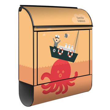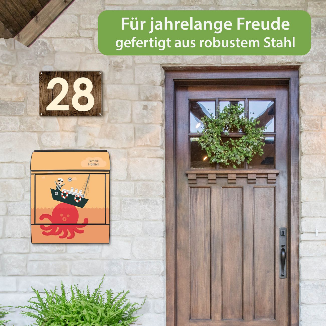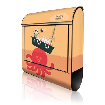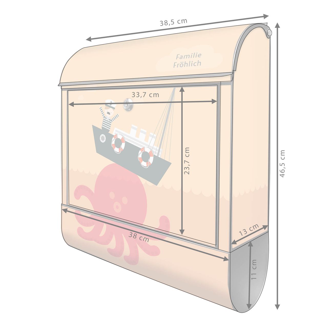 DESIGN: Der Postkasten mit Motiv Motiv Havarie hat ein sehr ansprechendes und ausgefallenes Design, damit entlocken Sie Ihren Nachbarn und dem Postboten ein Lächeln. Heben Sie Sich von der tristen grauen Masse ab, ohne auf Funktionalität zu verzichten. DETAILS: Der Postkasten besteht aus pulverbeschichtetem Stahl. Er ist 38x46x12,5cm groß. Das Motiv besteht aus einer wetter- und UV-resistenten Folie, die mit einem Schutzlaminat überzogen ist, sodass der Briefkasten zusätzlich vor Kratzern geschützt ist. Der Briefkasten wird mit Montagematerial, zusätzlich zwei Schlüssel sowie einer Bohrschablone geliefert. NUTZEN: Sie können diesen Briefkasten sowohl als Wandbriefkasten montieren oder einen passenden Ständer kaufen und als Standbriefkasten einbetonieren. Die Größe bietet genügend Platz für Sendungen aller Art, der Einwurf fasst auch größere A4 Sendungen. BANJADO: Ihr Briefkasten wird in Sachsen in einer kleinen Manufaktur von Hand veredelt. Die Motivfolie ist lösungsmittelfrei und schutzlaminiert für einen langen Halt. Wir legen großen Wert auf die Verbindung von Funktionalität und Design. Sie erhalten Handarbeit aus Sachsen.
