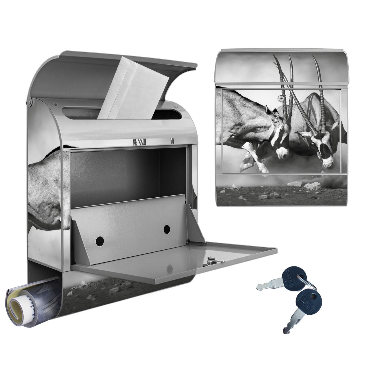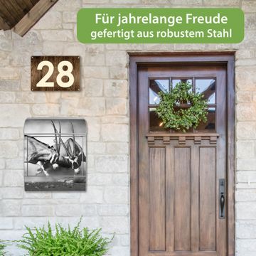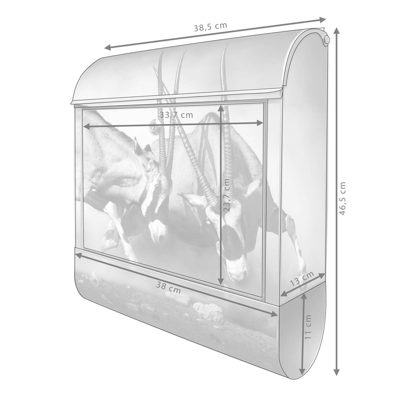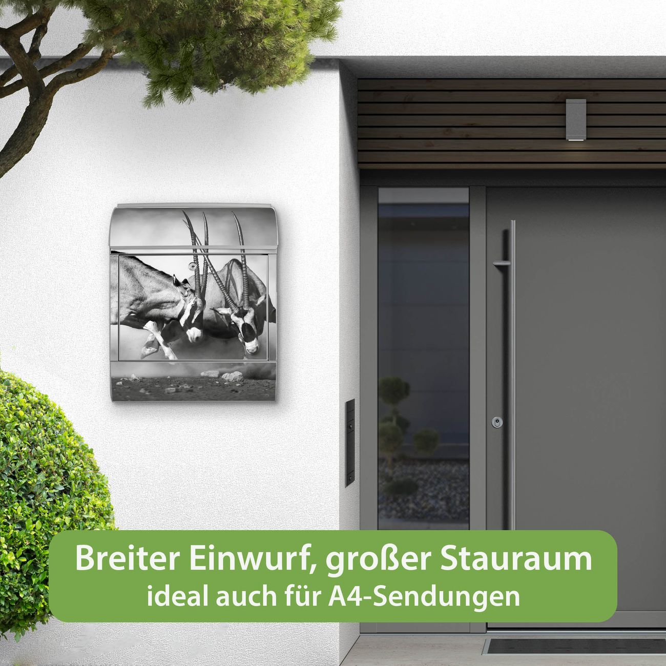 DESIGN: Der Postkasten mit Motiv Motiv Head Crash hat ein sehr ansprechendes und ausgefallenes Design, damit entlocken Sie Ihren Nachbarn und dem Postboten ein Lächeln. Heben Sie Sich von der tristen grauen Masse ab, ohne auf Funktionalität zu verzichten. DETAILS: Der Postkasten besteht aus pulverbeschichtetem Stahl. Er ist 38x46x12,5cm groß. Das Motiv besteht aus einer wetter- und UV-resistenten Folie, die mit einem Schutzlaminat überzogen ist, sodass der Briefkasten zusätzlich vor Kratzern geschützt ist. Der Briefkasten wird mit Montagematerial, zusätzlich zwei Schlüssel sowie einer Bohrschablone geliefert. NUTZEN: Sie können diesen Briefkasten sowohl als Wandbriefkasten montieren oder einen passenden Ständer kaufen und als Standbriefkasten einbetonieren. Die Größe bietet genügend Platz für Sendungen aller Art, der Einwurf fasst auch größere A4 Sendungen. BANJADO: Ihr Briefkasten wird in Sachsen in einer kleinen Manufaktur von Hand veredelt. Die Motivfolie ist lösungsmittelfrei und schutzlaminiert für einen langen Halt. Wir legen großen Wert auf die Verbindung von Funktionalität und Design. Sie erhalten Handarbeit aus Sachsen.