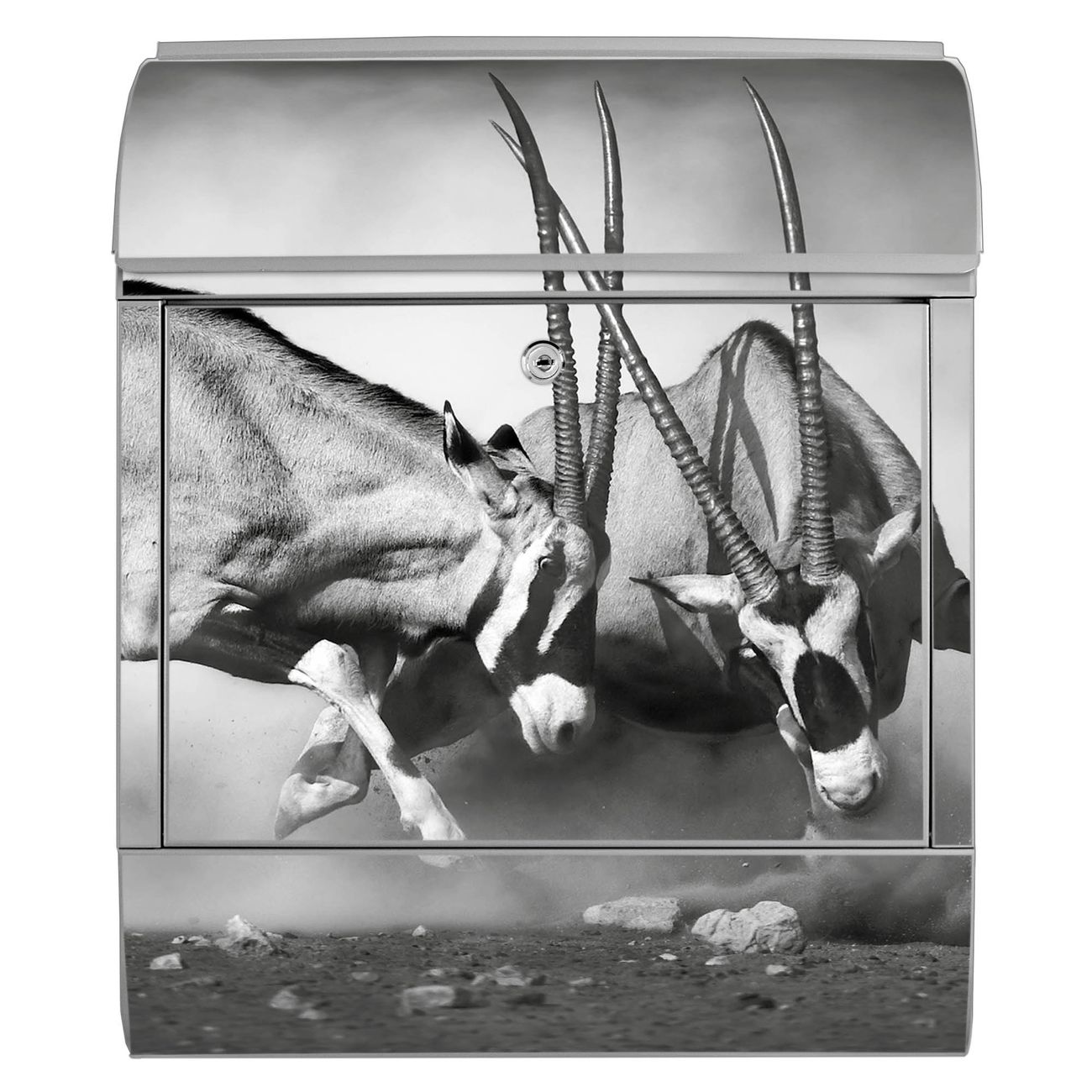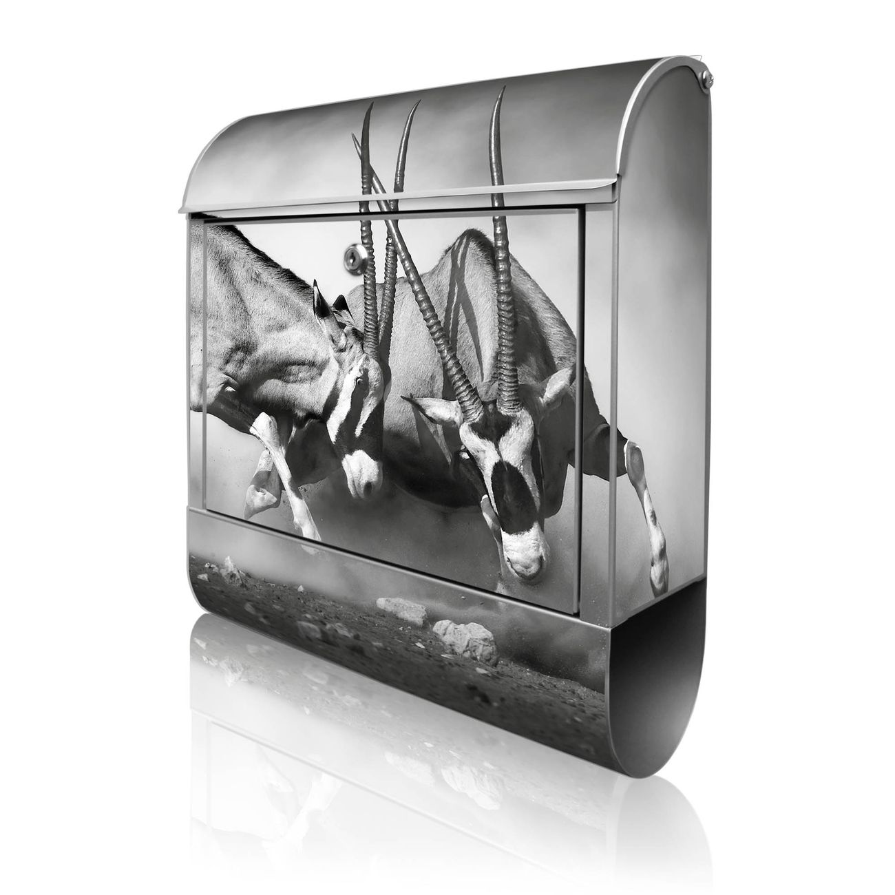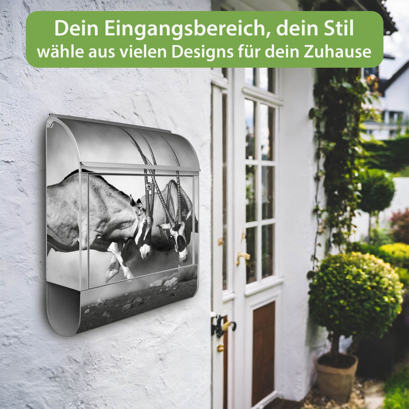 DESIGN: Der Postkasten mit Motiv Motiv Head Crash hat ein sehr ansprechendes und ausgefallenes Design, damit entlocken Sie Ihren Nachbarn und dem Postboten ein Lächeln. Heben Sie Sich von der tristen grauen Masse ab, ohne auf Funktionalität zu verzichten. DETAILS: Der Postkasten besteht aus pulverbeschichtetem Stahl. Er ist 38x46x12,5cm groß. Das Motiv besteht aus einer wetter- und UV-resistenten Folie, die mit einem Schutzlaminat überzogen ist, sodass der Briefkasten zusätzlich vor Kratzern geschützt ist. Der Briefkasten wird mit Montagematerial, zusätzlich zwei Schlüssel sowie einer Bohrschablone geliefert. NUTZEN: Sie können diesen Briefkasten sowohl als Wandbriefkasten montieren oder einen passenden Ständer kaufen und als Standbriefkasten einbetonieren. Die Größe bietet genügend Platz für Sendungen aller Art, der Einwurf fasst auch größere A4 Sendungen. BANJADO: Ihr Briefkasten wird in Sachsen in einer kleinen Manufaktur von Hand veredelt. Die Motivfolie ist lösungsmittelfrei und schutzlaminiert für einen langen Halt. Wir legen großen Wert auf die Verbindung von Funktionalität und Design. Sie erhalten Handarbeit aus Sachsen.
