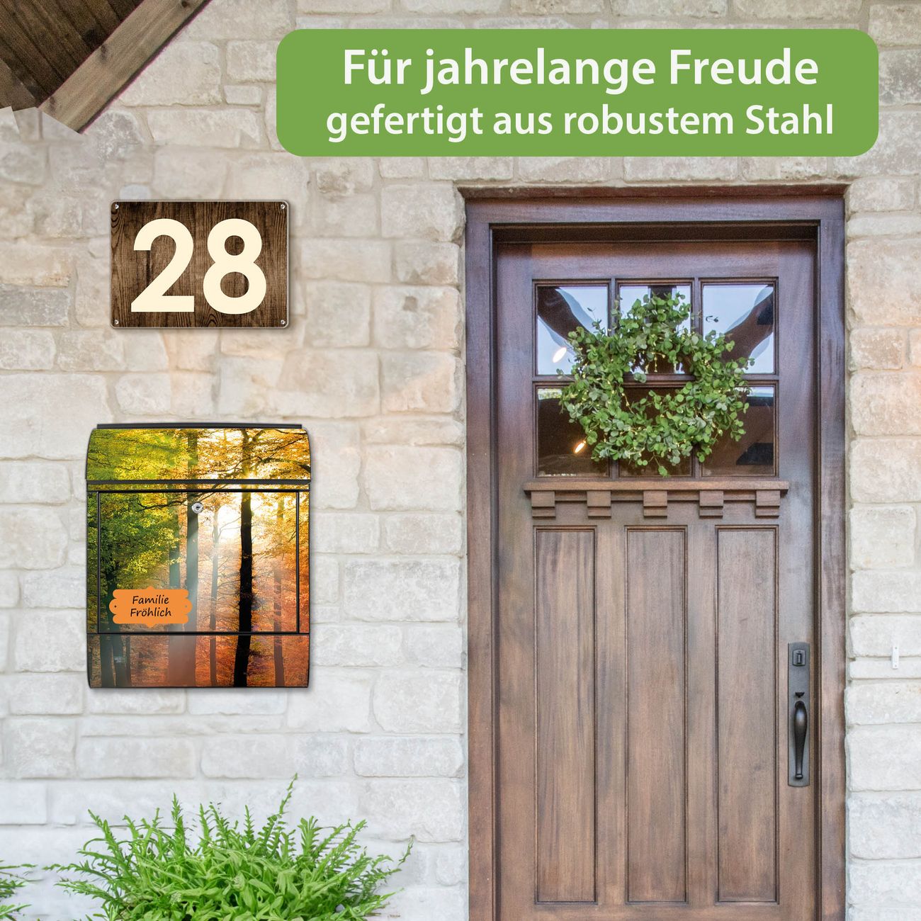 Großer Stahl Briefkasten Motiv Herbstwald