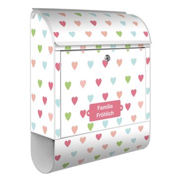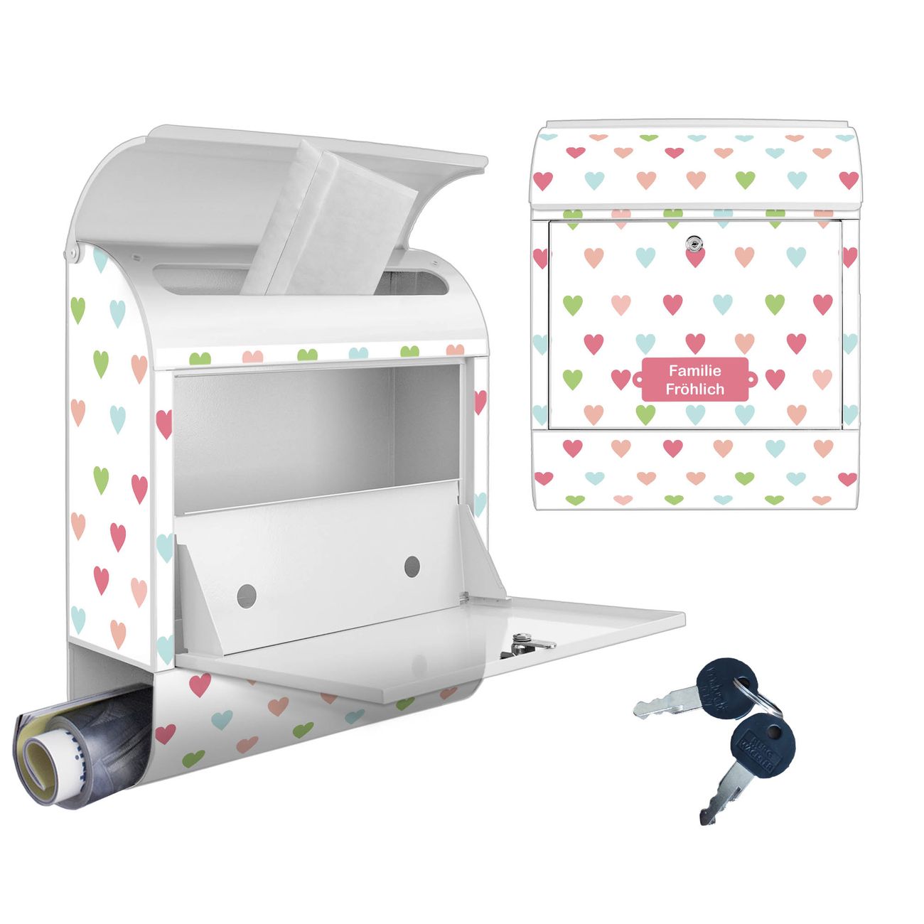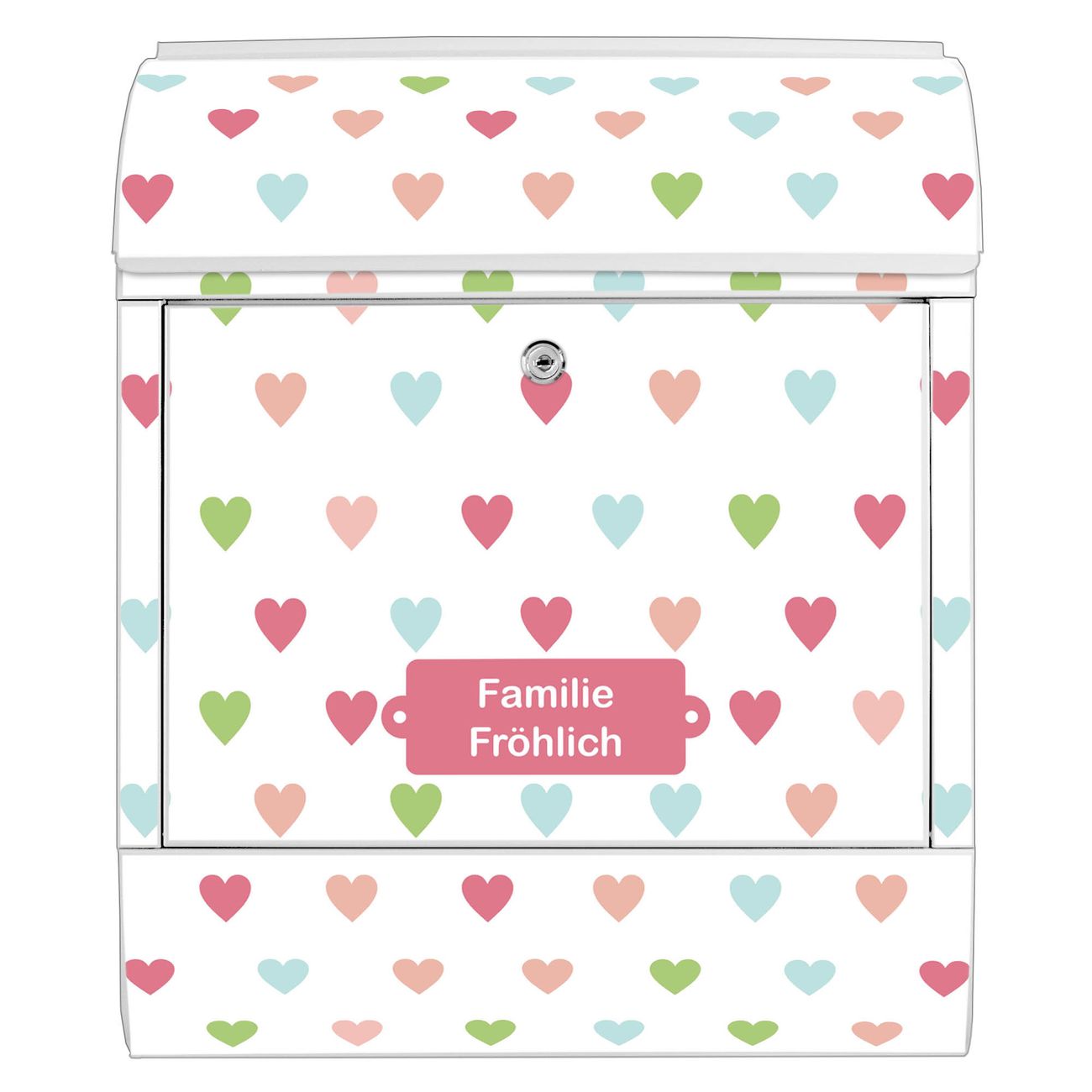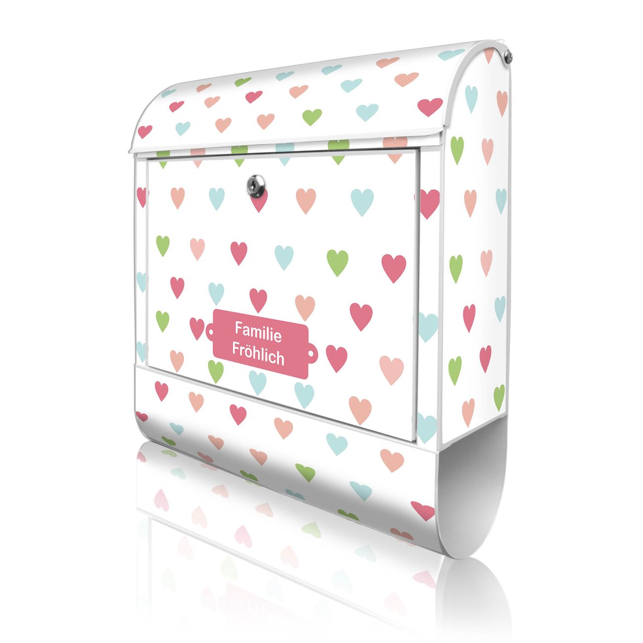 Großer Stahl Briefkasten Motiv Herzen Auf Weiß