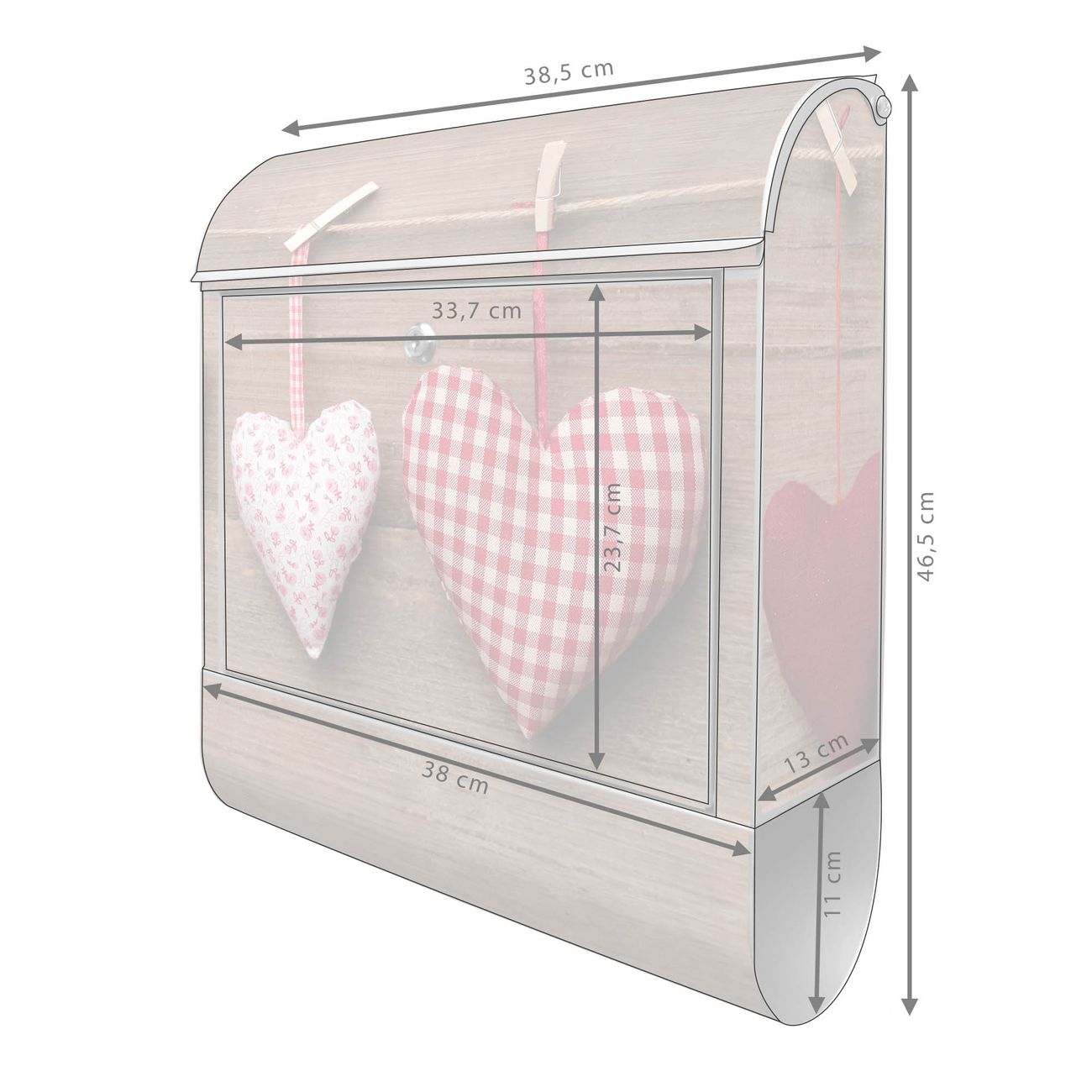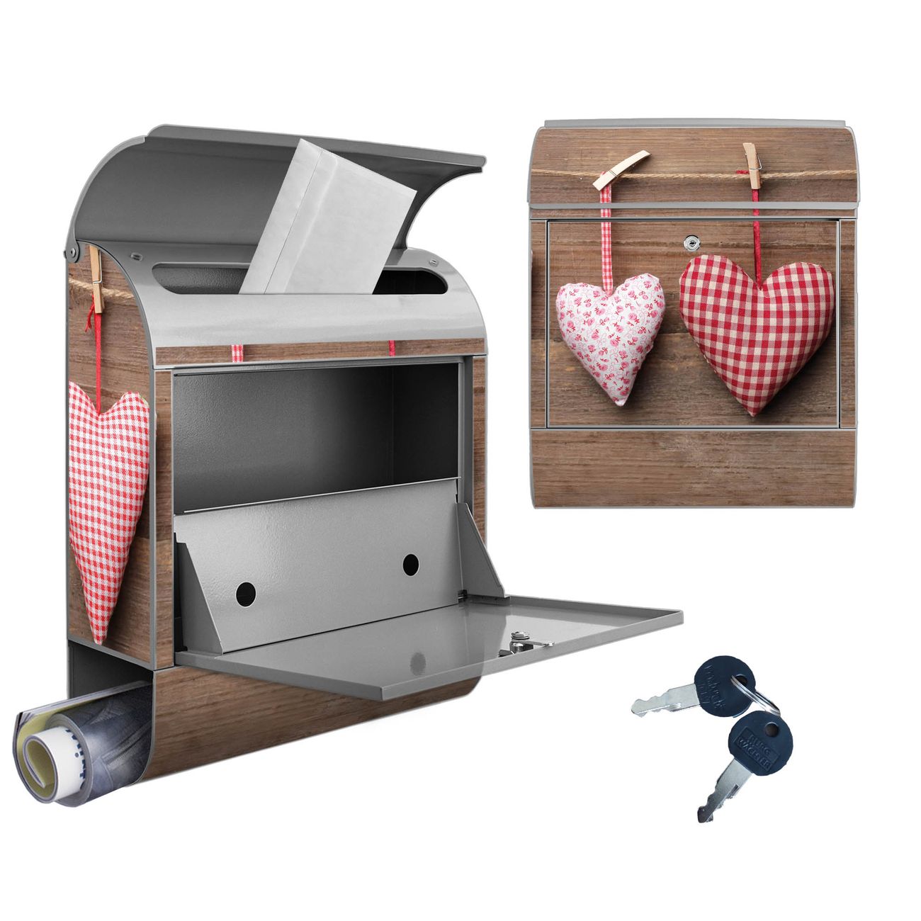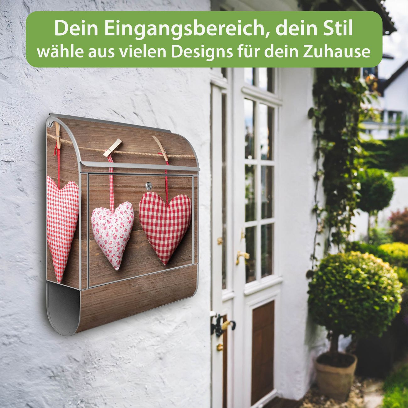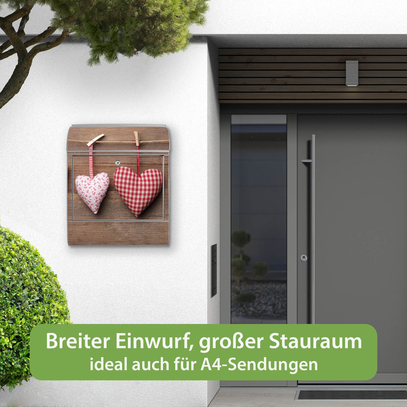 Großer Stahl Briefkasten Motiv Herzen