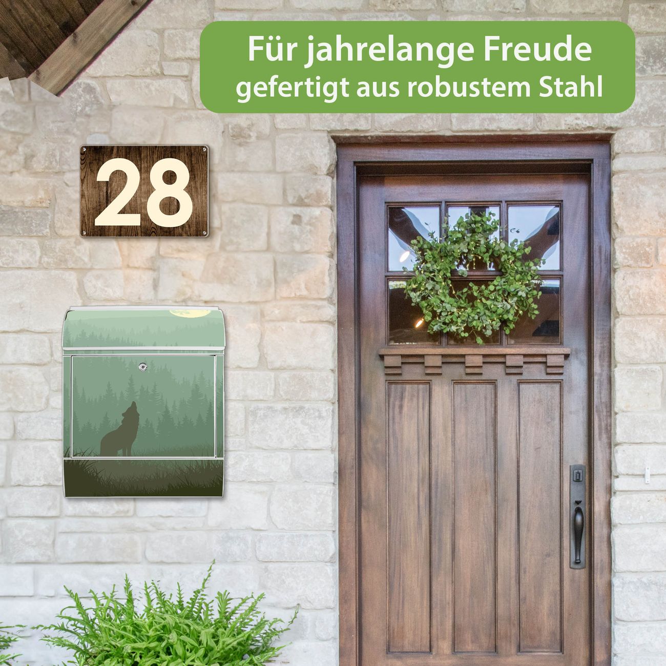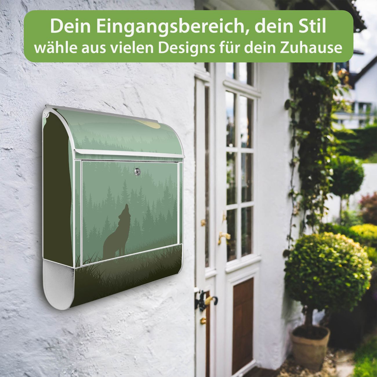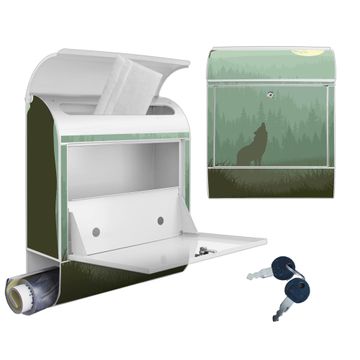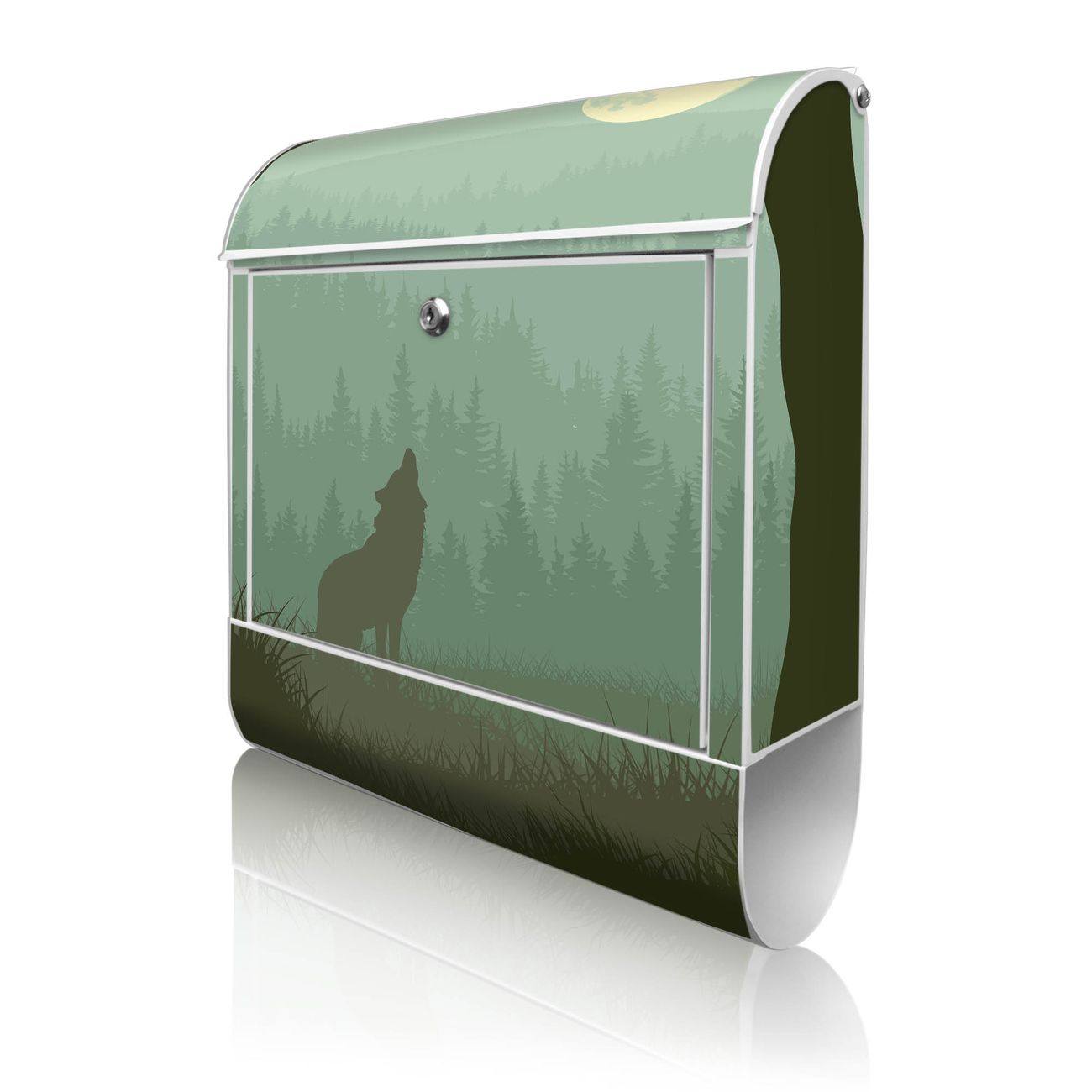 Großer Stahl Briefkasten Motiv Heulender Wolf
