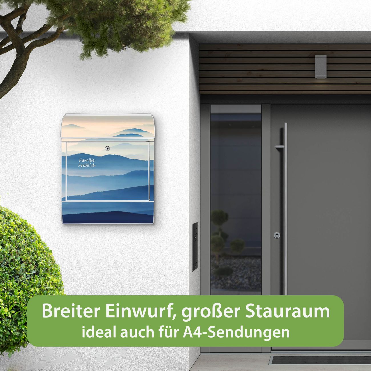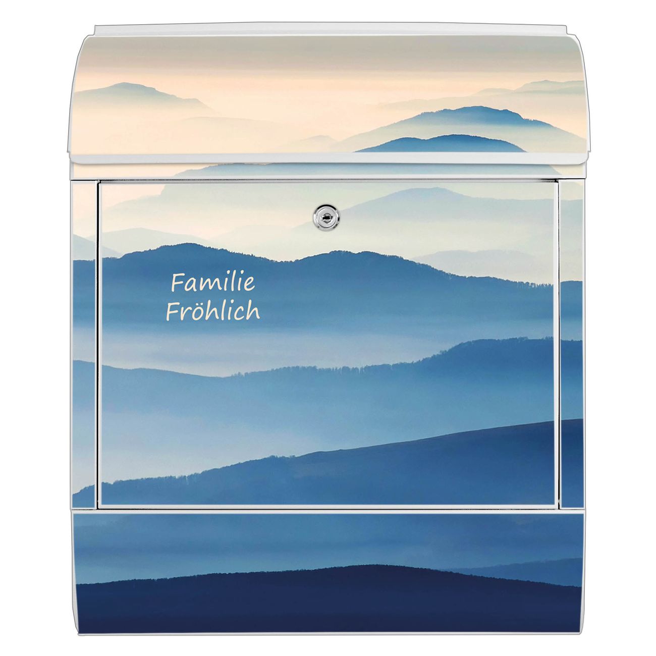 Großer Stahl Briefkasten Motiv Hinter den Bergen
