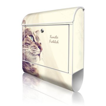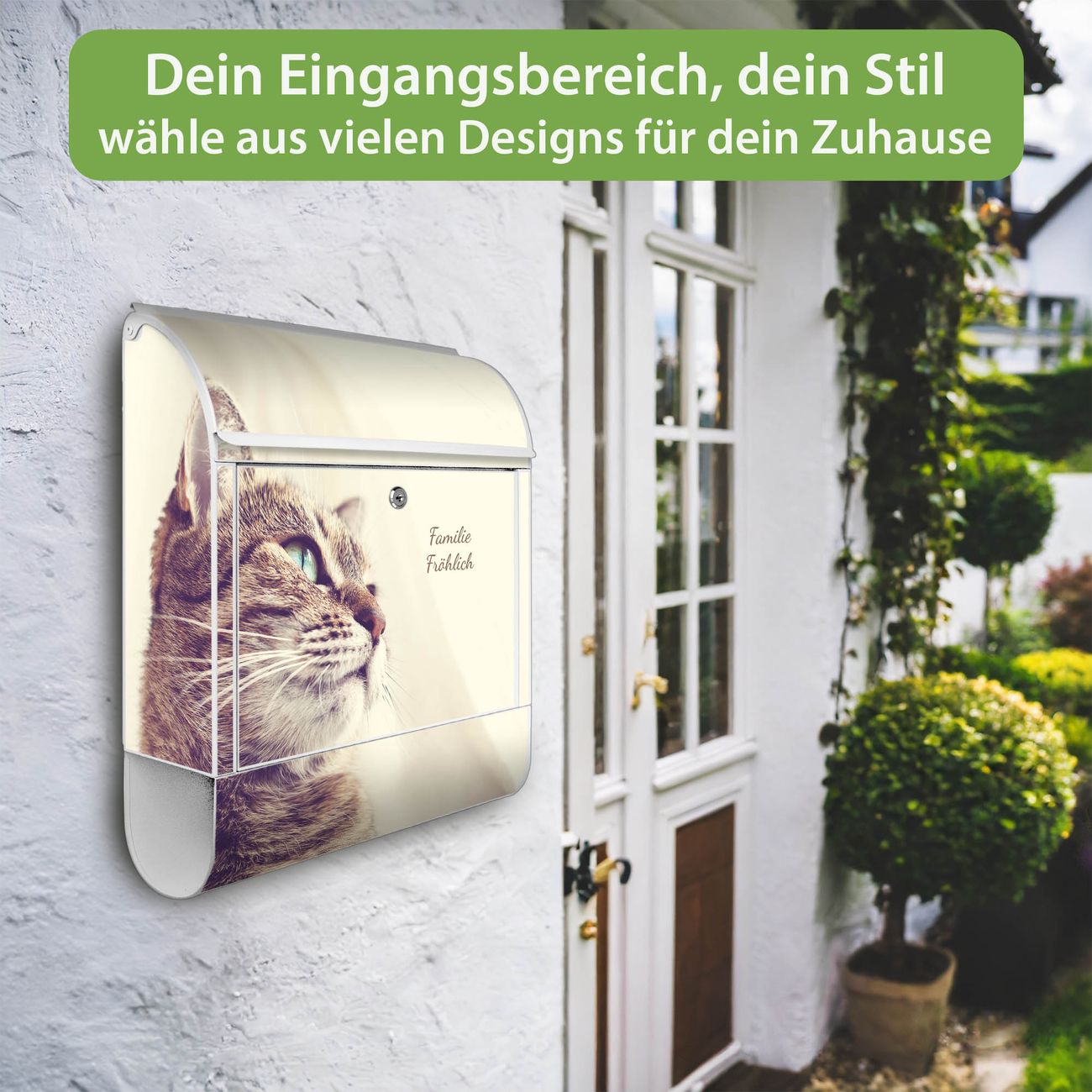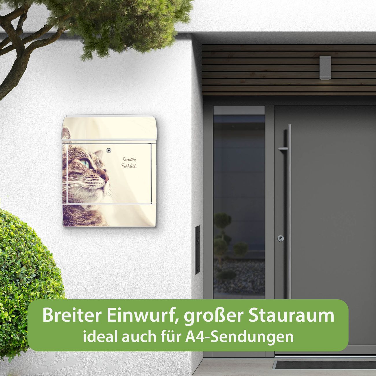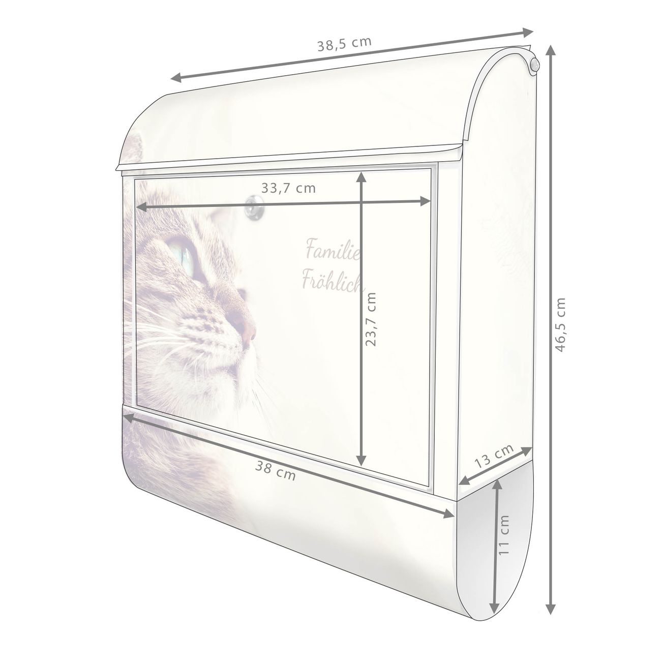 DESIGN: Der Postkasten mit Motiv Motiv Holgerson hat ein sehr ansprechendes und ausgefallenes Design, damit entlocken Sie Ihren Nachbarn und dem Postboten ein Lächeln. Heben Sie Sich von der tristen grauen Masse ab, ohne auf Funktionalität zu verzichten. DETAILS: Der Postkasten besteht aus pulverbeschichtetem Stahl. Er ist 38x46x12,5cm groß. Das Motiv besteht aus einer wetter- und UV-resistenten Folie, die mit einem Schutzlaminat überzogen ist, sodass der Briefkasten zusätzlich vor Kratzern geschützt ist. Der Briefkasten wird mit Montagematerial, zusätzlich zwei Schlüssel sowie einer Bohrschablone geliefert. NUTZEN: Sie können diesen Briefkasten sowohl als Wandbriefkasten montieren oder einen passenden Ständer kaufen und als Standbriefkasten einbetonieren. Die Größe bietet genügend Platz für Sendungen aller Art, der Einwurf fasst auch größere A4 Sendungen. BANJADO: Ihr Briefkasten wird in Sachsen in einer kleinen Manufaktur von Hand veredelt. Die Motivfolie ist lösungsmittelfrei und schutzlaminiert für einen langen Halt. Wir legen großen Wert auf die Verbindung von Funktionalität und Design. Sie erhalten Handarbeit aus Sachsen.