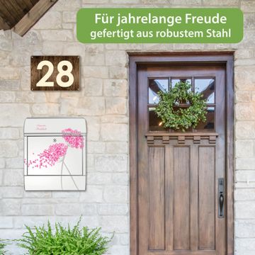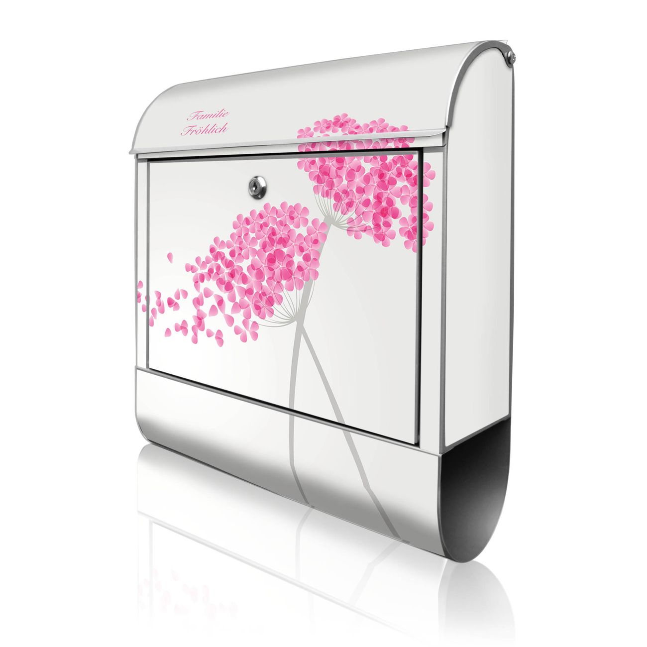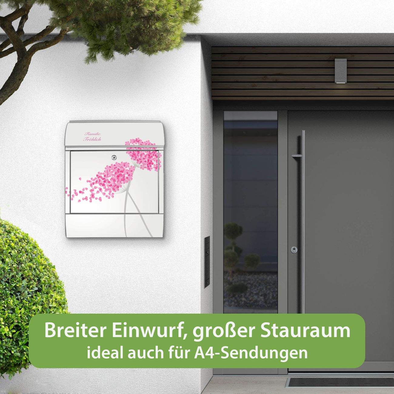 Großer Stahl Briefkasten Motiv Holunder Pink