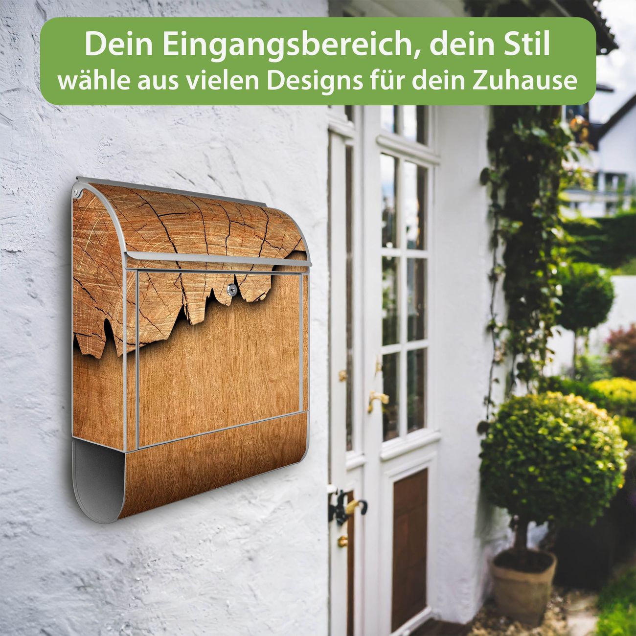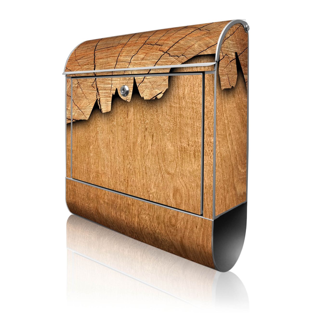 Großer Stahl Briefkasten Motiv Holz