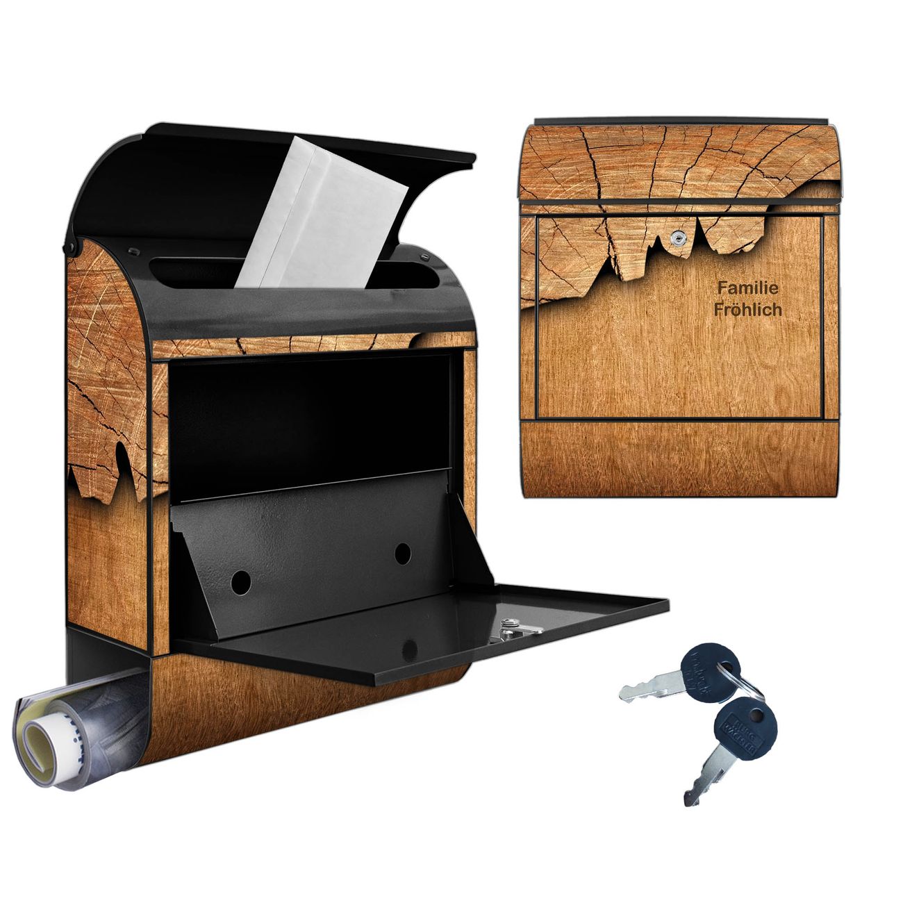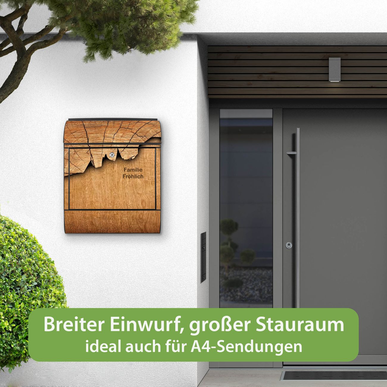 Großer Stahl Briefkasten Motiv Holz