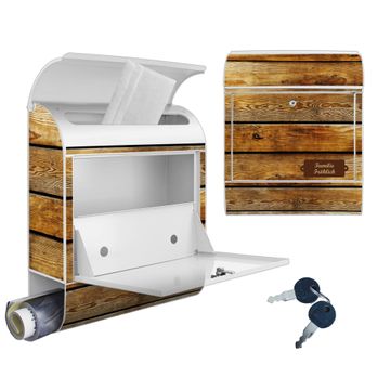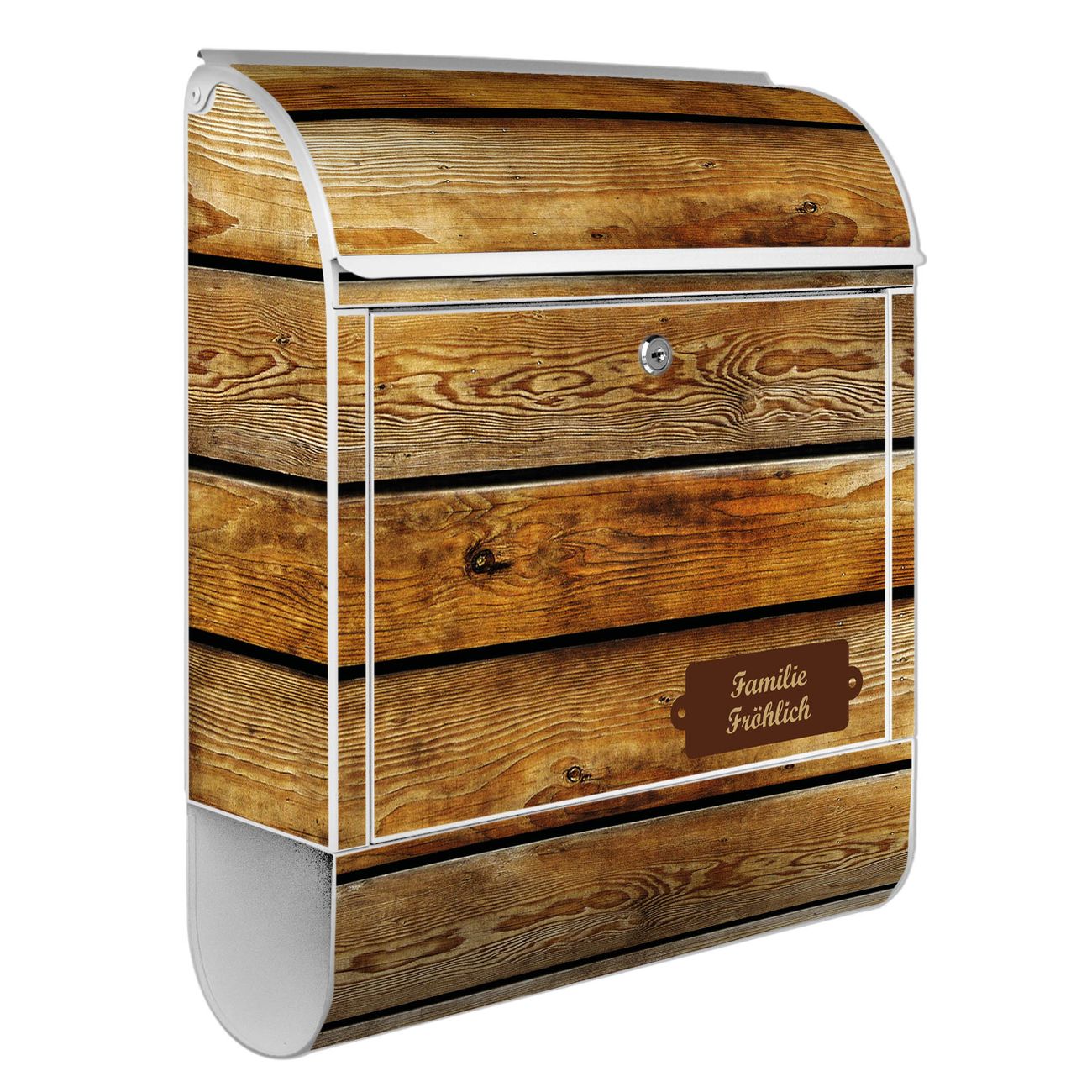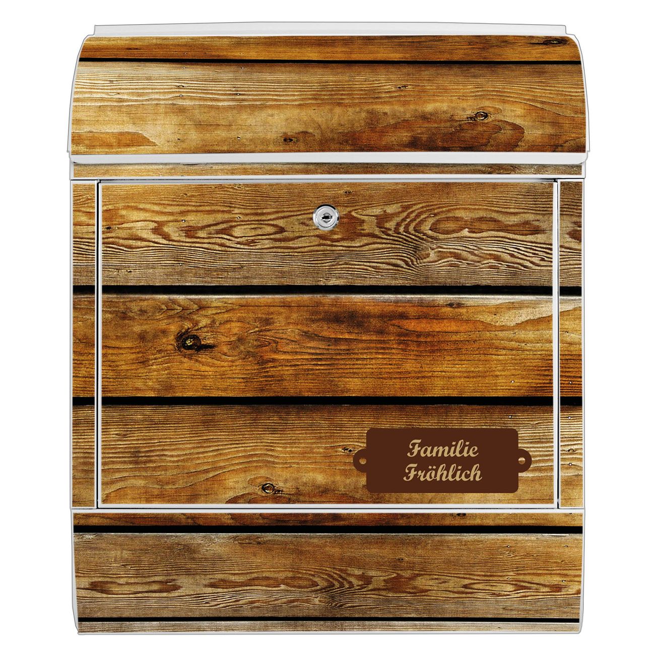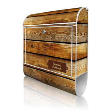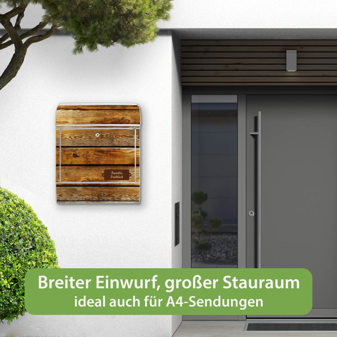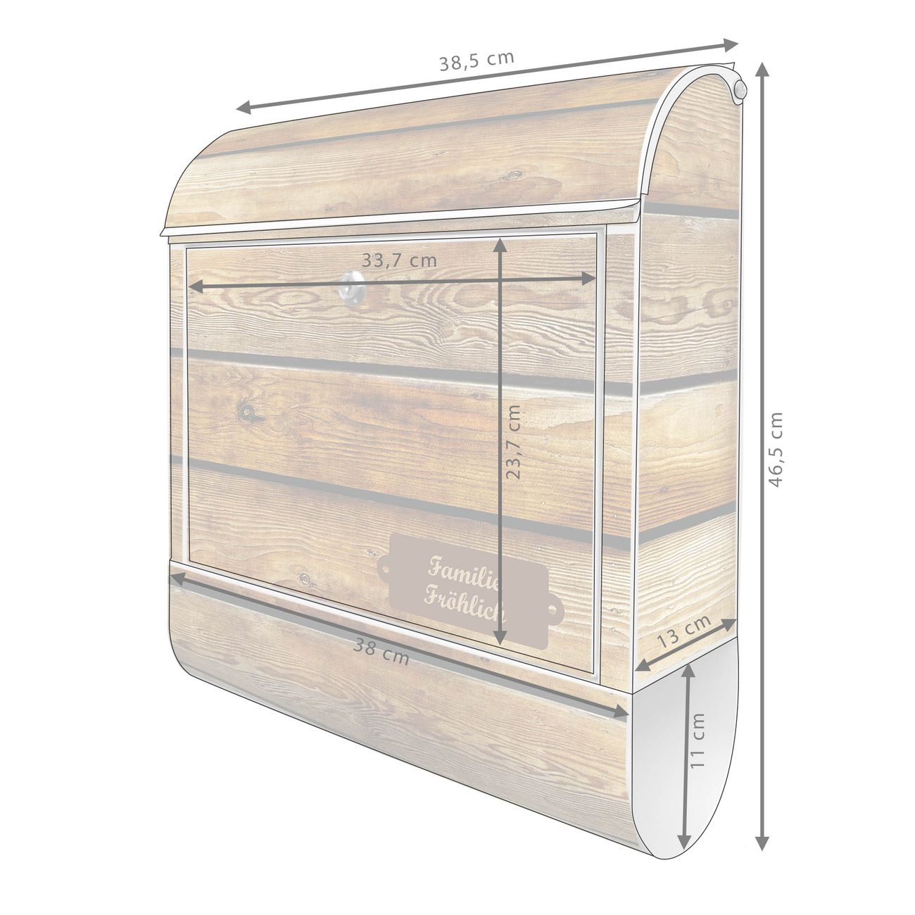DESIGN: Der Postkasten mit Motiv Motiv Holzbretter hat ein sehr ansprechendes und ausgefallenes Design, damit entlocken Sie Ihren Nachbarn und dem Postboten ein Lächeln. Heben Sie Sich von der tristen grauen Masse ab, ohne auf Funktionalität zu verzichten. DETAILS: Der Postkasten besteht aus pulverbeschichtetem Stahl. Er ist 38x46x12,5cm groß. Das Motiv besteht aus einer wetter- und UV-resistenten Folie, die mit einem Schutzlaminat überzogen ist, sodass der Briefkasten zusätzlich vor Kratzern geschützt ist. Der Briefkasten wird mit Montagematerial, zusätzlich zwei Schlüssel sowie einer Bohrschablone geliefert. NUTZEN: Sie können diesen Briefkasten sowohl als Wandbriefkasten montieren oder einen passenden Ständer kaufen und als Standbriefkasten einbetonieren. Die Größe bietet genügend Platz für Sendungen aller Art, der Einwurf fasst auch größere A4 Sendungen. BANJADO: Ihr Briefkasten wird in Sachsen in einer kleinen Manufaktur von Hand veredelt. Die Motivfolie ist lösungsmittelfrei und schutzlaminiert für einen langen Halt. Wir legen großen Wert auf die Verbindung von Funktionalität und Design. Sie erhalten Handarbeit aus Sachsen.
