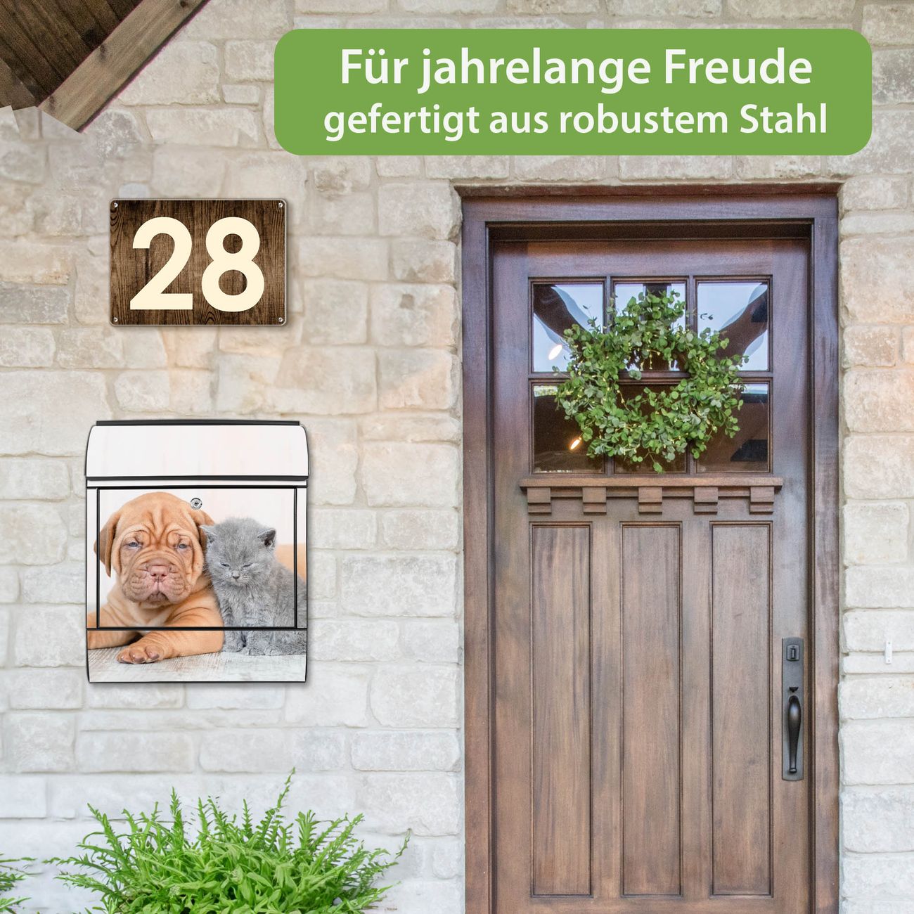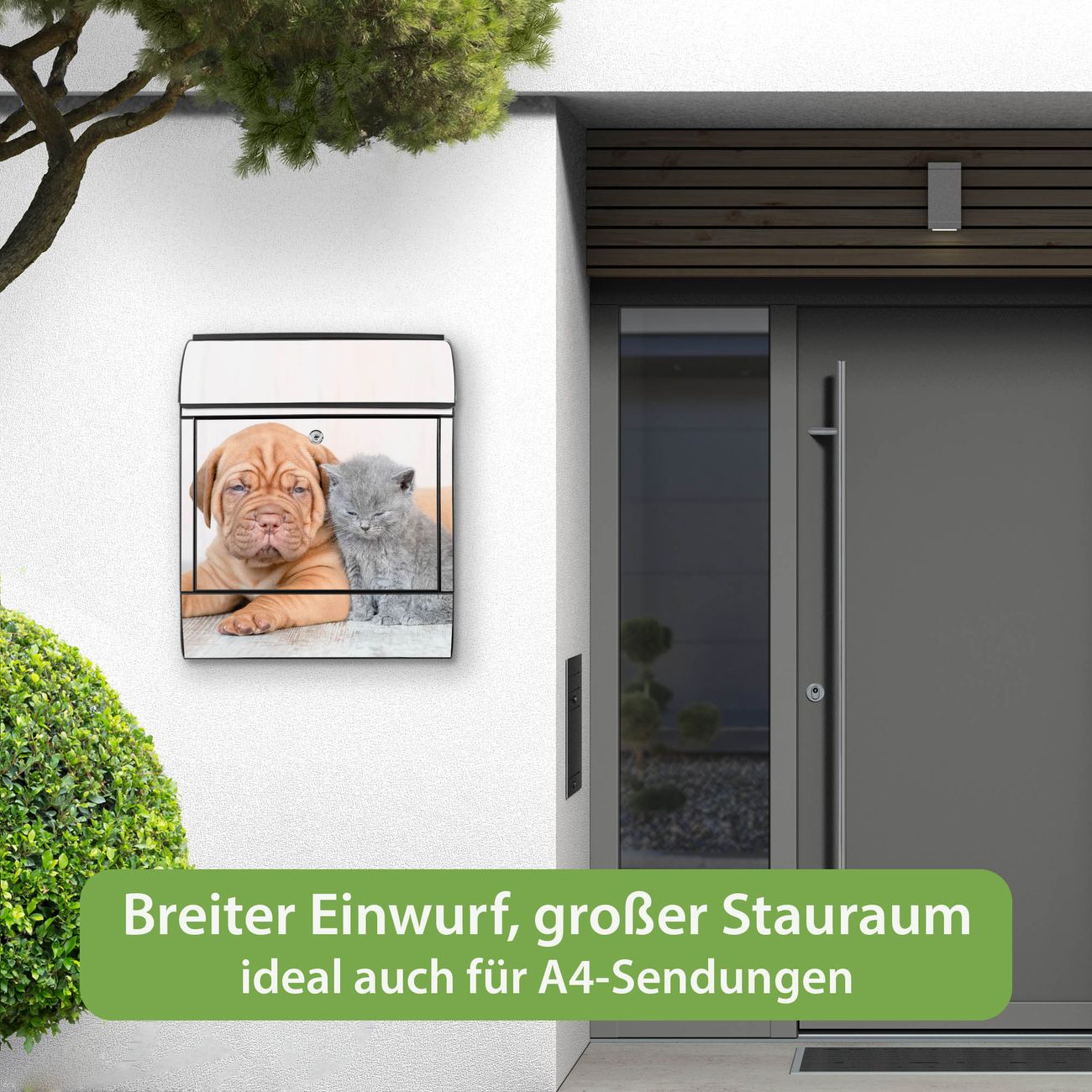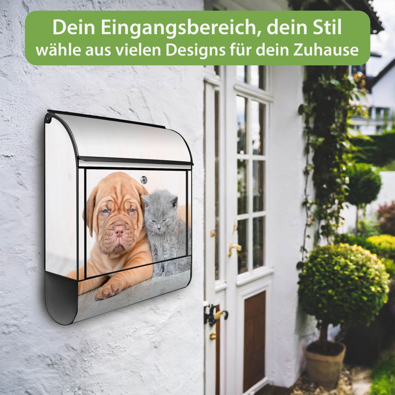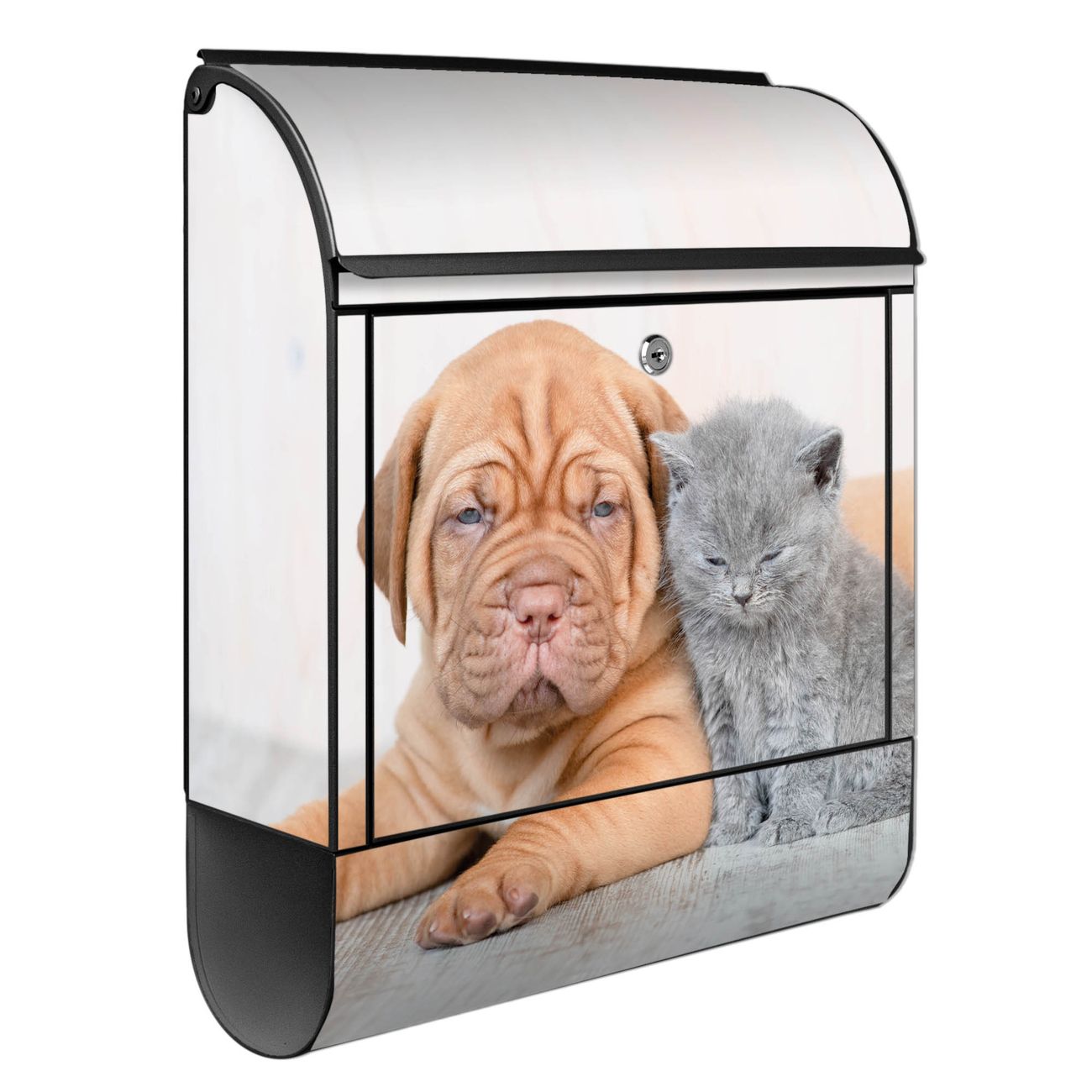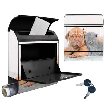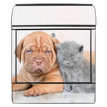 Großer Stahl Briefkasten Motiv Hund und Katze