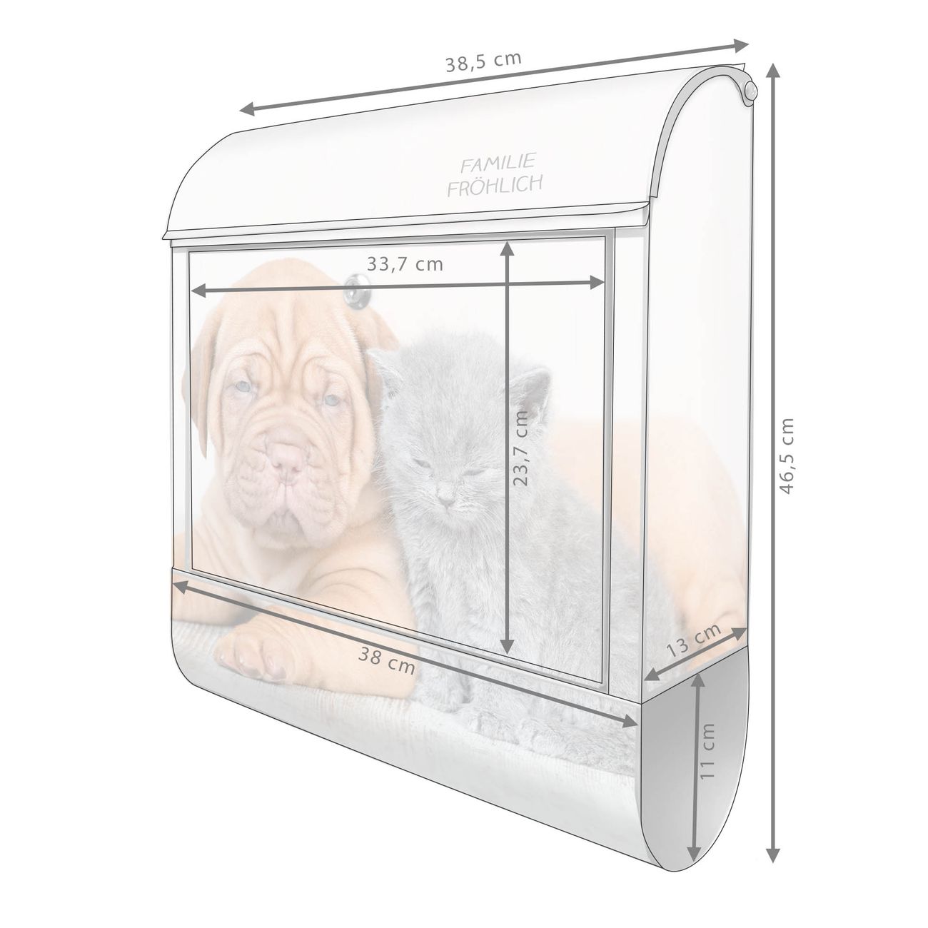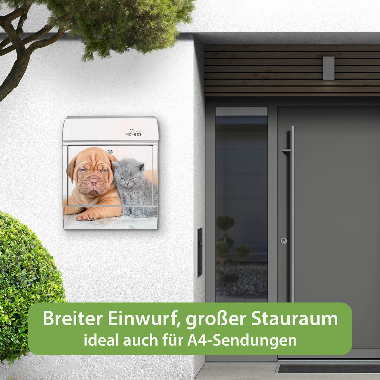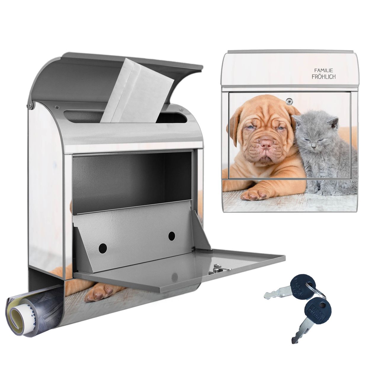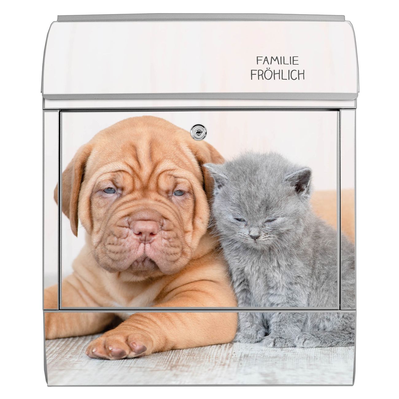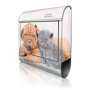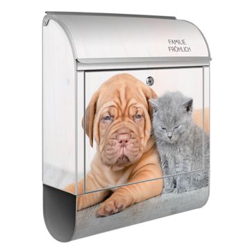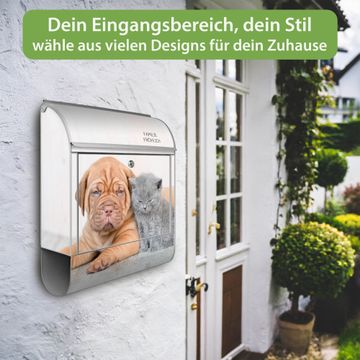 Großer Stahl Briefkasten Motiv Hund und Katze