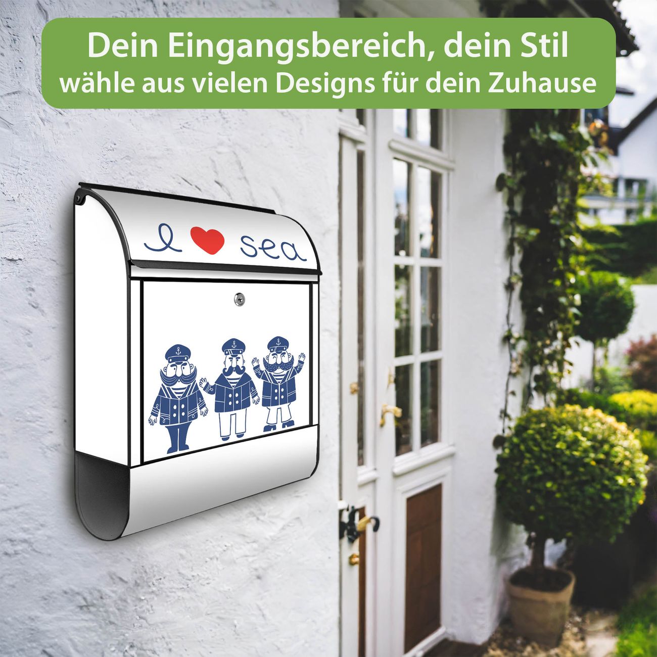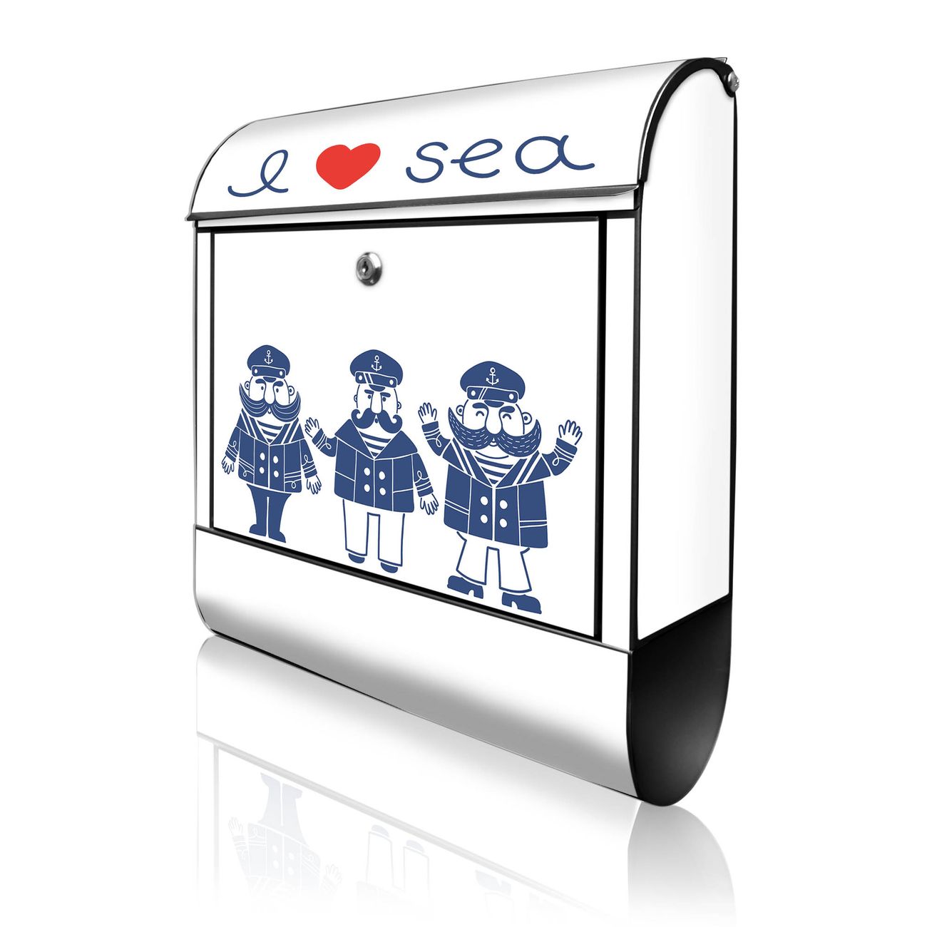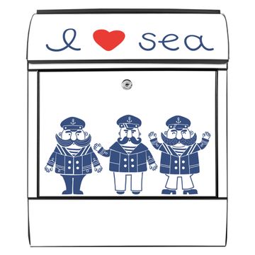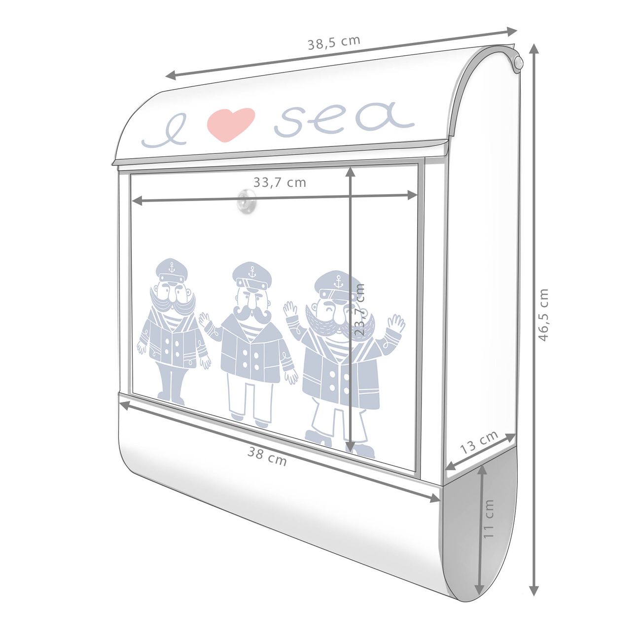 DESIGN: Der Postkasten mit Motiv Motiv I Love Sea hat ein sehr ansprechendes und ausgefallenes Design, damit entlocken Sie Ihren Nachbarn und dem Postboten ein Lächeln. Heben Sie Sich von der tristen grauen Masse ab, ohne auf Funktionalität zu verzichten. DETAILS: Der Postkasten besteht aus pulverbeschichtetem Stahl. Er ist 38x46x12,5cm groß. Das Motiv besteht aus einer wetter- und UV-resistenten Folie, die mit einem Schutzlaminat überzogen ist, sodass der Briefkasten zusätzlich vor Kratzern geschützt ist. Der Briefkasten wird mit Montagematerial, zusätzlich zwei Schlüssel sowie einer Bohrschablone geliefert. NUTZEN: Sie können diesen Briefkasten sowohl als Wandbriefkasten montieren oder einen passenden Ständer kaufen und als Standbriefkasten einbetonieren. Die Größe bietet genügend Platz für Sendungen aller Art, der Einwurf fasst auch größere A4 Sendungen. BANJADO: Ihr Briefkasten wird in Sachsen in einer kleinen Manufaktur von Hand veredelt. Die Motivfolie ist lösungsmittelfrei und schutzlaminiert für einen langen Halt. Wir legen großen Wert auf die Verbindung von Funktionalität und Design. Sie erhalten Handarbeit aus Sachsen.