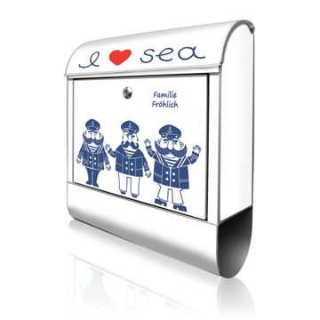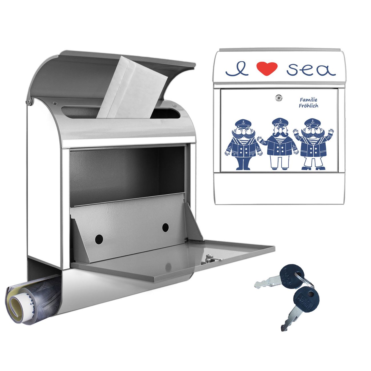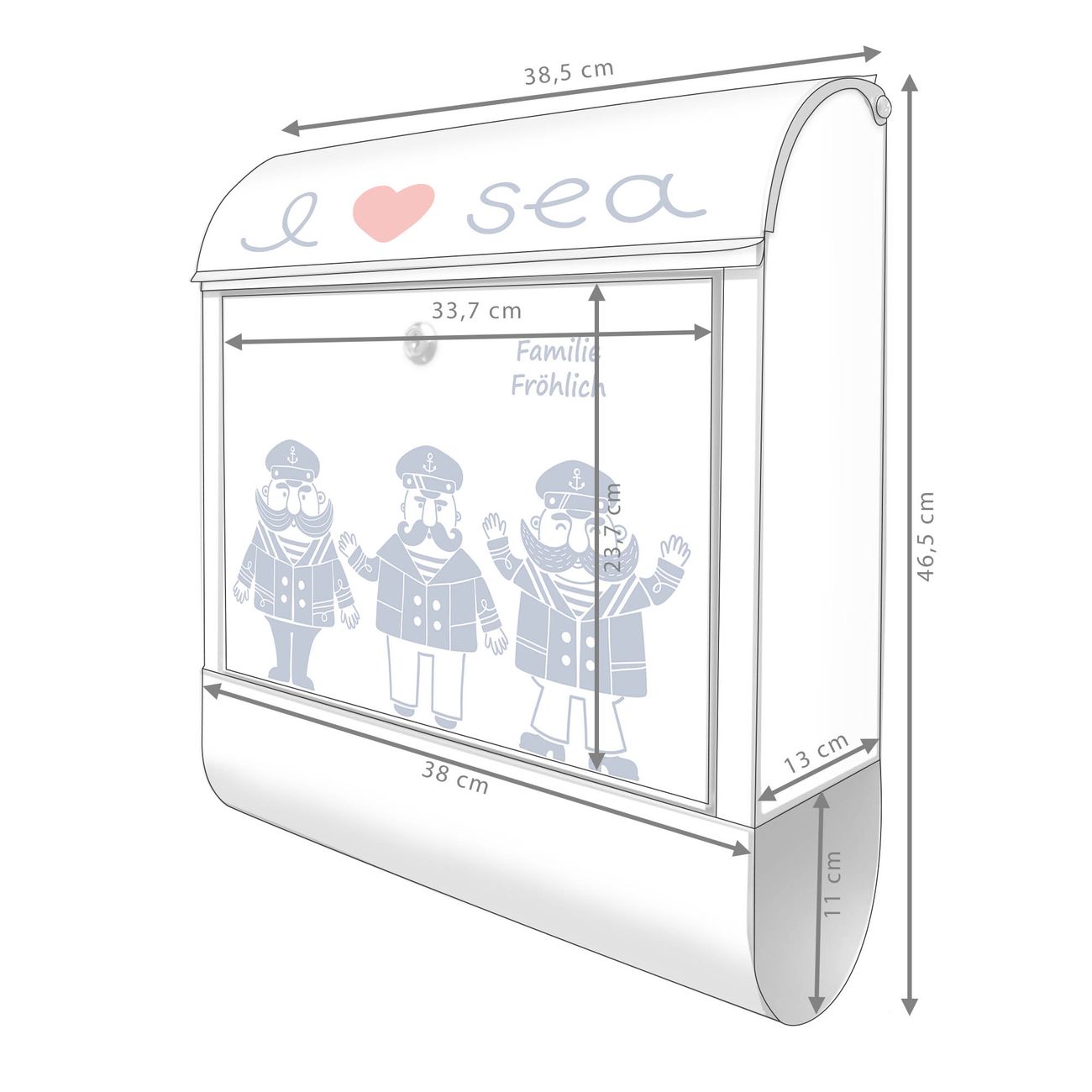 DESIGN: Der Postkasten mit Motiv Motiv I Love Sea hat ein sehr ansprechendes und ausgefallenes Design, damit entlocken Sie Ihren Nachbarn und dem Postboten ein Lächeln. Heben Sie Sich von der tristen grauen Masse ab, ohne auf Funktionalität zu verzichten. DETAILS: Der Postkasten besteht aus pulverbeschichtetem Stahl. Er ist 38x46x12,5cm groß. Das Motiv besteht aus einer wetter- und UV-resistenten Folie, die mit einem Schutzlaminat überzogen ist, sodass der Briefkasten zusätzlich vor Kratzern geschützt ist. Der Briefkasten wird mit Montagematerial, zusätzlich zwei Schlüssel sowie einer Bohrschablone geliefert. NUTZEN: Sie können diesen Briefkasten sowohl als Wandbriefkasten montieren oder einen passenden Ständer kaufen und als Standbriefkasten einbetonieren. Die Größe bietet genügend Platz für Sendungen aller Art, der Einwurf fasst auch größere A4 Sendungen. BANJADO: Ihr Briefkasten wird in Sachsen in einer kleinen Manufaktur von Hand veredelt. Die Motivfolie ist lösungsmittelfrei und schutzlaminiert für einen langen Halt. Wir legen großen Wert auf die Verbindung von Funktionalität und Design. Sie erhalten Handarbeit aus Sachsen.