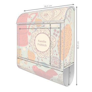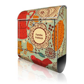 DESIGN: Der Postkasten mit Motiv Motiv Indischer Kaffee hat ein sehr ansprechendes und ausgefallenes Design, damit entlocken Sie Ihren Nachbarn und dem Postboten ein Lächeln. Heben Sie Sich von der tristen grauen Masse ab, ohne auf Funktionalität zu verzichten. DETAILS: Der Postkasten besteht aus pulverbeschichtetem Stahl. Er ist 38x46x12,5cm groß. Das Motiv besteht aus einer wetter- und UV-resistenten Folie, die mit einem Schutzlaminat überzogen ist, sodass der Briefkasten zusätzlich vor Kratzern geschützt ist. Der Briefkasten wird mit Montagematerial, zusätzlich zwei Schlüssel sowie einer Bohrschablone geliefert. NUTZEN: Sie können diesen Briefkasten sowohl als Wandbriefkasten montieren oder einen passenden Ständer kaufen und als Standbriefkasten einbetonieren. Die Größe bietet genügend Platz für Sendungen aller Art, der Einwurf fasst auch größere A4 Sendungen. BANJADO: Ihr Briefkasten wird in Sachsen in einer kleinen Manufaktur von Hand veredelt. Die Motivfolie ist lösungsmittelfrei und schutzlaminiert für einen langen Halt. Wir legen großen Wert auf die Verbindung von Funktionalität und Design. Sie erhalten Handarbeit aus Sachsen.