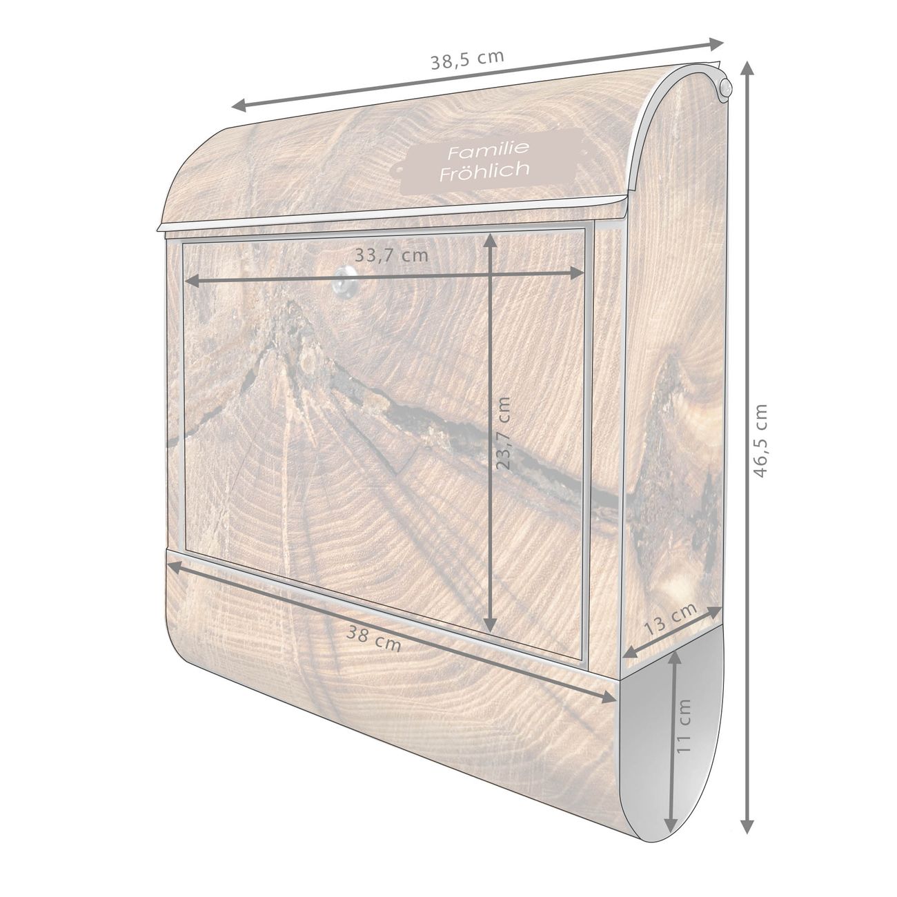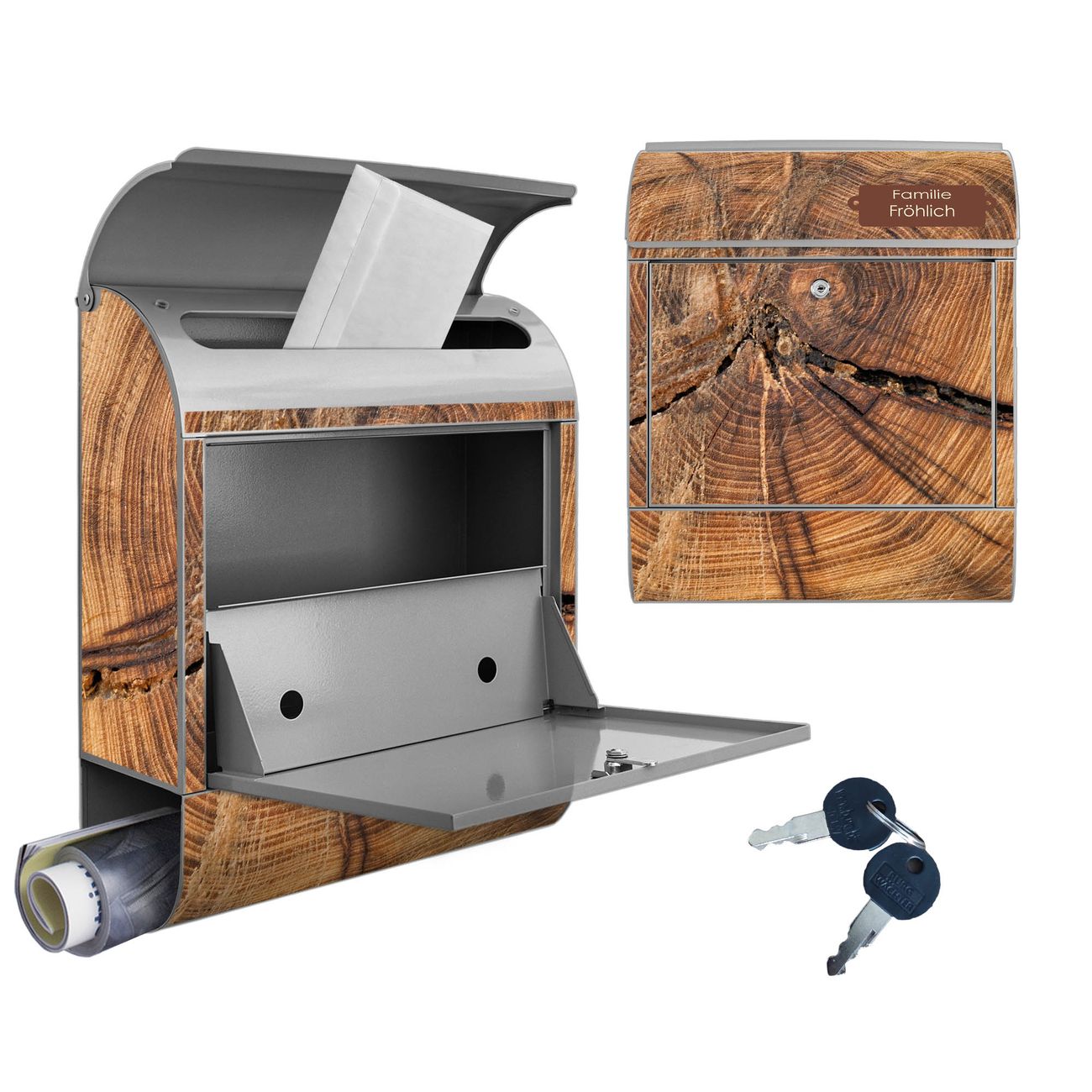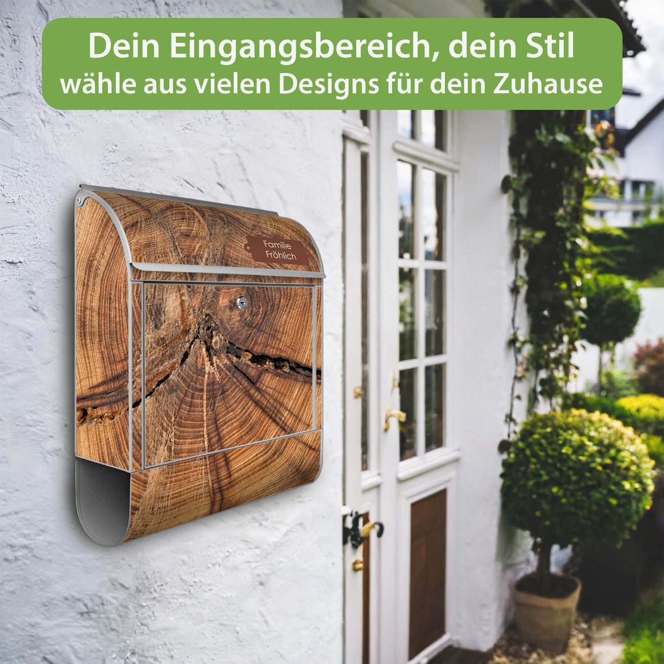 Großer Stahl Briefkasten Motiv Jahresringe