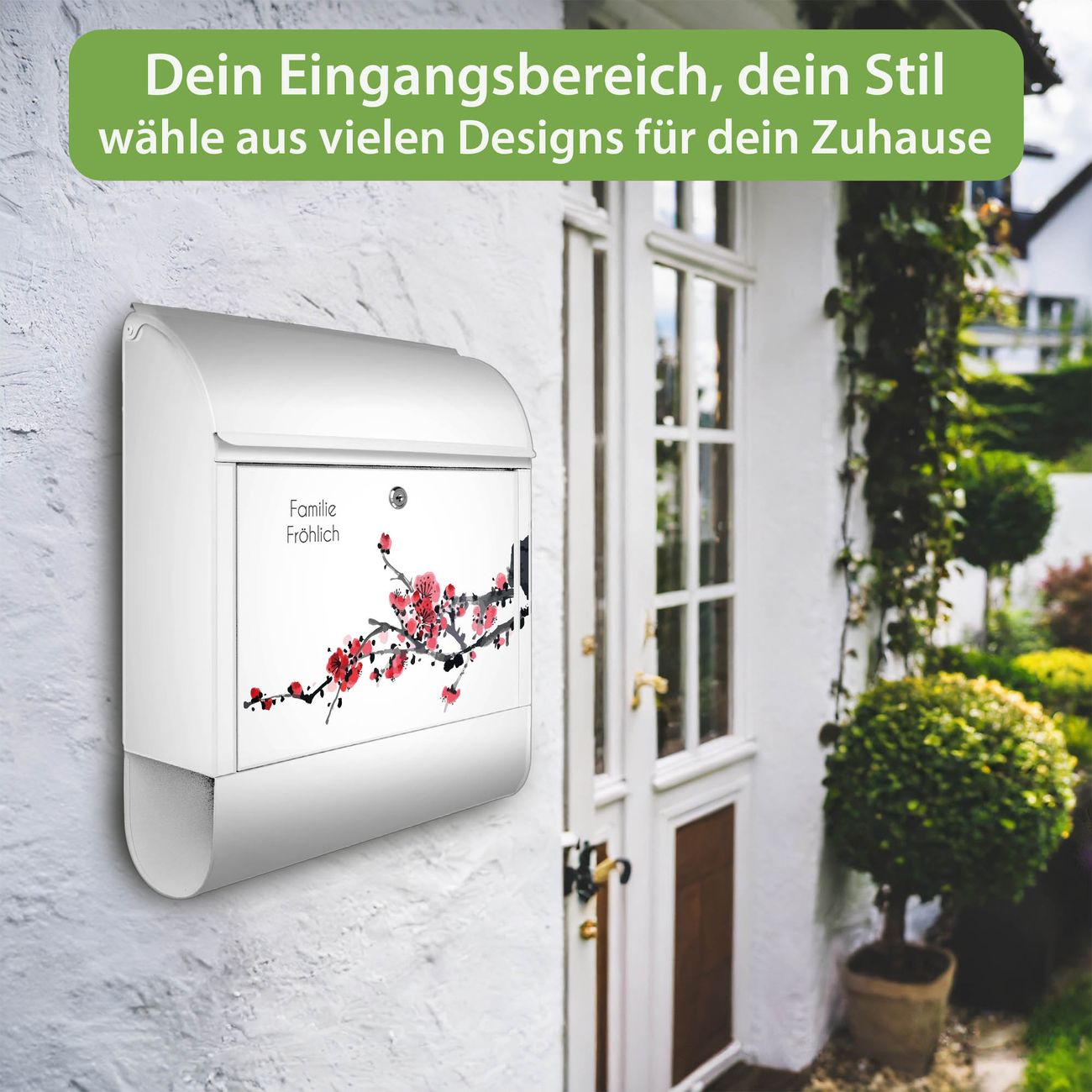 Großer Stahl Briefkasten Motiv Japanische Blüten 2