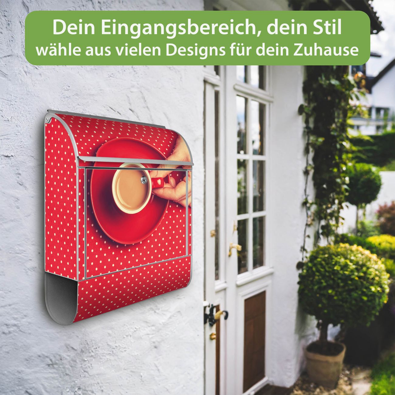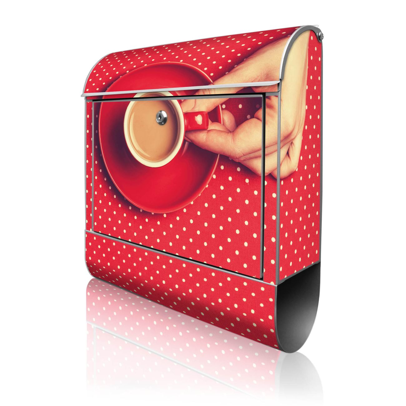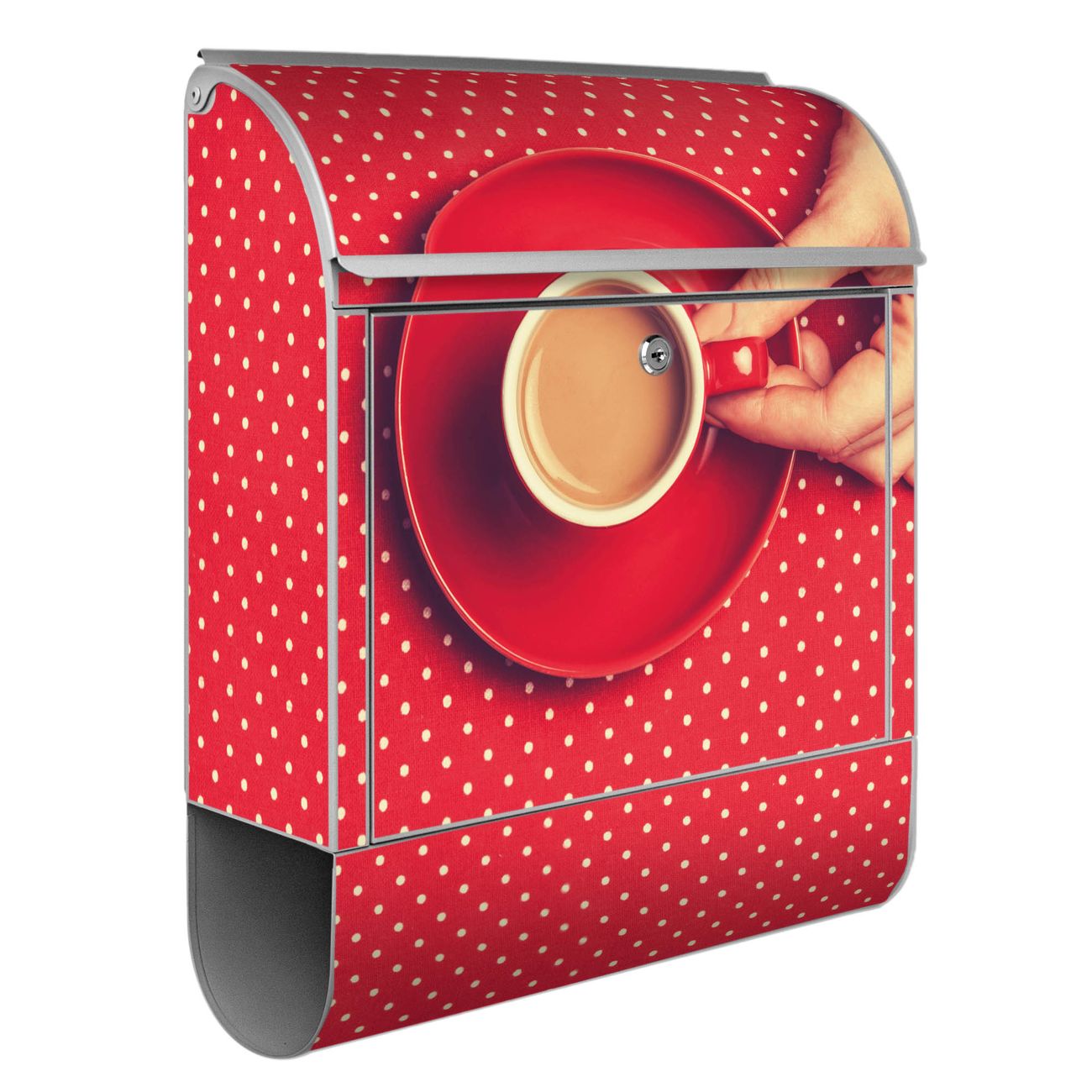 Großer Stahl Briefkasten Motiv Kaffee Rot Weiss