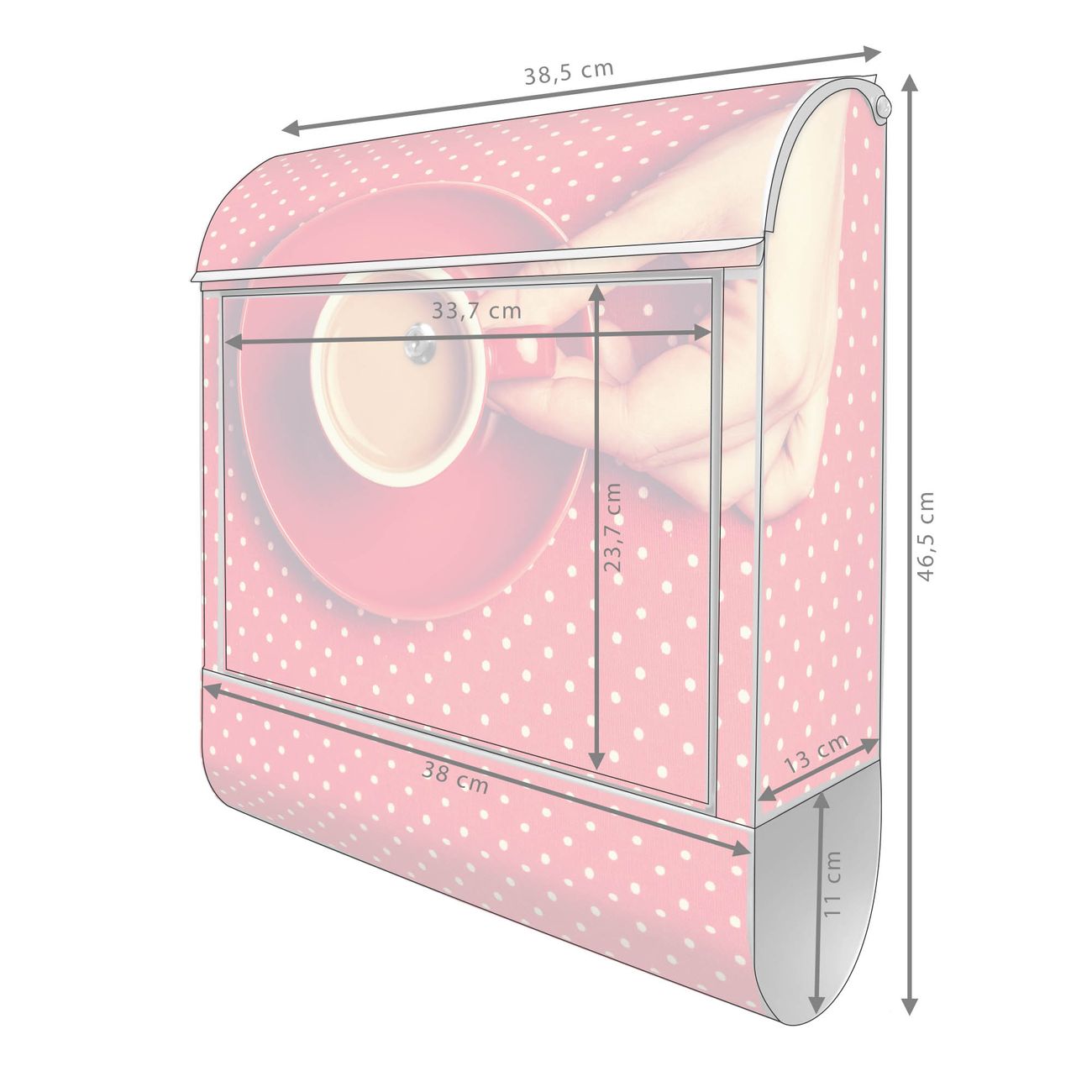 DESIGN: Der Postkasten mit Motiv Motiv Kaffee Rot Weiss hat ein sehr ansprechendes und ausgefallenes Design, damit entlocken Sie Ihren Nachbarn und dem Postboten ein Lächeln. Heben Sie Sich von der tristen grauen Masse ab, ohne auf Funktionalität zu verzichten. DETAILS: Der Postkasten besteht aus pulverbeschichtetem Stahl. Er ist 38x46x12,5cm groß. Das Motiv besteht aus einer wetter- und UV-resistenten Folie, die mit einem Schutzlaminat überzogen ist, sodass der Briefkasten zusätzlich vor Kratzern geschützt ist. Der Briefkasten wird mit Montagematerial, zusätzlich zwei Schlüssel sowie einer Bohrschablone geliefert. NUTZEN: Sie können diesen Briefkasten sowohl als Wandbriefkasten montieren oder einen passenden Ständer kaufen und als Standbriefkasten einbetonieren. Die Größe bietet genügend Platz für Sendungen aller Art, der Einwurf fasst auch größere A4 Sendungen. BANJADO: Ihr Briefkasten wird in Sachsen in einer kleinen Manufaktur von Hand veredelt. Die Motivfolie ist lösungsmittelfrei und schutzlaminiert für einen langen Halt. Wir legen großen Wert auf die Verbindung von Funktionalität und Design. Sie erhalten Handarbeit aus Sachsen.