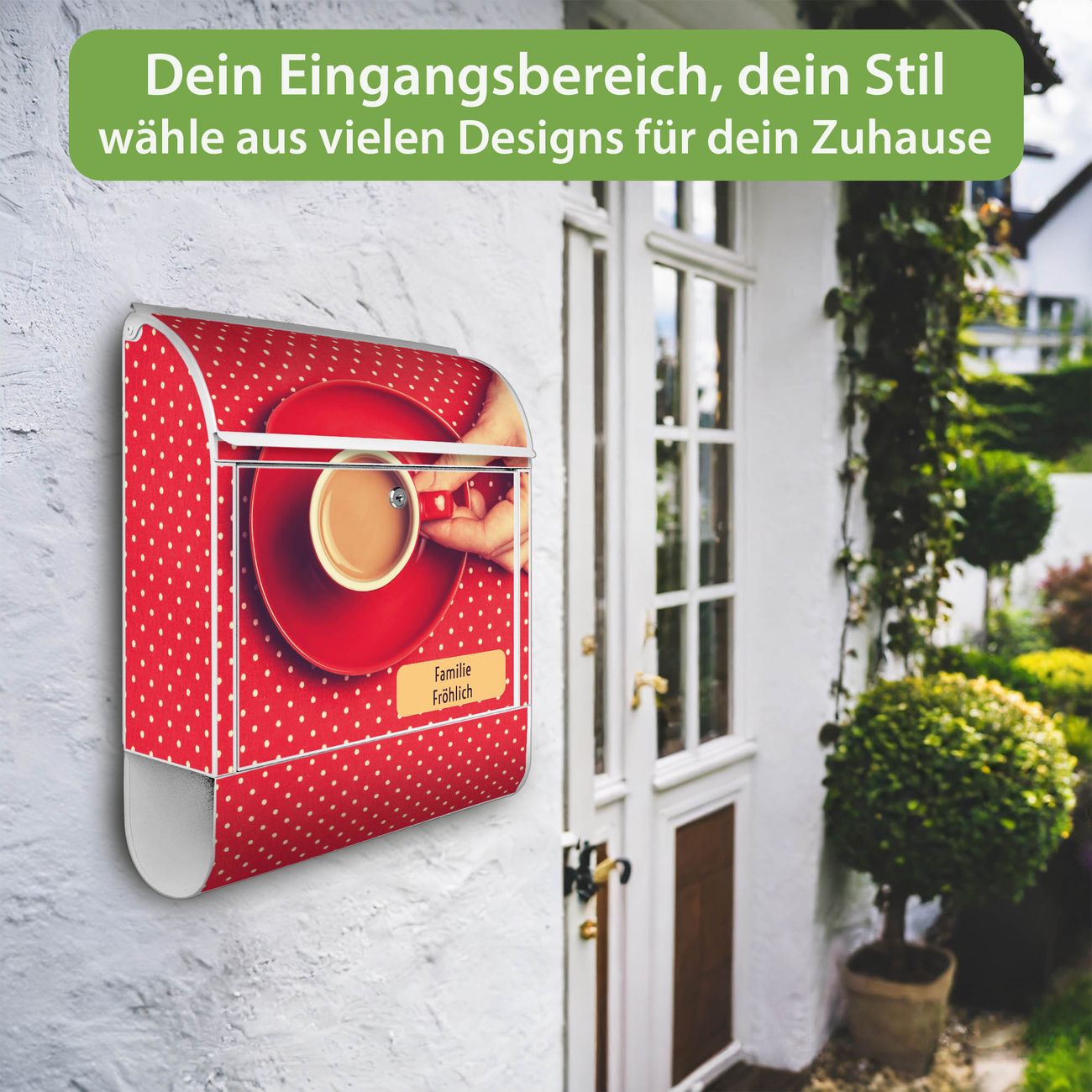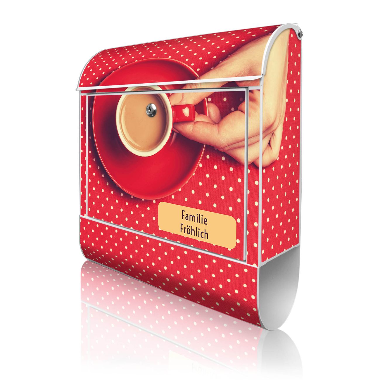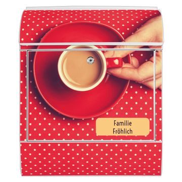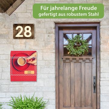 Großer Stahl Briefkasten Motiv Kaffee Rot Weiss