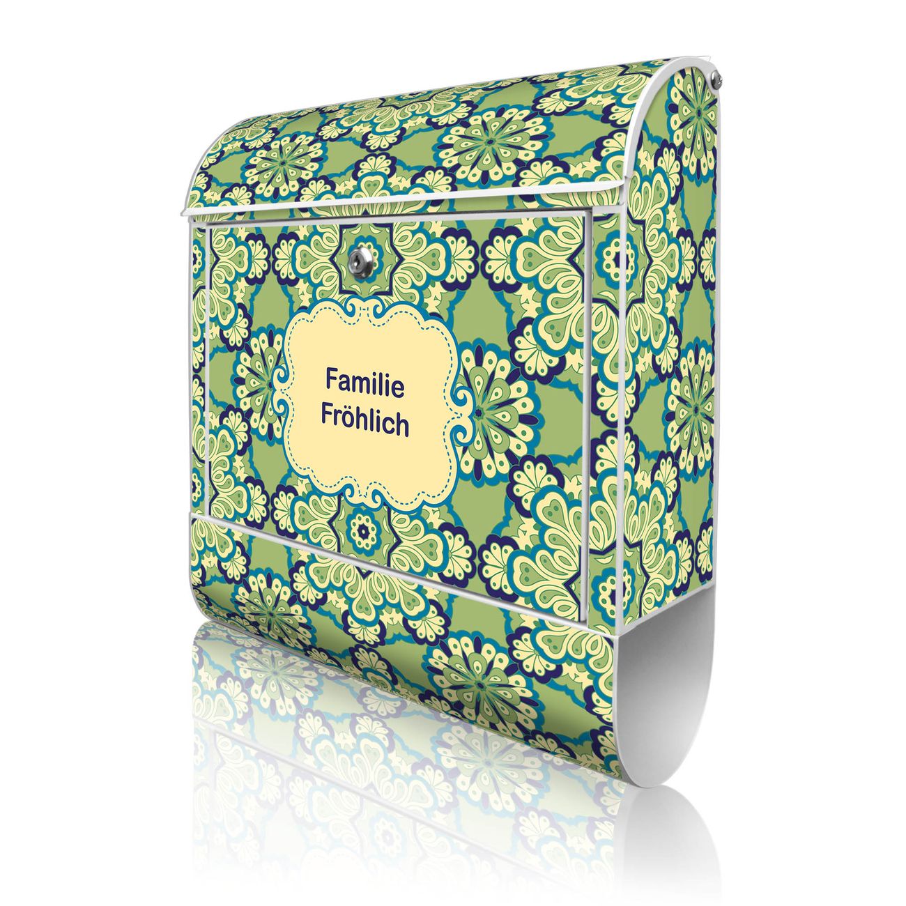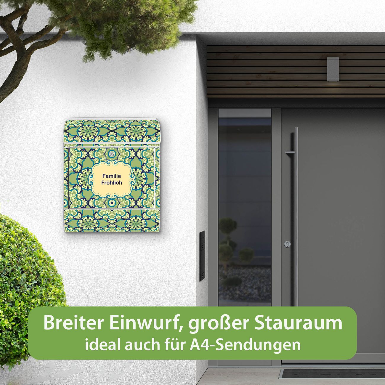 Großer Stahl Briefkasten Motiv Kaleidoscop Grün