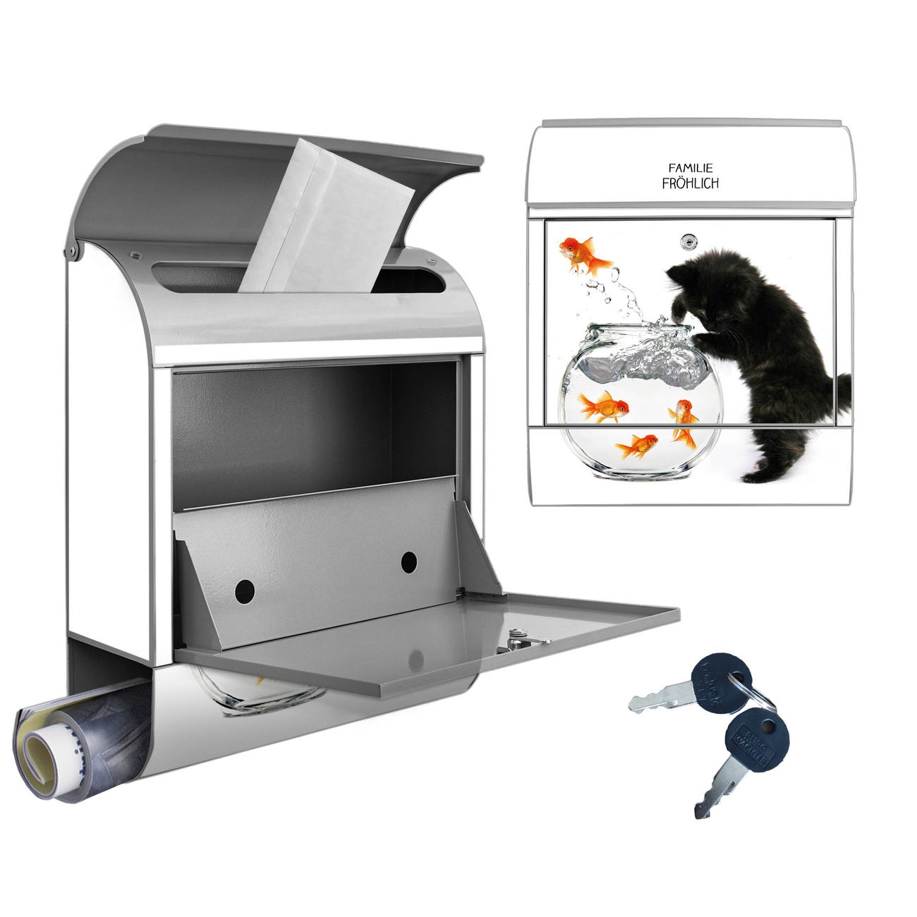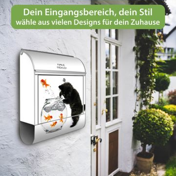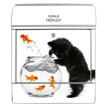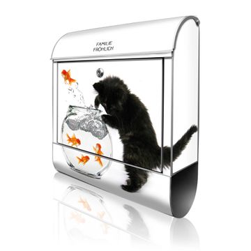 Großer Stahl Briefkasten Motiv Katze Und Fisch