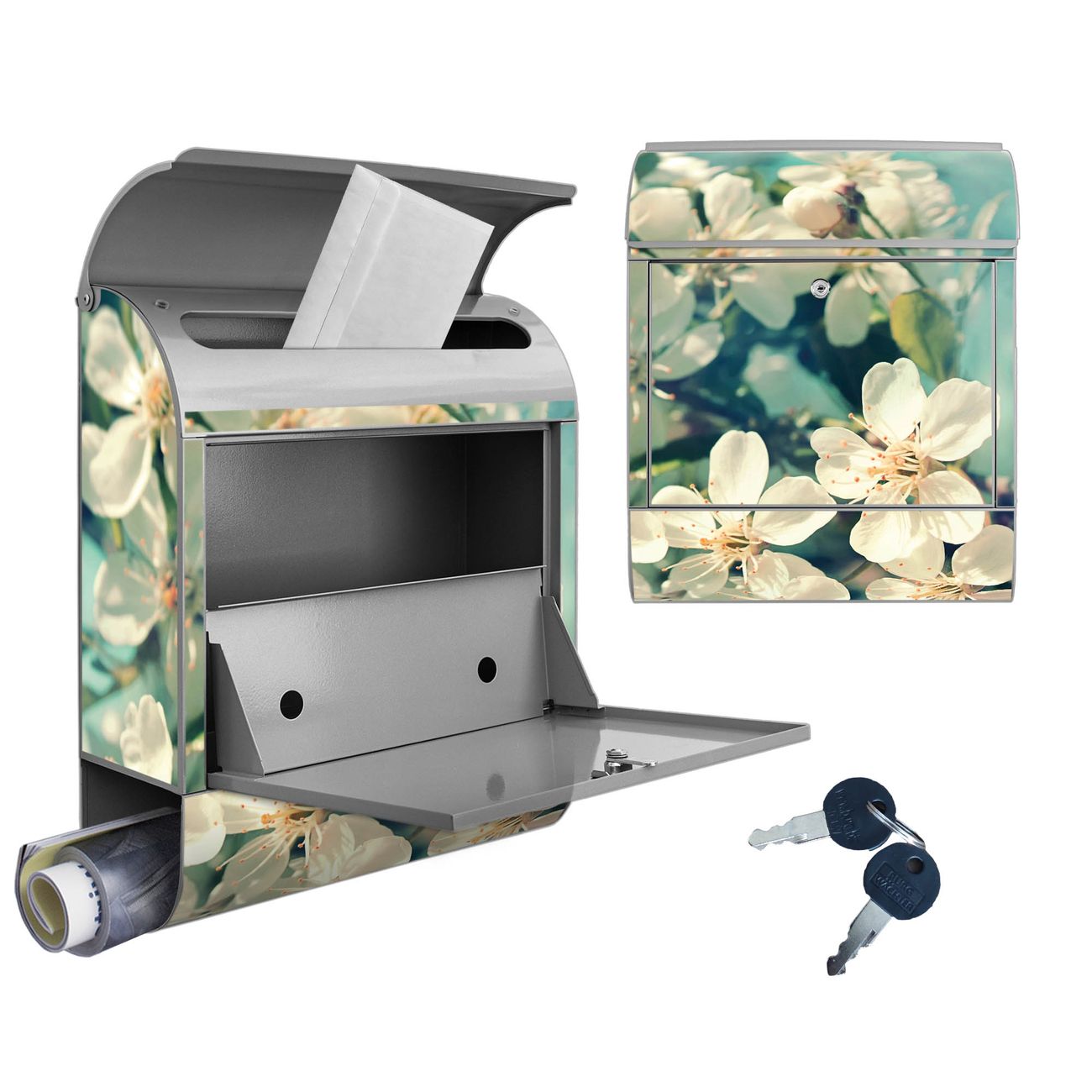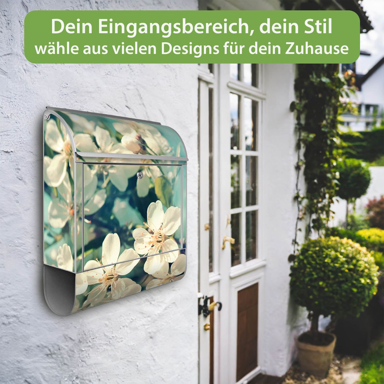 Großer Stahl Briefkasten Motiv Kirschblüten 2