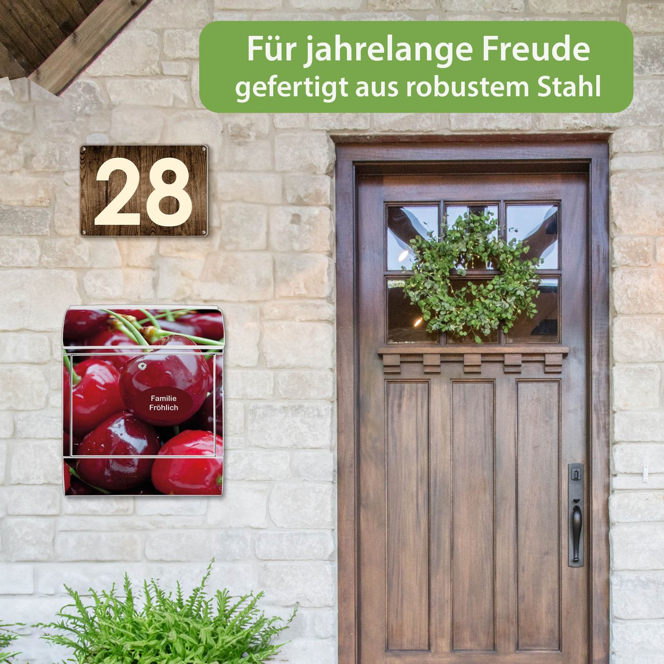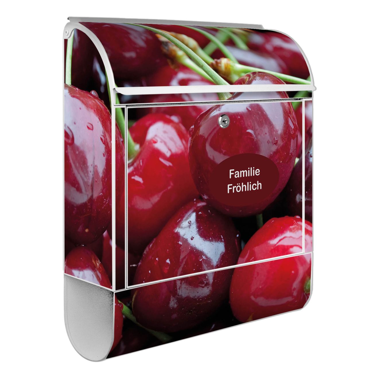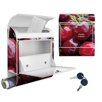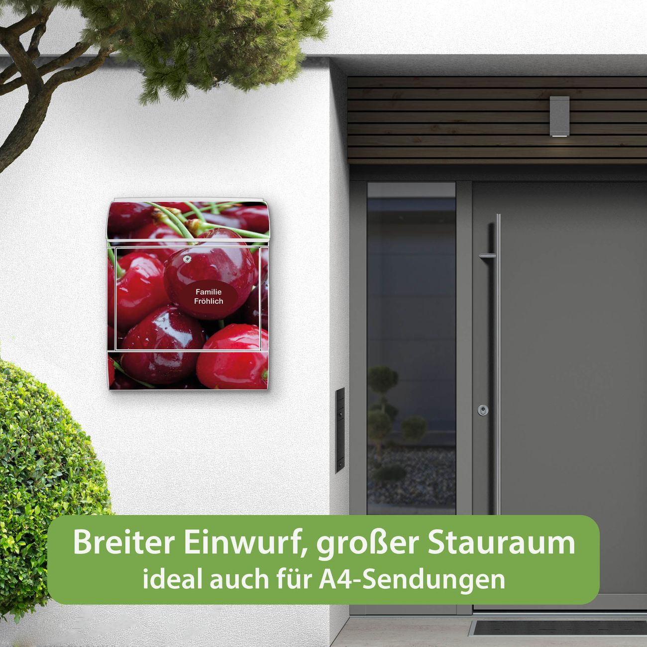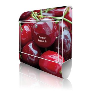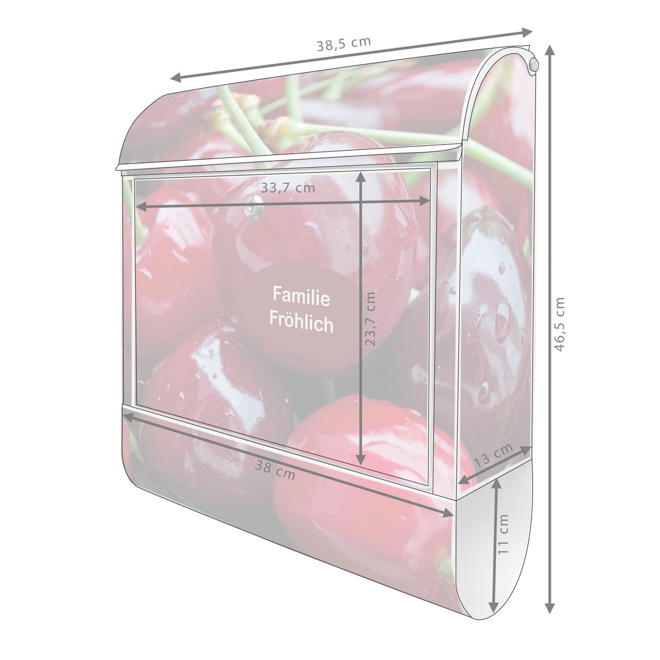 DESIGN: Der Postkasten mit Motiv Motiv Kirschen hat ein sehr ansprechendes und ausgefallenes Design, damit entlocken Sie Ihren Nachbarn und dem Postboten ein Lächeln. Heben Sie Sich von der tristen grauen Masse ab, ohne auf Funktionalität zu verzichten. DETAILS: Der Postkasten besteht aus pulverbeschichtetem Stahl. Er ist 38x46x12,5cm groß. Das Motiv besteht aus einer wetter- und UV-resistenten Folie, die mit einem Schutzlaminat überzogen ist, sodass der Briefkasten zusätzlich vor Kratzern geschützt ist. Der Briefkasten wird mit Montagematerial, zusätzlich zwei Schlüssel sowie einer Bohrschablone geliefert. NUTZEN: Sie können diesen Briefkasten sowohl als Wandbriefkasten montieren oder einen passenden Ständer kaufen und als Standbriefkasten einbetonieren. Die Größe bietet genügend Platz für Sendungen aller Art, der Einwurf fasst auch größere A4 Sendungen. BANJADO: Ihr Briefkasten wird in Sachsen in einer kleinen Manufaktur von Hand veredelt. Die Motivfolie ist lösungsmittelfrei und schutzlaminiert für einen langen Halt. Wir legen großen Wert auf die Verbindung von Funktionalität und Design. Sie erhalten Handarbeit aus Sachsen.