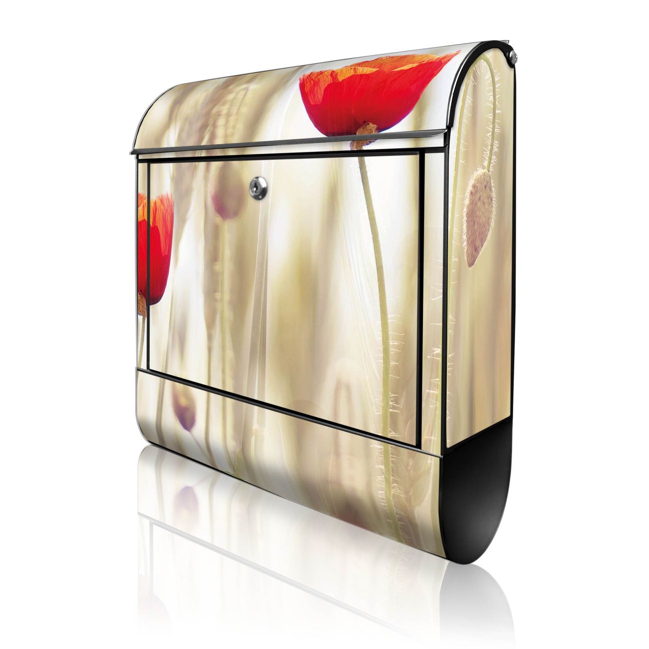 Großer Stahl Briefkasten Motiv Klatschmohn