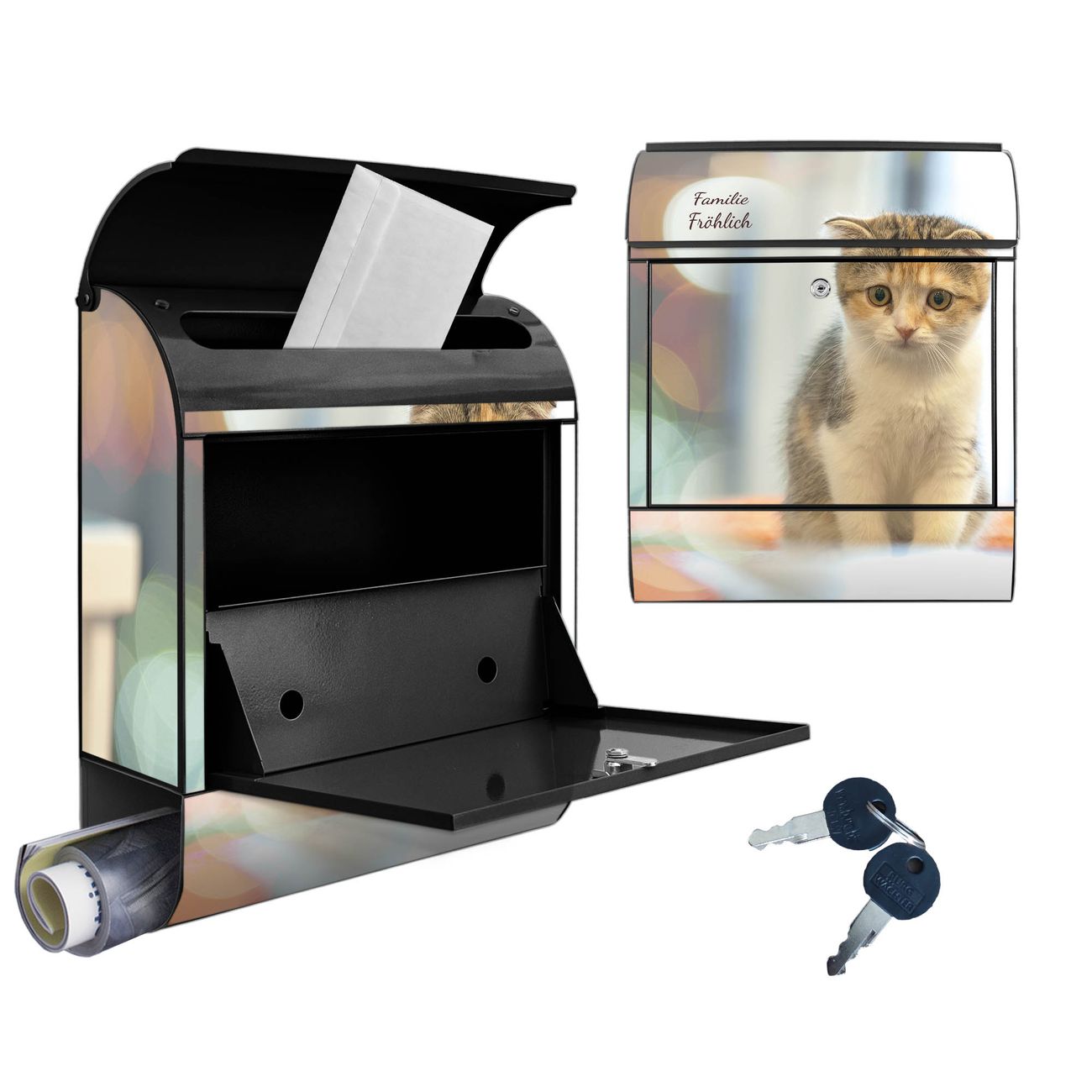 Großer Stahl Briefkasten Motiv Kleine Katze