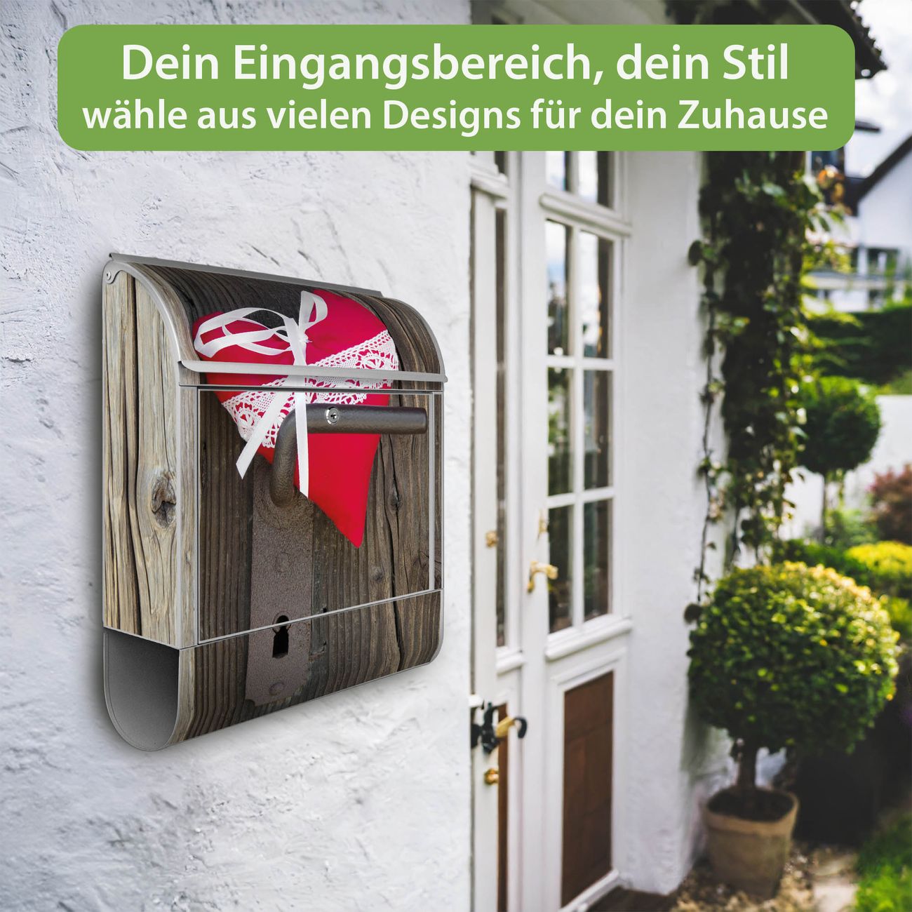 DESIGN: Der Postkasten mit Motiv Motiv Knock On Your Door hat ein sehr ansprechendes und ausgefallenes Design, damit entlocken Sie Ihren Nachbarn und dem Postboten ein Lächeln. Heben Sie Sich von der tristen grauen Masse ab, ohne auf Funktionalität zu verzichten. DETAILS: Der Postkasten besteht aus pulverbeschichtetem Stahl. Er ist 38x46x12,5cm groß. Das Motiv besteht aus einer wetter- und UV-resistenten Folie, die mit einem Schutzlaminat überzogen ist, sodass der Briefkasten zusätzlich vor Kratzern geschützt ist. Der Briefkasten wird mit Montagematerial, zusätzlich zwei Schlüssel sowie einer Bohrschablone geliefert. NUTZEN: Sie können diesen Briefkasten sowohl als Wandbriefkasten montieren oder einen passenden Ständer kaufen und als Standbriefkasten einbetonieren. Die Größe bietet genügend Platz für Sendungen aller Art, der Einwurf fasst auch größere A4 Sendungen. BANJADO: Ihr Briefkasten wird in Sachsen in einer kleinen Manufaktur von Hand veredelt. Die Motivfolie ist lösungsmittelfrei und schutzlaminiert für einen langen Halt. Wir legen großen Wert auf die Verbindung von Funktionalität und Design. Sie erhalten Handarbeit aus Sachsen.