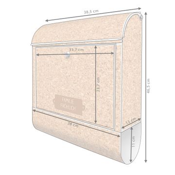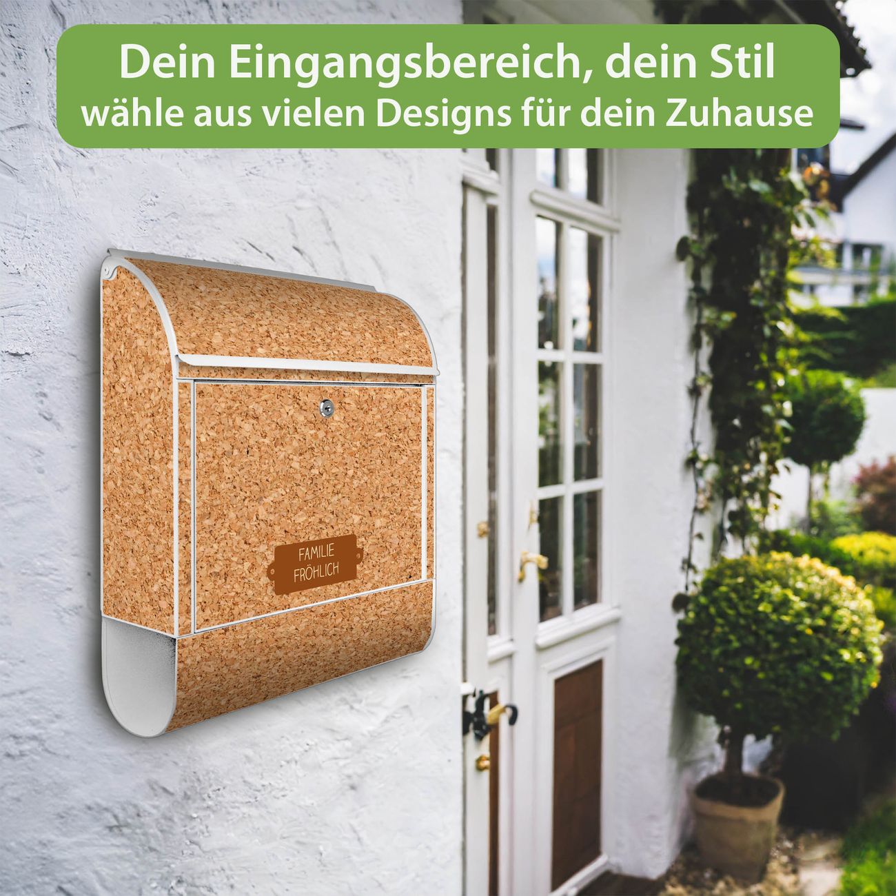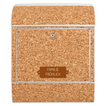 DESIGN: Der Postkasten mit Motiv Motiv Kork hat ein sehr ansprechendes und ausgefallenes Design, damit entlocken Sie Ihren Nachbarn und dem Postboten ein Lächeln. Heben Sie Sich von der tristen grauen Masse ab, ohne auf Funktionalität zu verzichten. DETAILS: Der Postkasten besteht aus pulverbeschichtetem Stahl. Er ist 38x46x12,5cm groß. Das Motiv besteht aus einer wetter- und UV-resistenten Folie, die mit einem Schutzlaminat überzogen ist, sodass der Briefkasten zusätzlich vor Kratzern geschützt ist. Der Briefkasten wird mit Montagematerial, zusätzlich zwei Schlüssel sowie einer Bohrschablone geliefert. NUTZEN: Sie können diesen Briefkasten sowohl als Wandbriefkasten montieren oder einen passenden Ständer kaufen und als Standbriefkasten einbetonieren. Die Größe bietet genügend Platz für Sendungen aller Art, der Einwurf fasst auch größere A4 Sendungen. BANJADO: Ihr Briefkasten wird in Sachsen in einer kleinen Manufaktur von Hand veredelt. Die Motivfolie ist lösungsmittelfrei und schutzlaminiert für einen langen Halt. Wir legen großen Wert auf die Verbindung von Funktionalität und Design. Sie erhalten Handarbeit aus Sachsen.