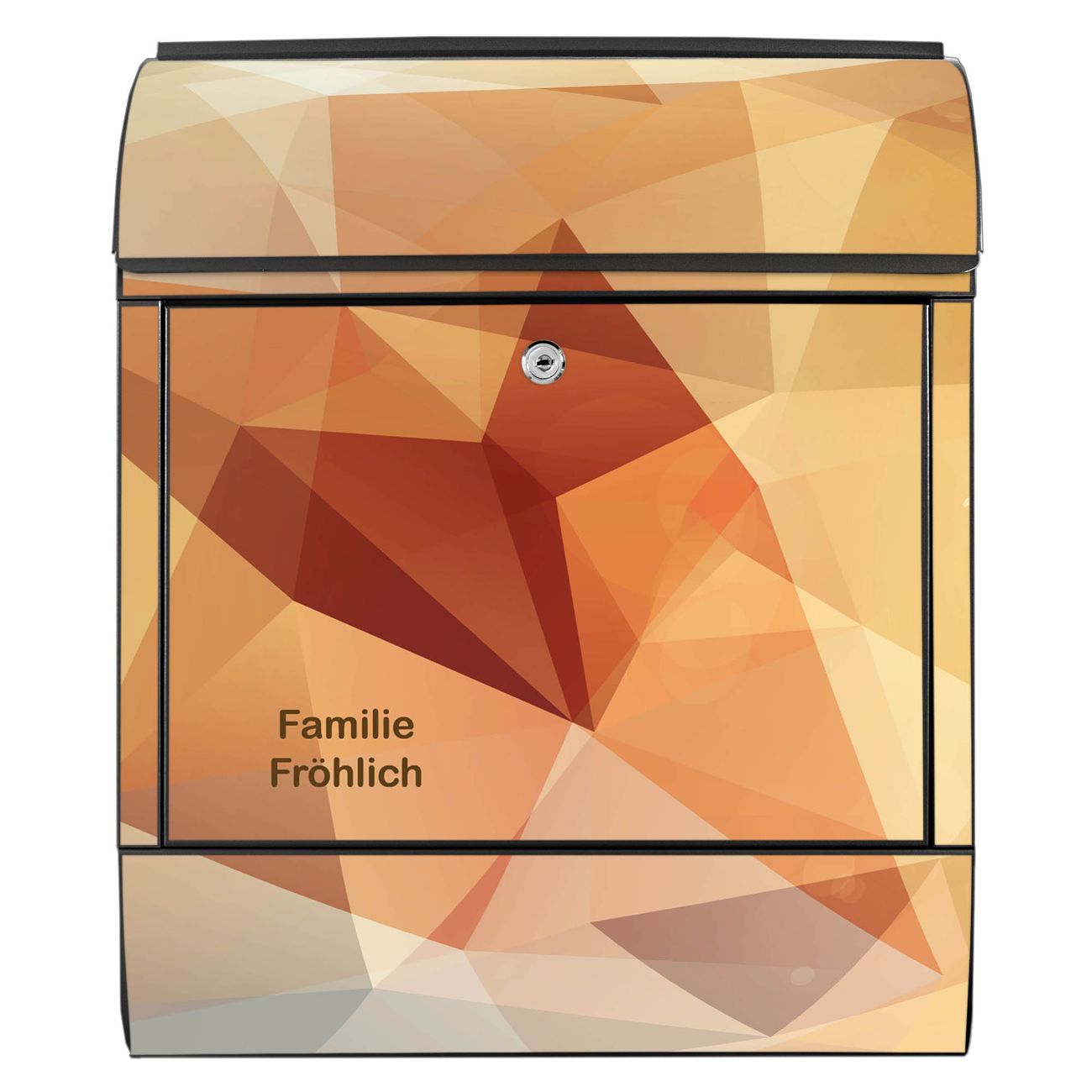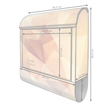 DESIGN: Der Postkasten mit Motiv Motiv Kristall hat ein sehr ansprechendes und ausgefallenes Design, damit entlocken Sie Ihren Nachbarn und dem Postboten ein Lächeln. Heben Sie Sich von der tristen grauen Masse ab, ohne auf Funktionalität zu verzichten. DETAILS: Der Postkasten besteht aus pulverbeschichtetem Stahl. Er ist 38x46x12,5cm groß. Das Motiv besteht aus einer wetter- und UV-resistenten Folie, die mit einem Schutzlaminat überzogen ist, sodass der Briefkasten zusätzlich vor Kratzern geschützt ist. Der Briefkasten wird mit Montagematerial, zusätzlich zwei Schlüssel sowie einer Bohrschablone geliefert. NUTZEN: Sie können diesen Briefkasten sowohl als Wandbriefkasten montieren oder einen passenden Ständer kaufen und als Standbriefkasten einbetonieren. Die Größe bietet genügend Platz für Sendungen aller Art, der Einwurf fasst auch größere A4 Sendungen. BANJADO: Ihr Briefkasten wird in Sachsen in einer kleinen Manufaktur von Hand veredelt. Die Motivfolie ist lösungsmittelfrei und schutzlaminiert für einen langen Halt. Wir legen großen Wert auf die Verbindung von Funktionalität und Design. Sie erhalten Handarbeit aus Sachsen.