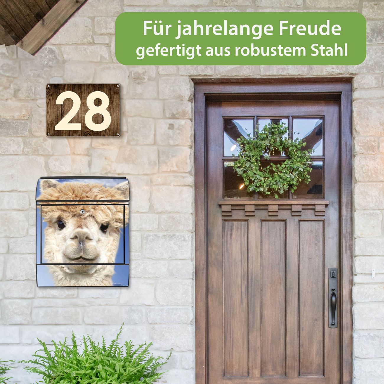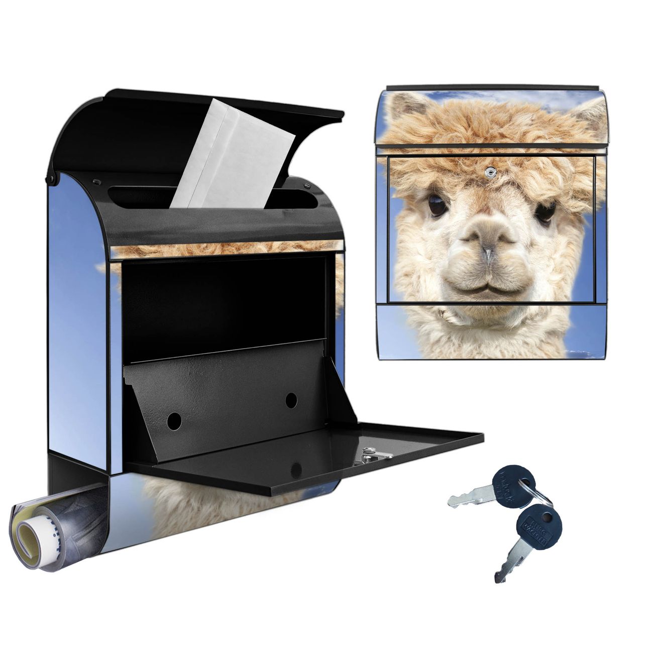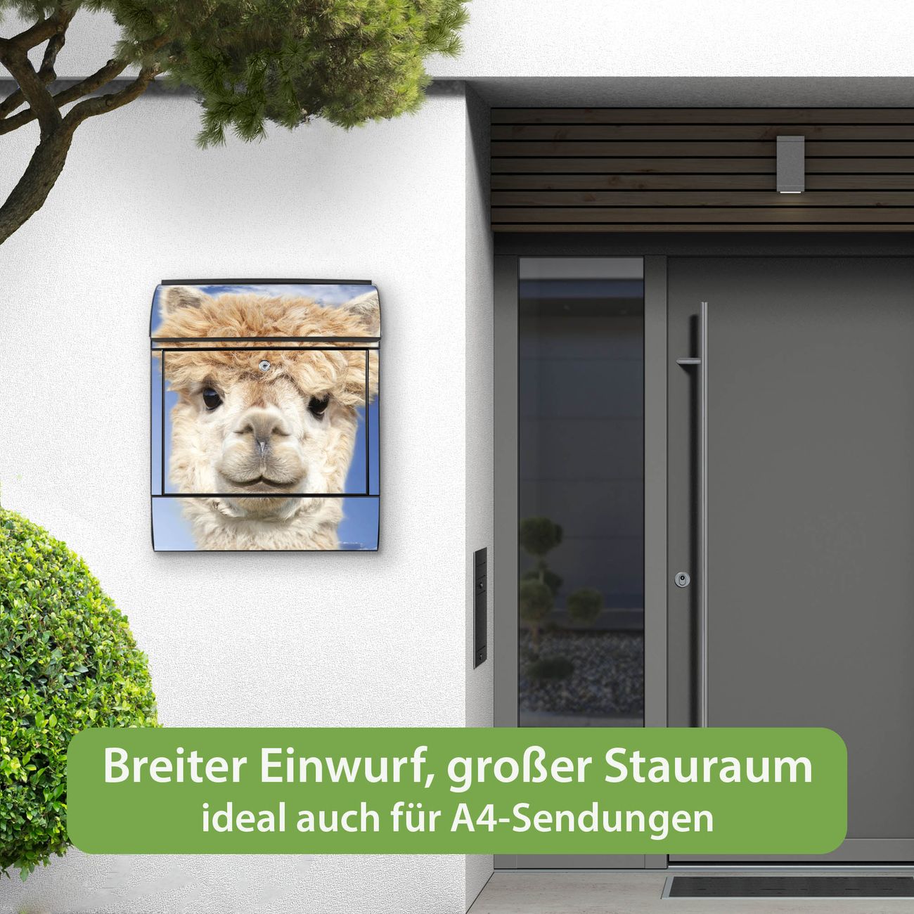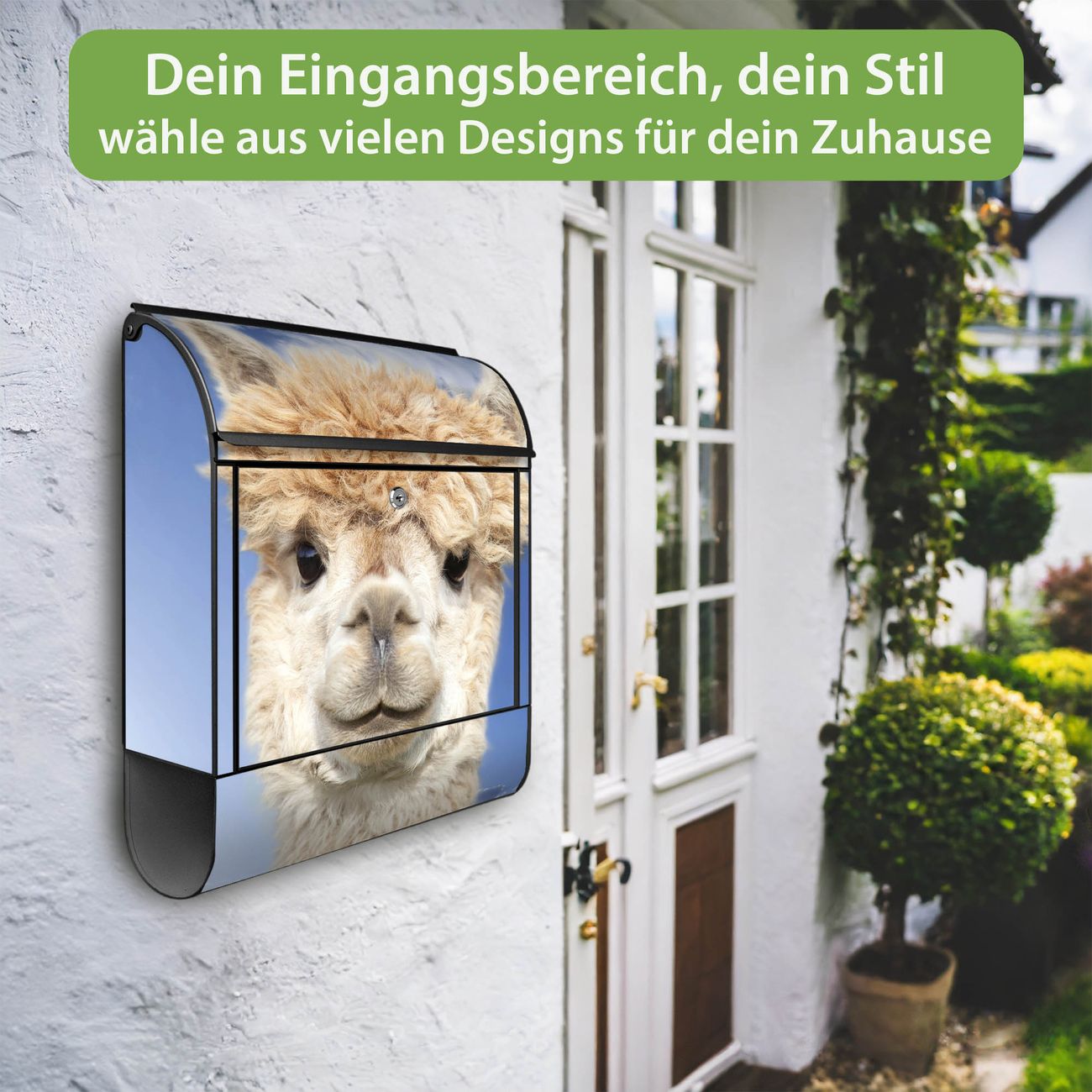 Großer Stahl Briefkasten Motiv Lama
