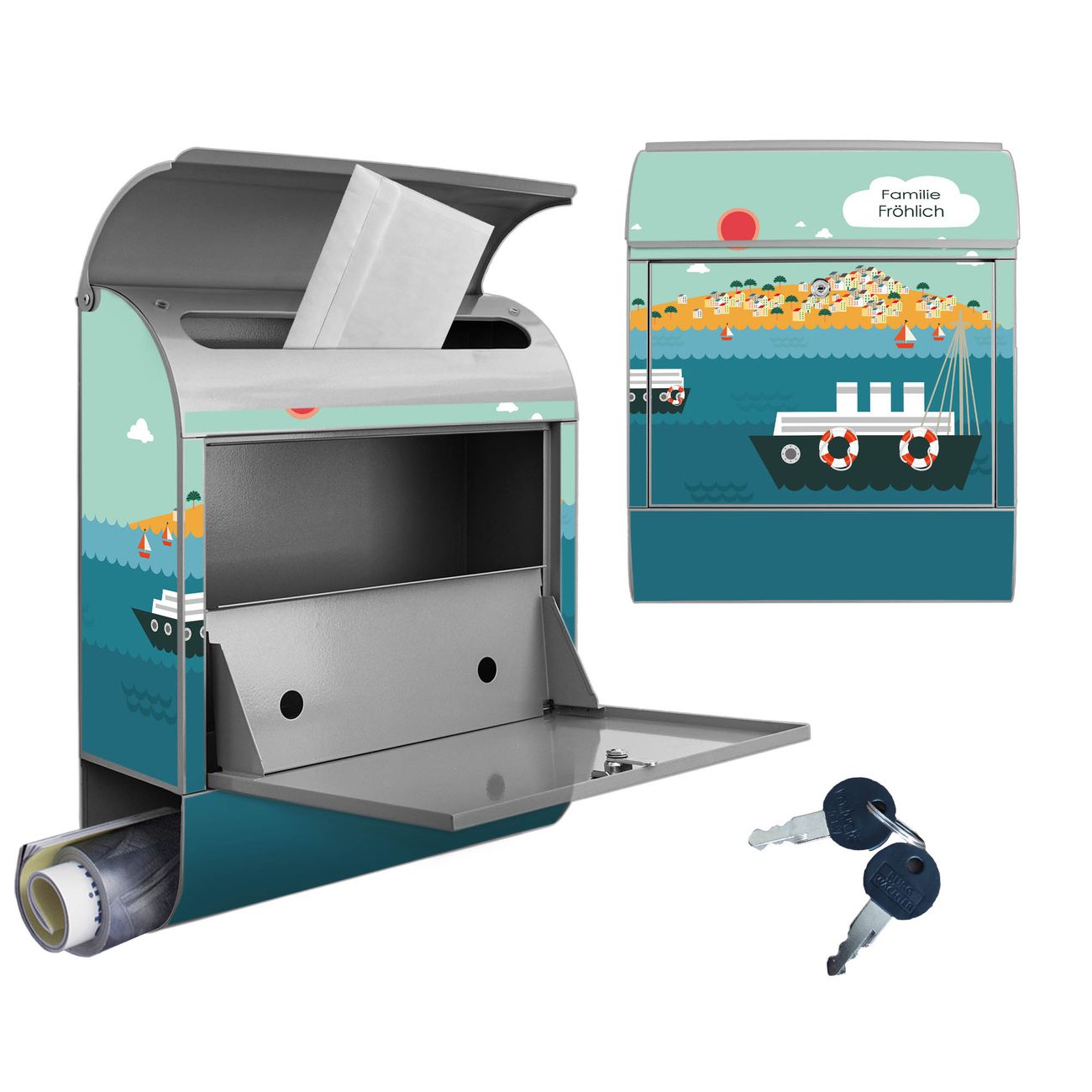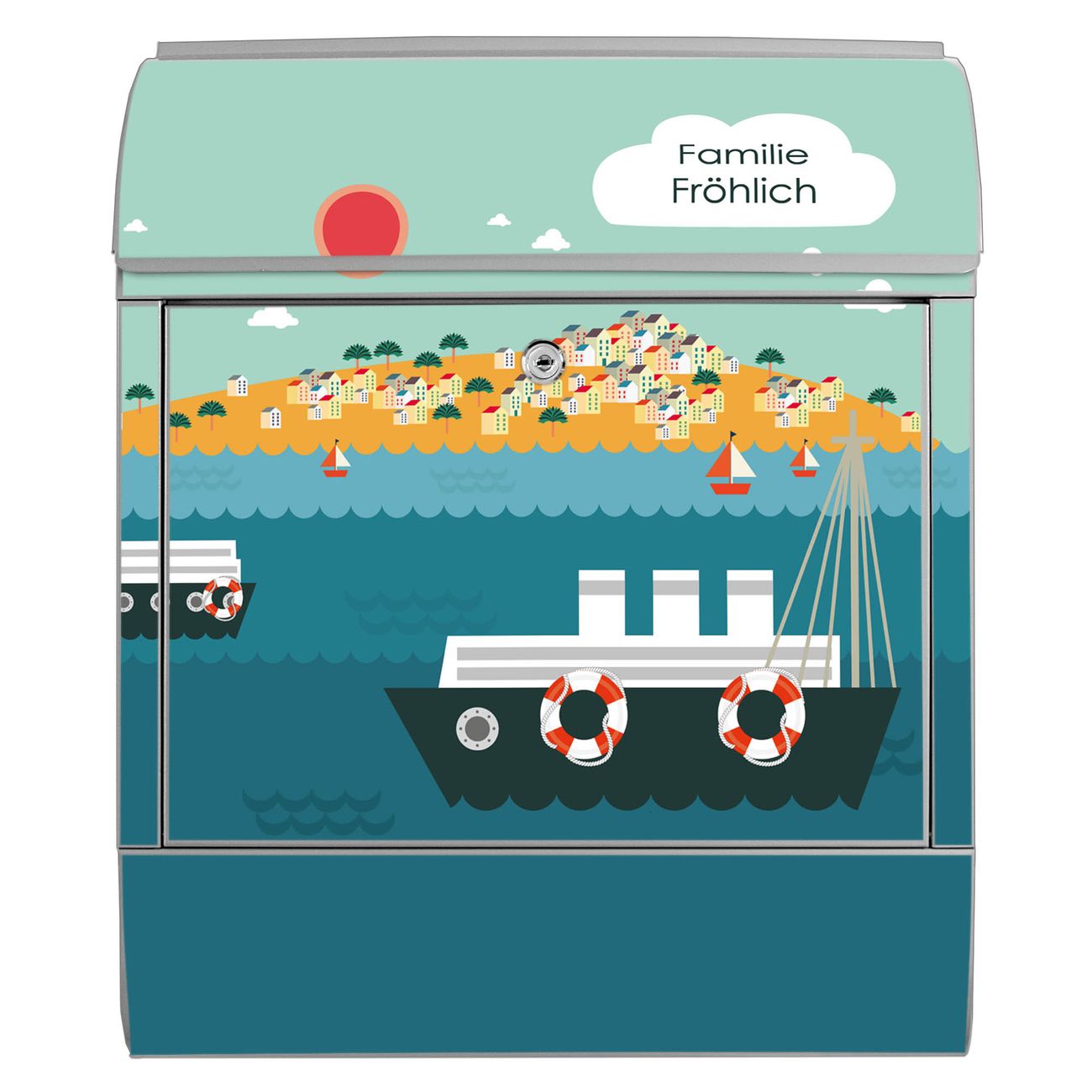 Großer Stahl Briefkasten Motiv Land in Sicht