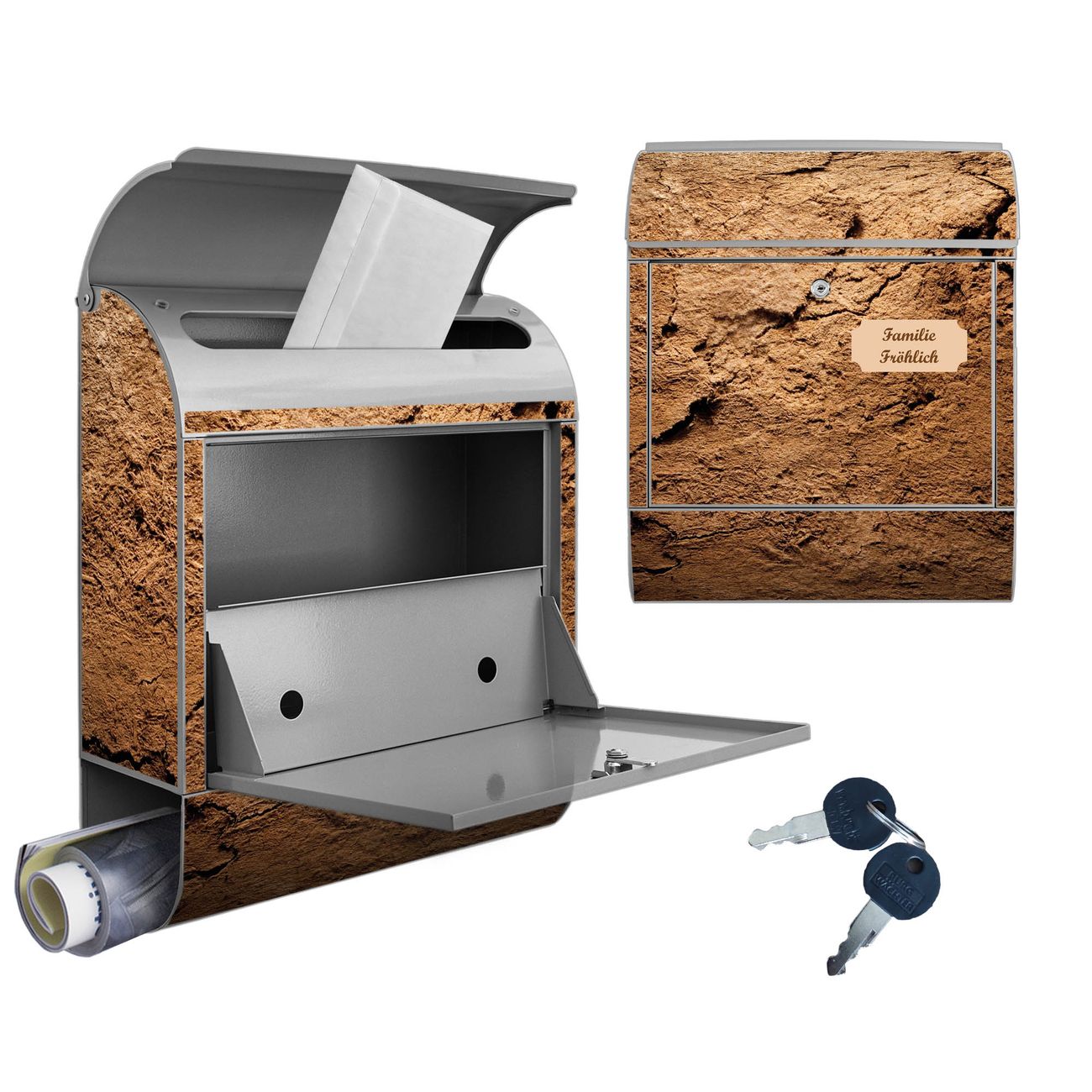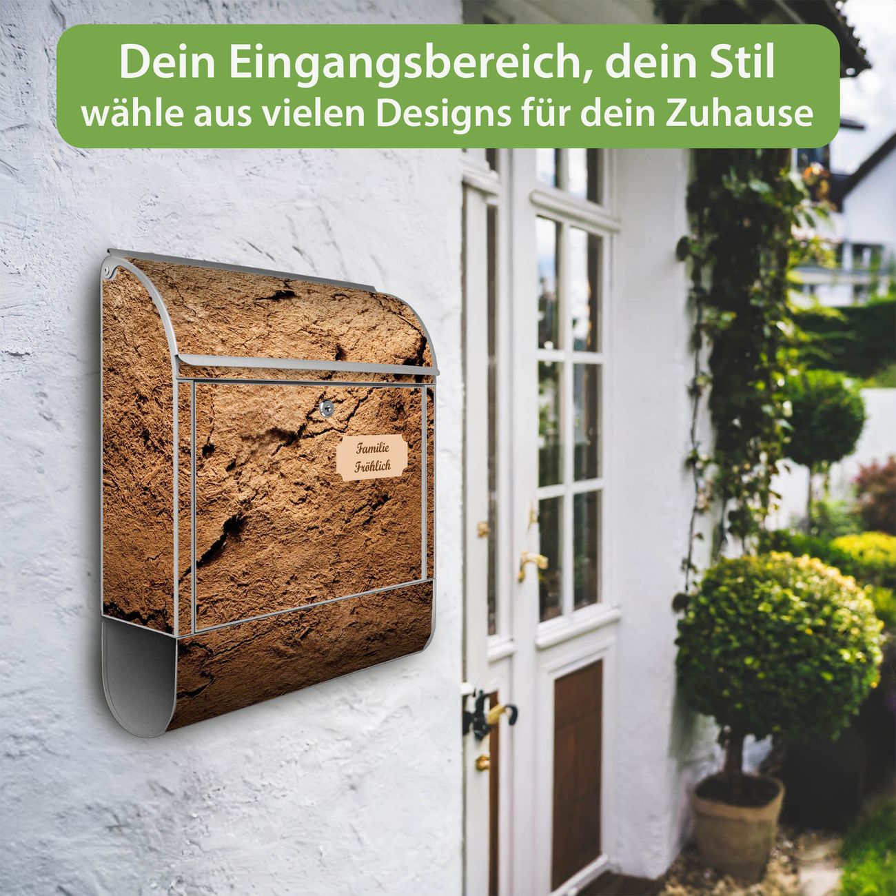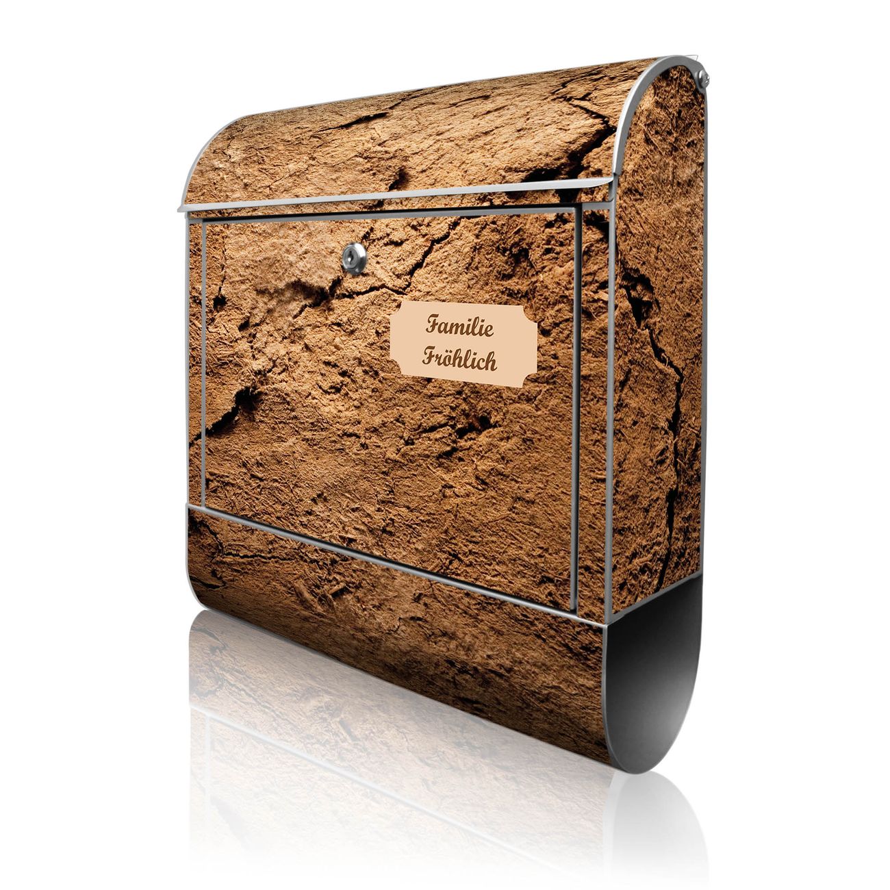 Großer Stahl Briefkasten Motiv Lehmboden