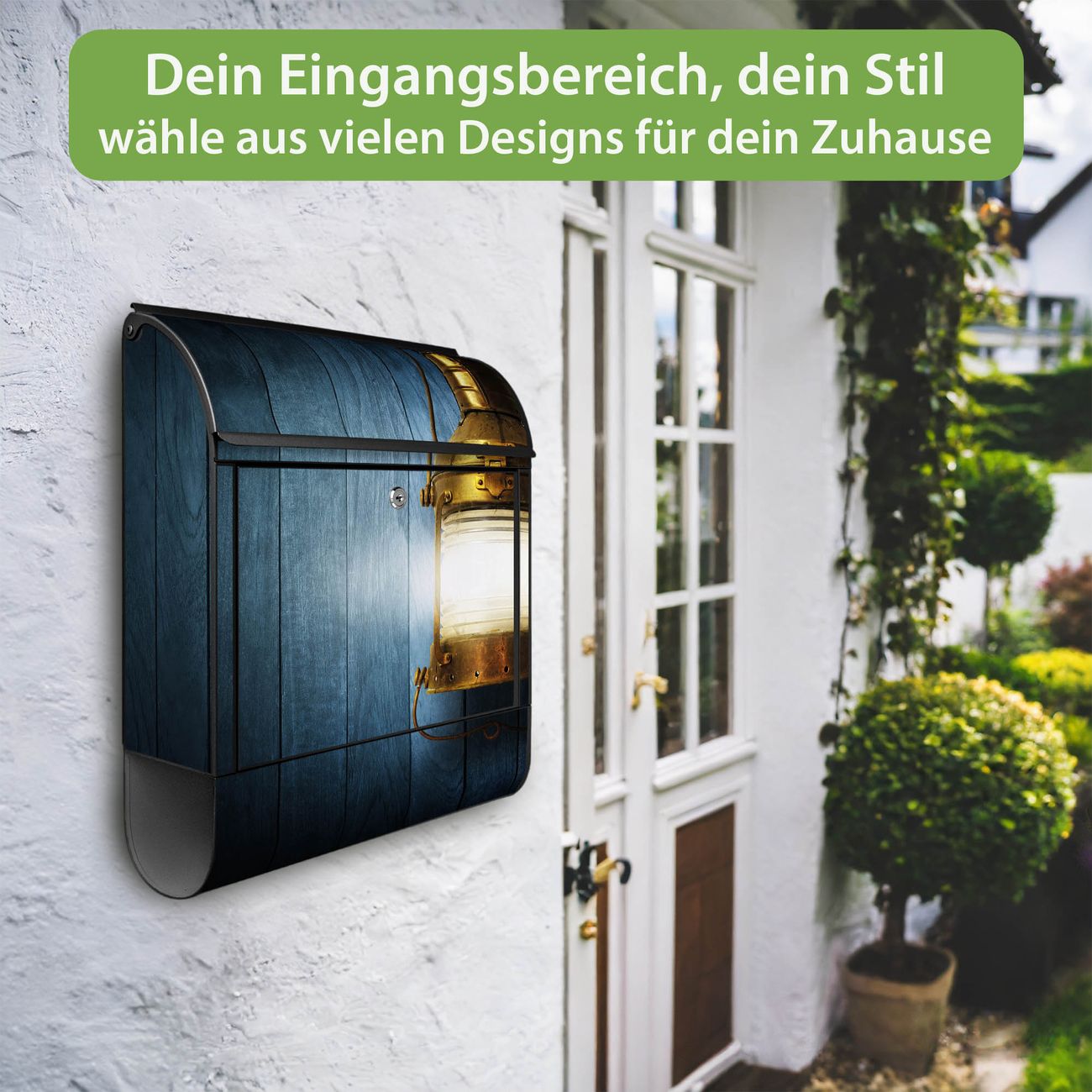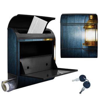 DESIGN: Der Postkasten mit Motiv Motiv Leuchte hat ein sehr ansprechendes und ausgefallenes Design, damit entlocken Sie Ihren Nachbarn und dem Postboten ein Lächeln. Heben Sie Sich von der tristen grauen Masse ab, ohne auf Funktionalität zu verzichten. DETAILS: Der Postkasten besteht aus pulverbeschichtetem Stahl. Er ist 38x46x12,5cm groß. Das Motiv besteht aus einer wetter- und UV-resistenten Folie, die mit einem Schutzlaminat überzogen ist, sodass der Briefkasten zusätzlich vor Kratzern geschützt ist. Der Briefkasten wird mit Montagematerial, zusätzlich zwei Schlüssel sowie einer Bohrschablone geliefert. NUTZEN: Sie können diesen Briefkasten sowohl als Wandbriefkasten montieren oder einen passenden Ständer kaufen und als Standbriefkasten einbetonieren. Die Größe bietet genügend Platz für Sendungen aller Art, der Einwurf fasst auch größere A4 Sendungen. BANJADO: Ihr Briefkasten wird in Sachsen in einer kleinen Manufaktur von Hand veredelt. Die Motivfolie ist lösungsmittelfrei und schutzlaminiert für einen langen Halt. Wir legen großen Wert auf die Verbindung von Funktionalität und Design. Sie erhalten Handarbeit aus Sachsen.
