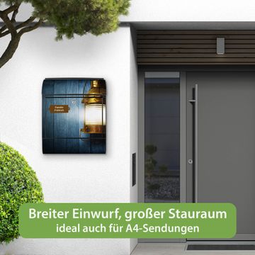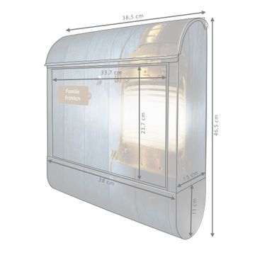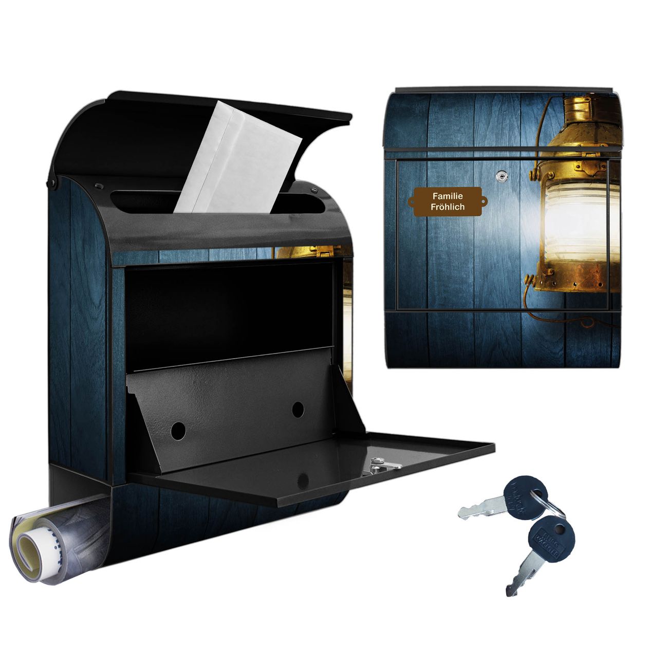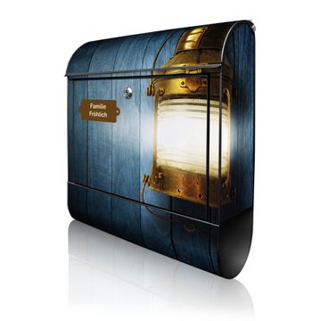 DESIGN: Der Postkasten mit Motiv Motiv Leuchte hat ein sehr ansprechendes und ausgefallenes Design, damit entlocken Sie Ihren Nachbarn und dem Postboten ein Lächeln. Heben Sie Sich von der tristen grauen Masse ab, ohne auf Funktionalität zu verzichten. DETAILS: Der Postkasten besteht aus pulverbeschichtetem Stahl. Er ist 38x46x12,5cm groß. Das Motiv besteht aus einer wetter- und UV-resistenten Folie, die mit einem Schutzlaminat überzogen ist, sodass der Briefkasten zusätzlich vor Kratzern geschützt ist. Der Briefkasten wird mit Montagematerial, zusätzlich zwei Schlüssel sowie einer Bohrschablone geliefert. NUTZEN: Sie können diesen Briefkasten sowohl als Wandbriefkasten montieren oder einen passenden Ständer kaufen und als Standbriefkasten einbetonieren. Die Größe bietet genügend Platz für Sendungen aller Art, der Einwurf fasst auch größere A4 Sendungen. BANJADO: Ihr Briefkasten wird in Sachsen in einer kleinen Manufaktur von Hand veredelt. Die Motivfolie ist lösungsmittelfrei und schutzlaminiert für einen langen Halt. Wir legen großen Wert auf die Verbindung von Funktionalität und Design. Sie erhalten Handarbeit aus Sachsen.