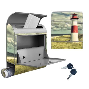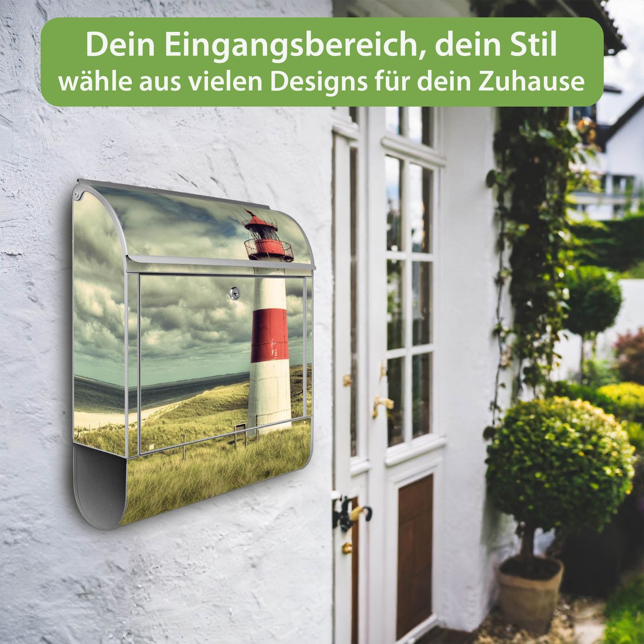Großer Stahl Briefkasten Motiv Leuchtturm Sylt