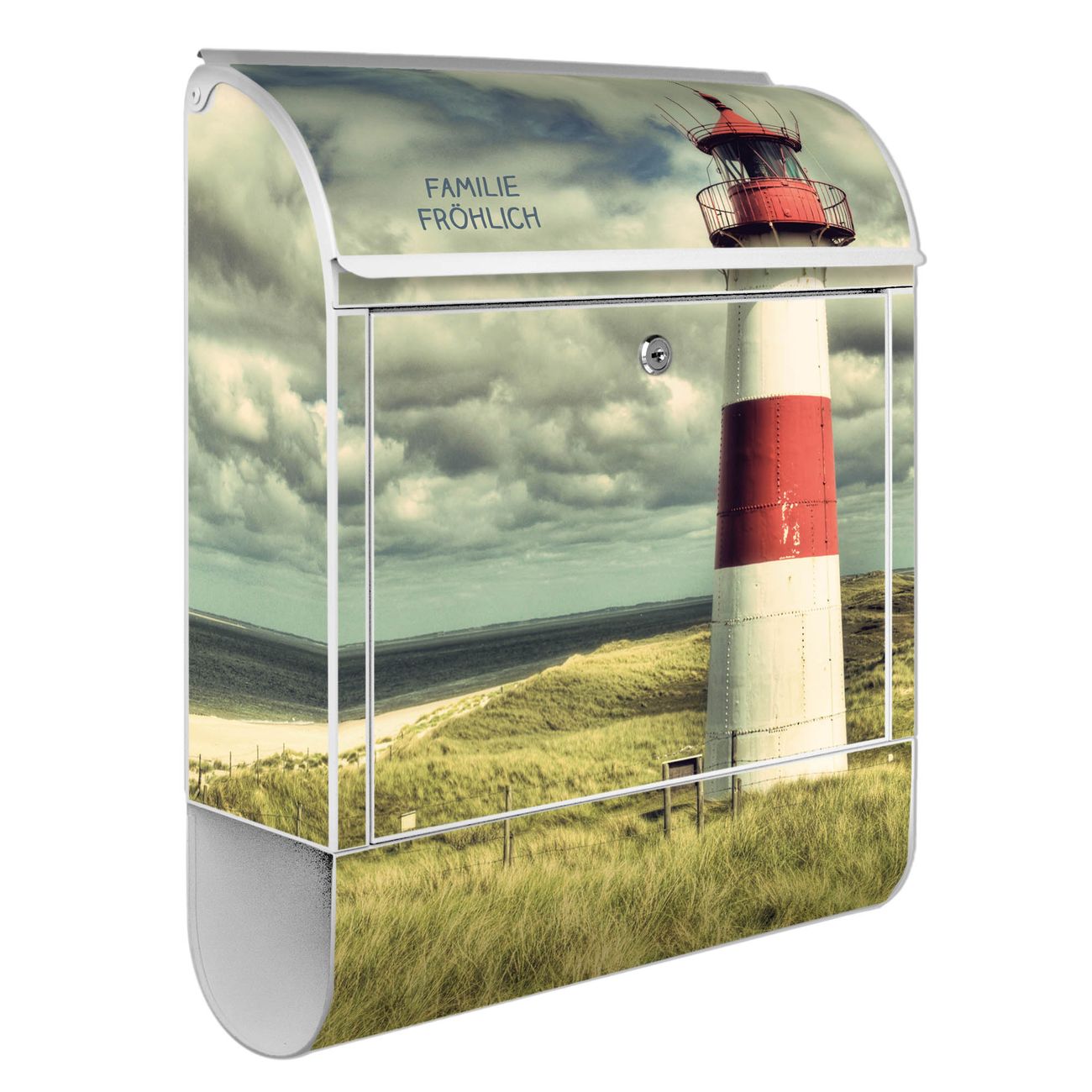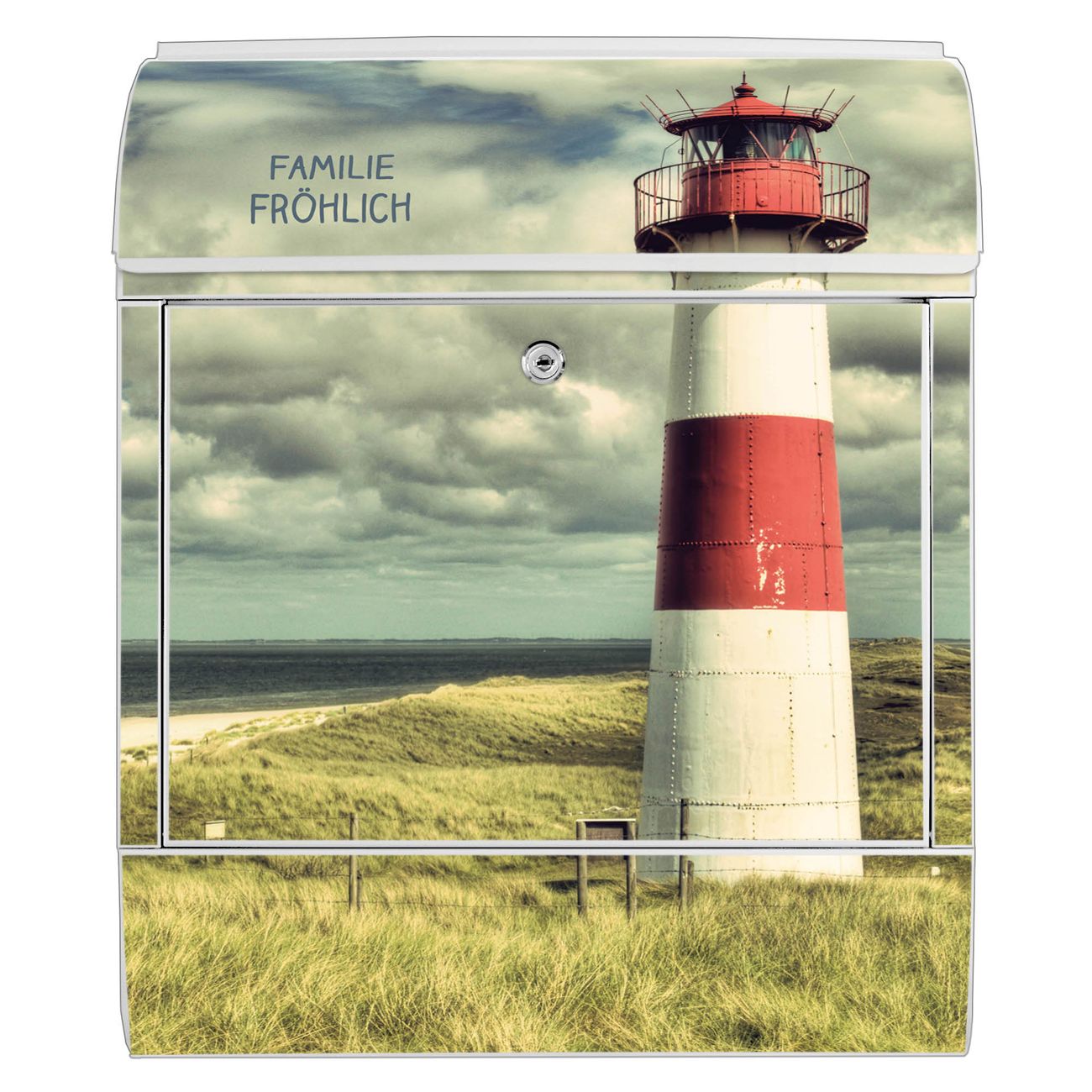 Großer Stahl Briefkasten Motiv Leuchtturm Sylt