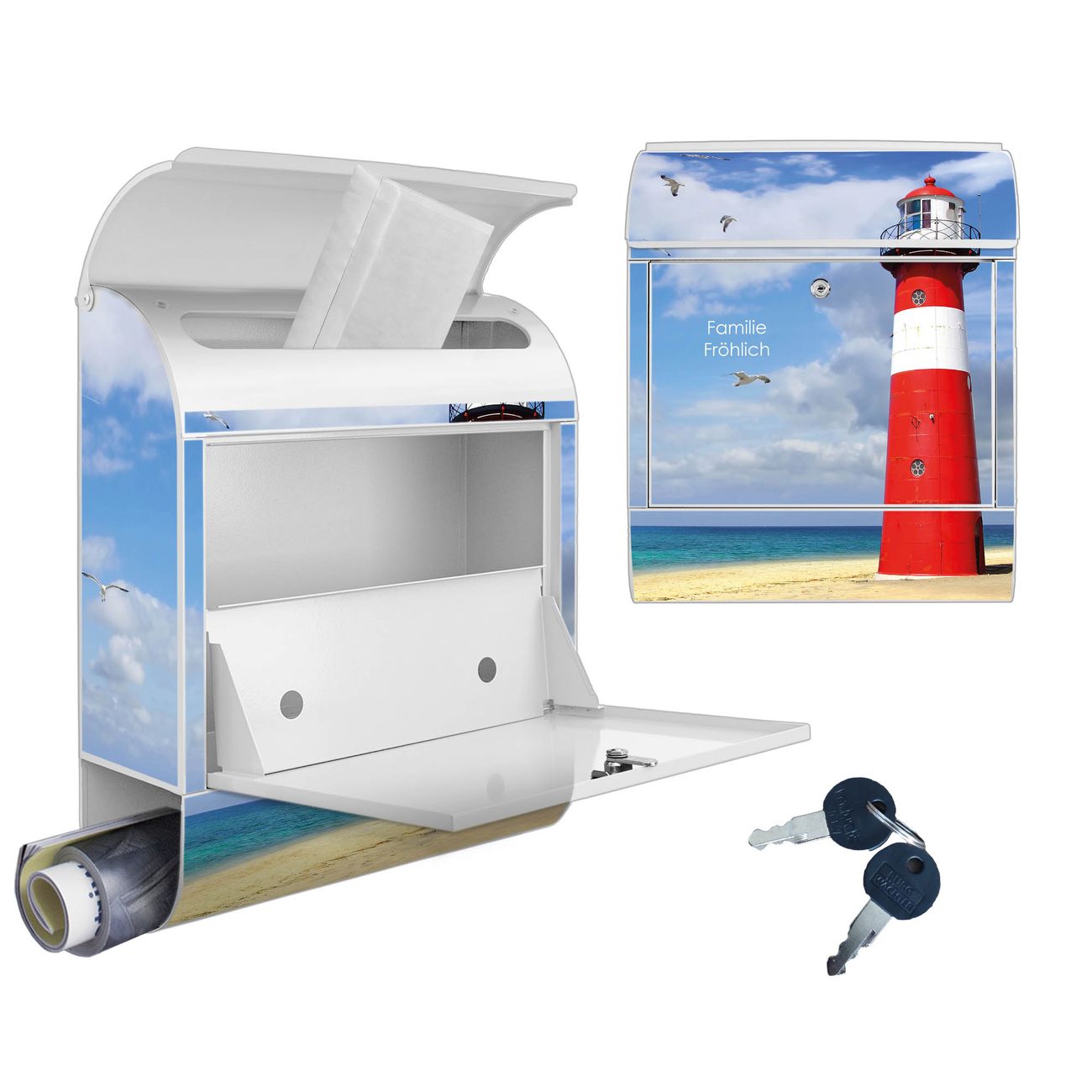 Großer Stahl Briefkasten Motiv Leuchtturm Westkapelle