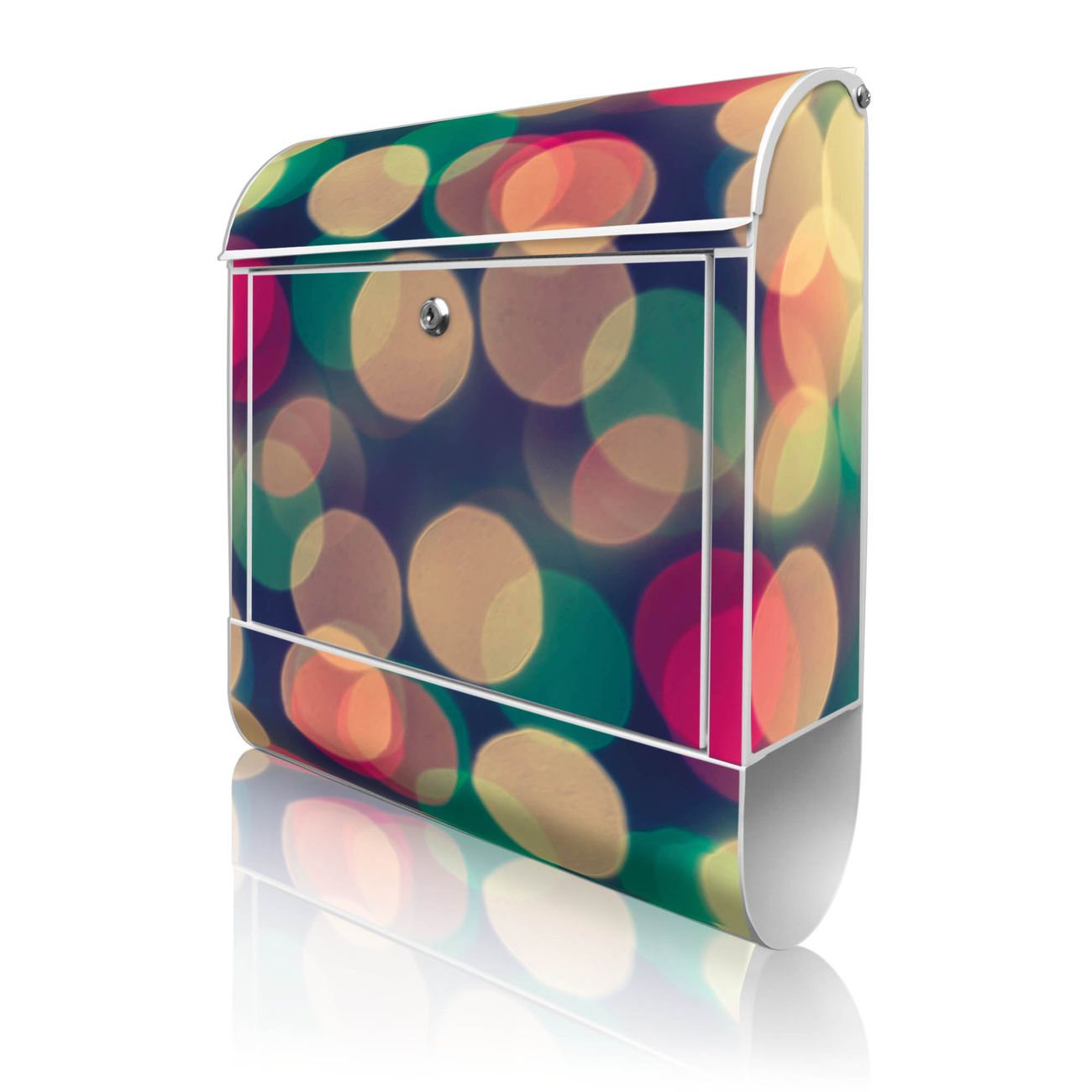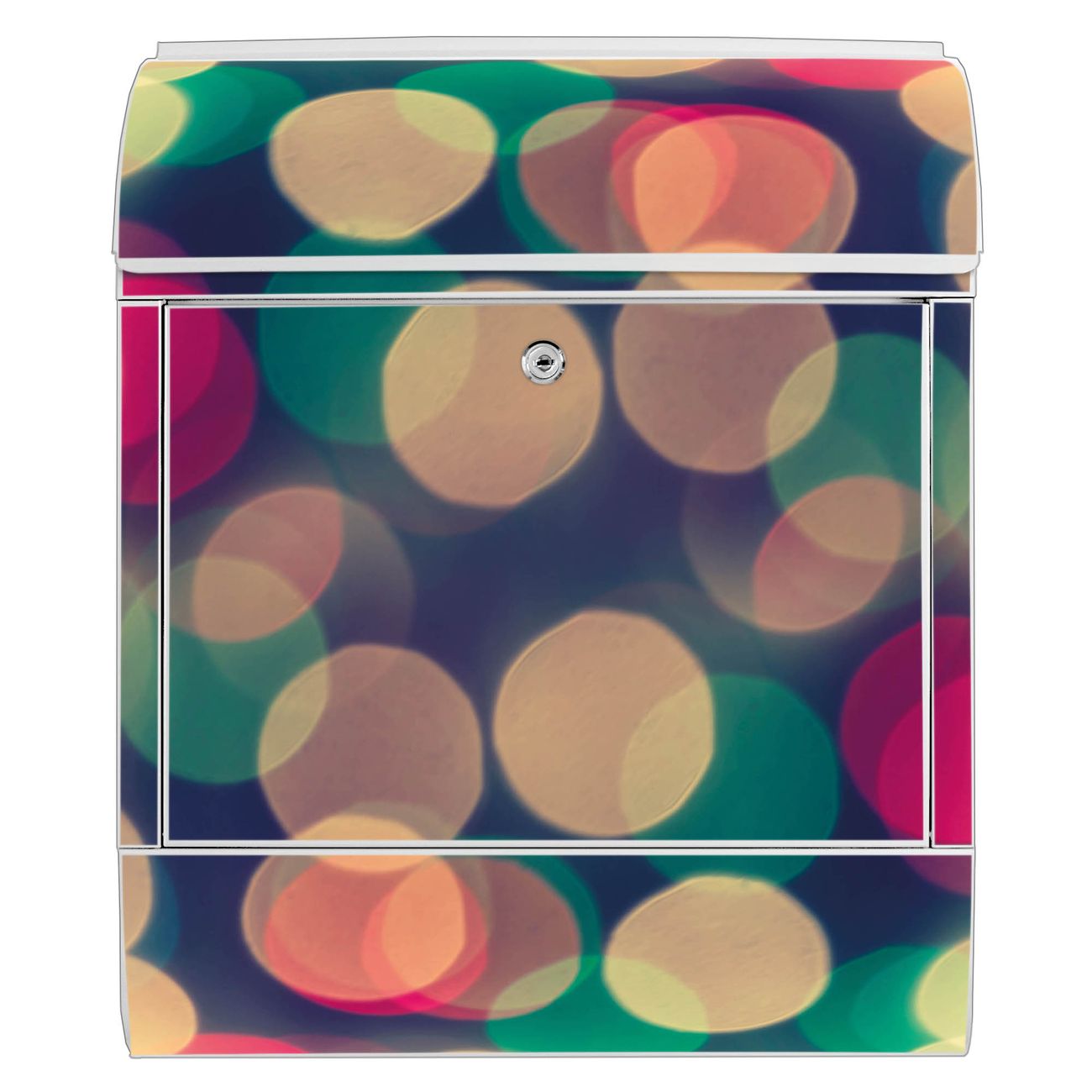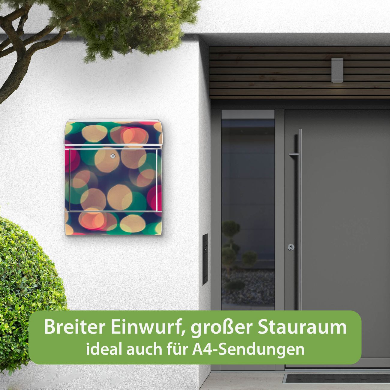 Großer Stahl Briefkasten Motiv Lichtpunkte Weiß Grün Rot