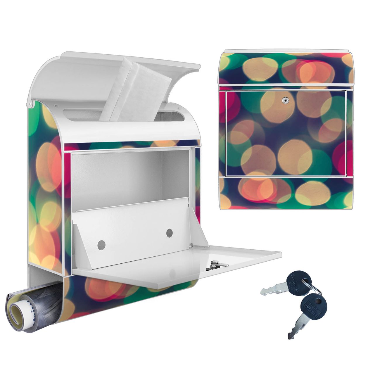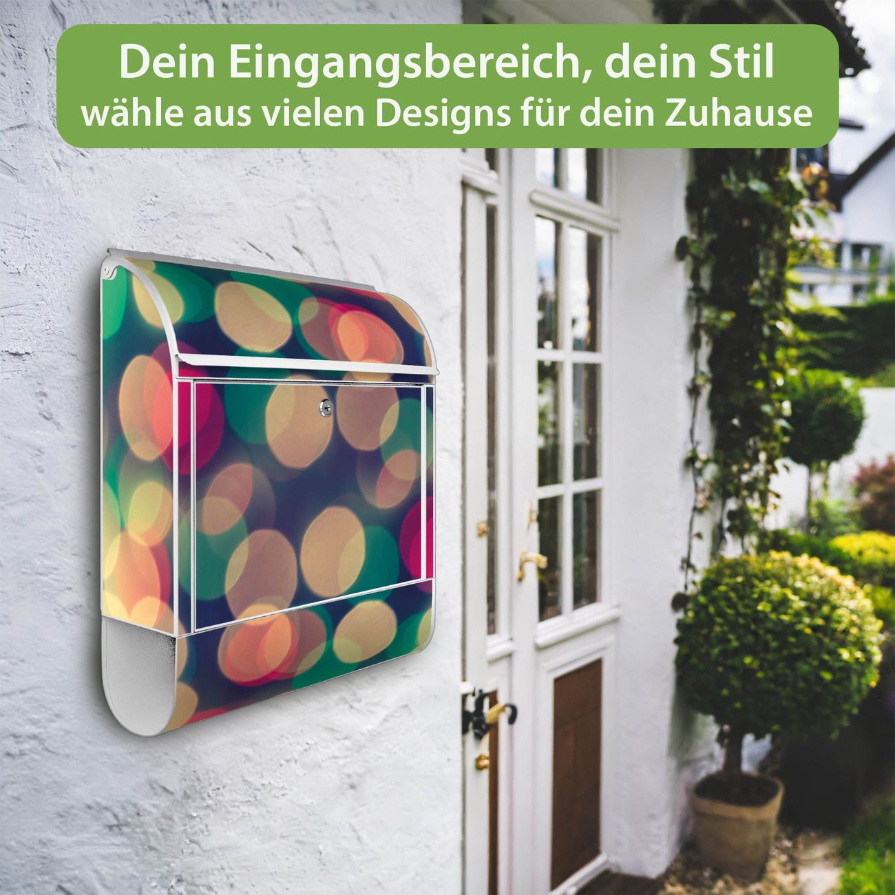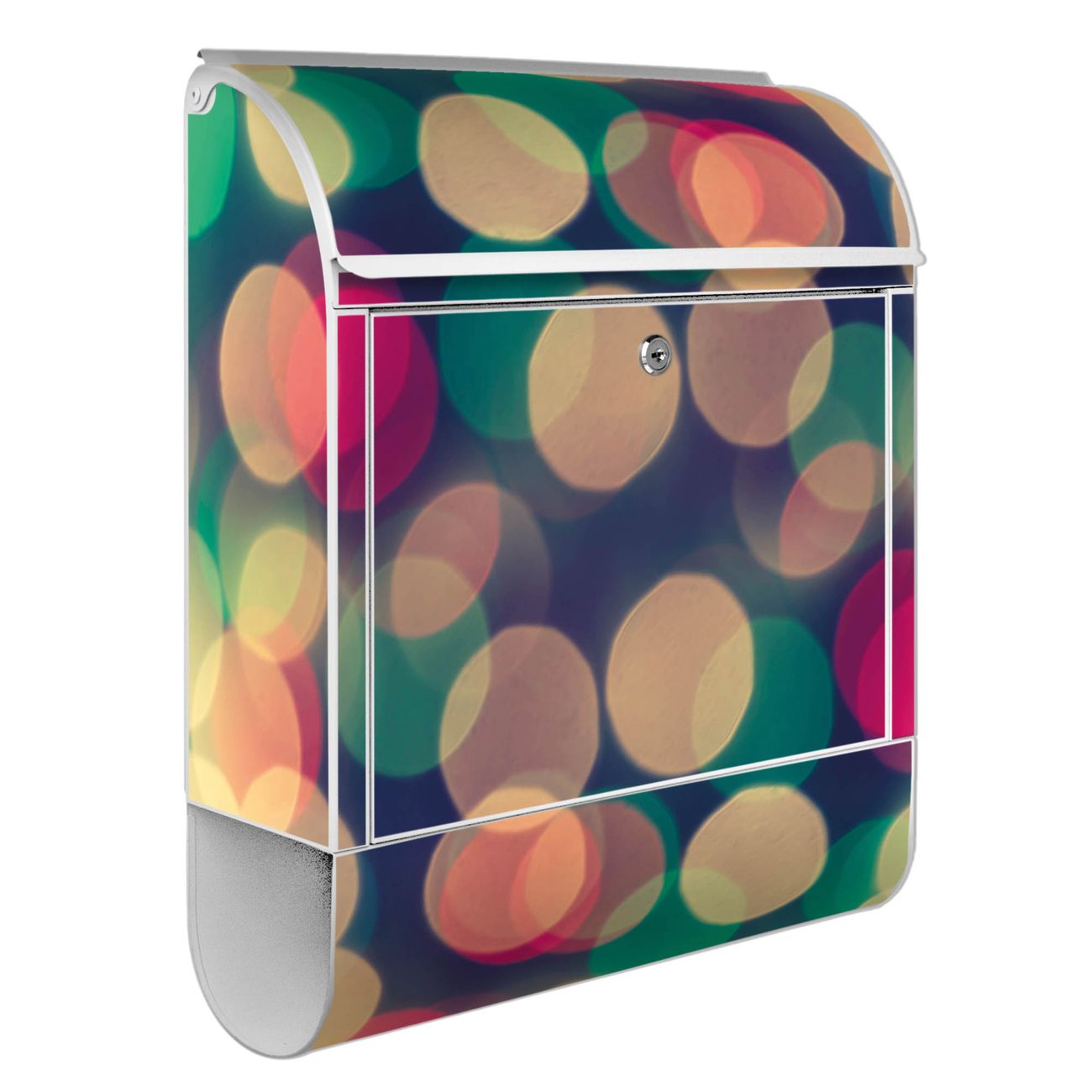 Großer Stahl Briefkasten Motiv Lichtpunkte Weiß Grün Rot