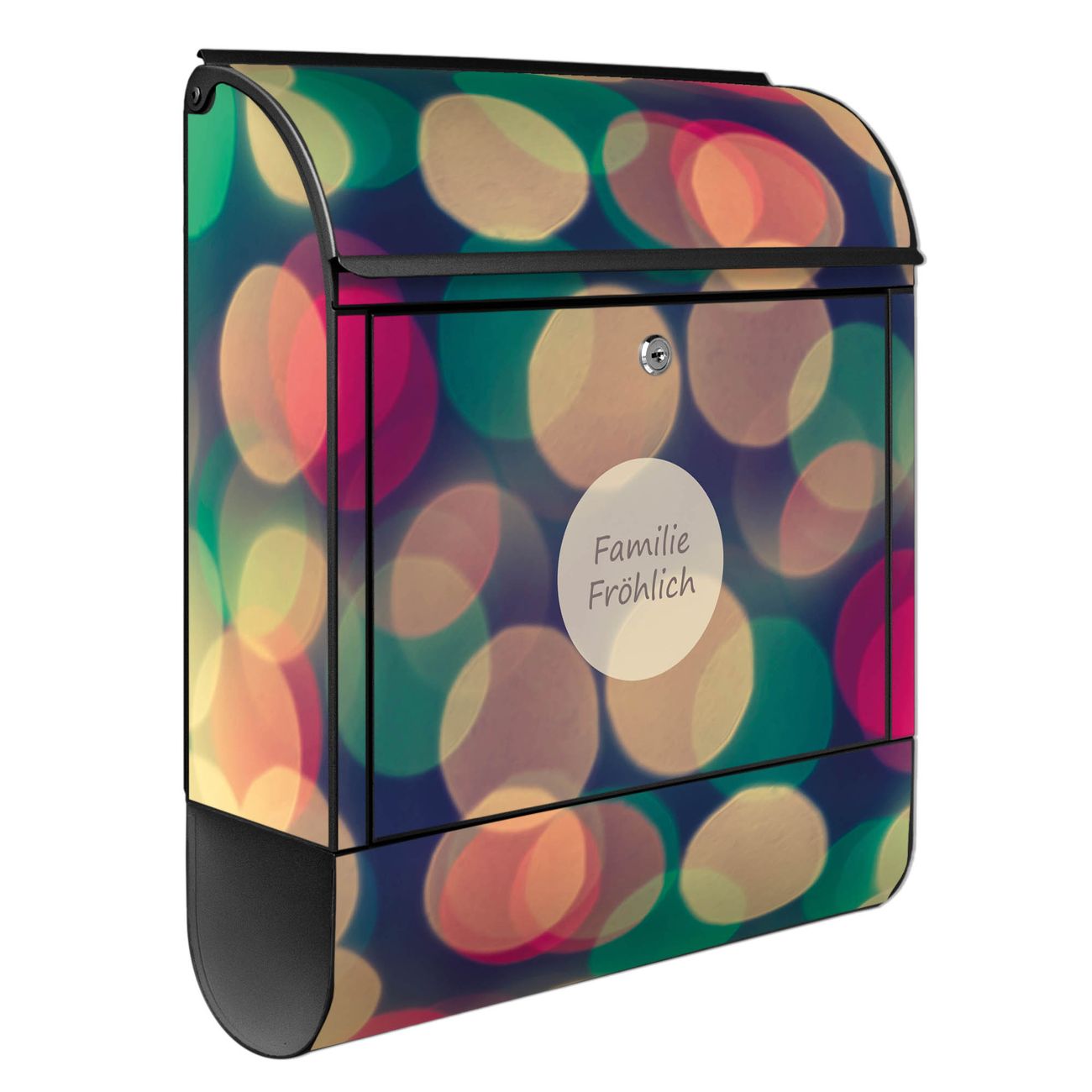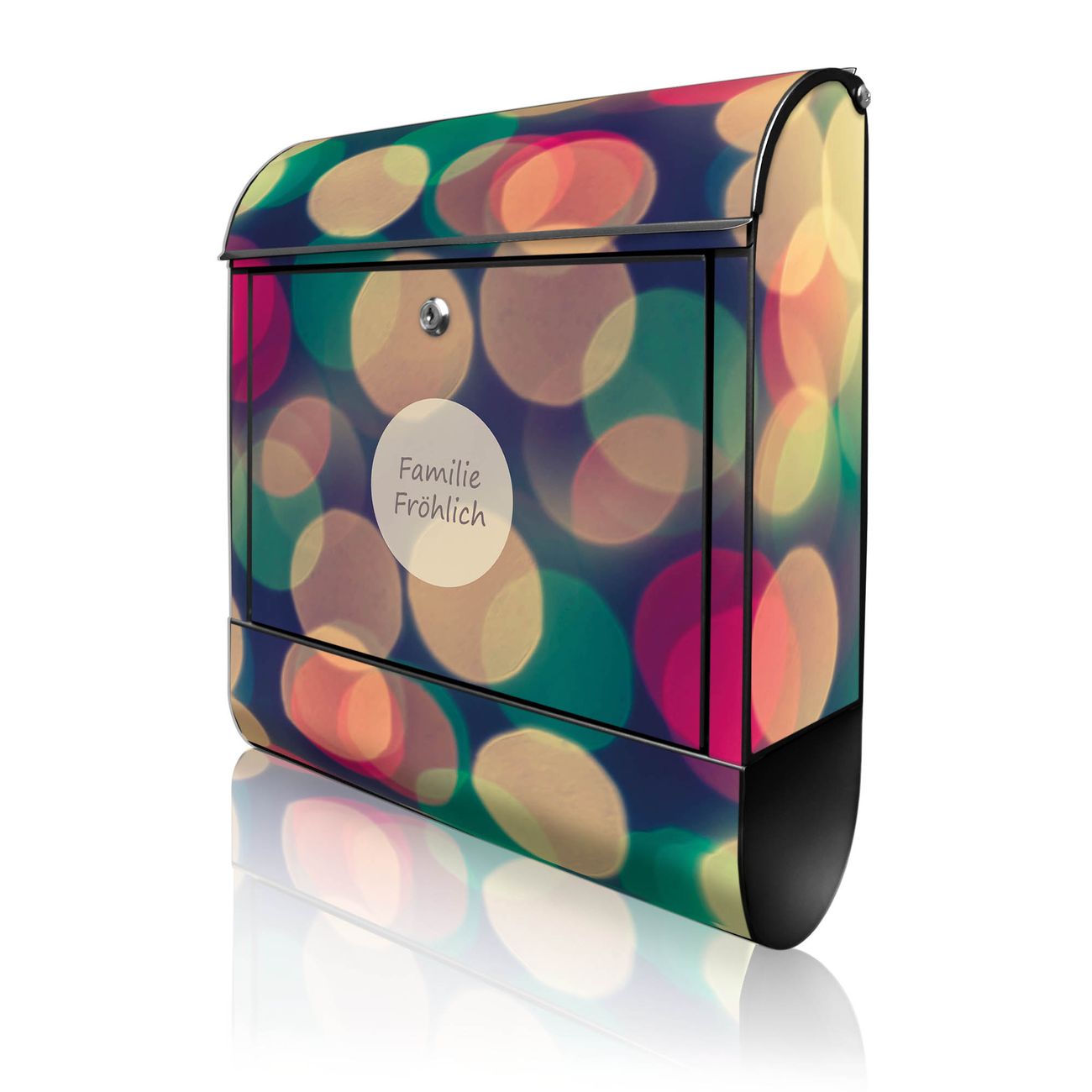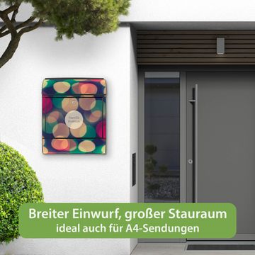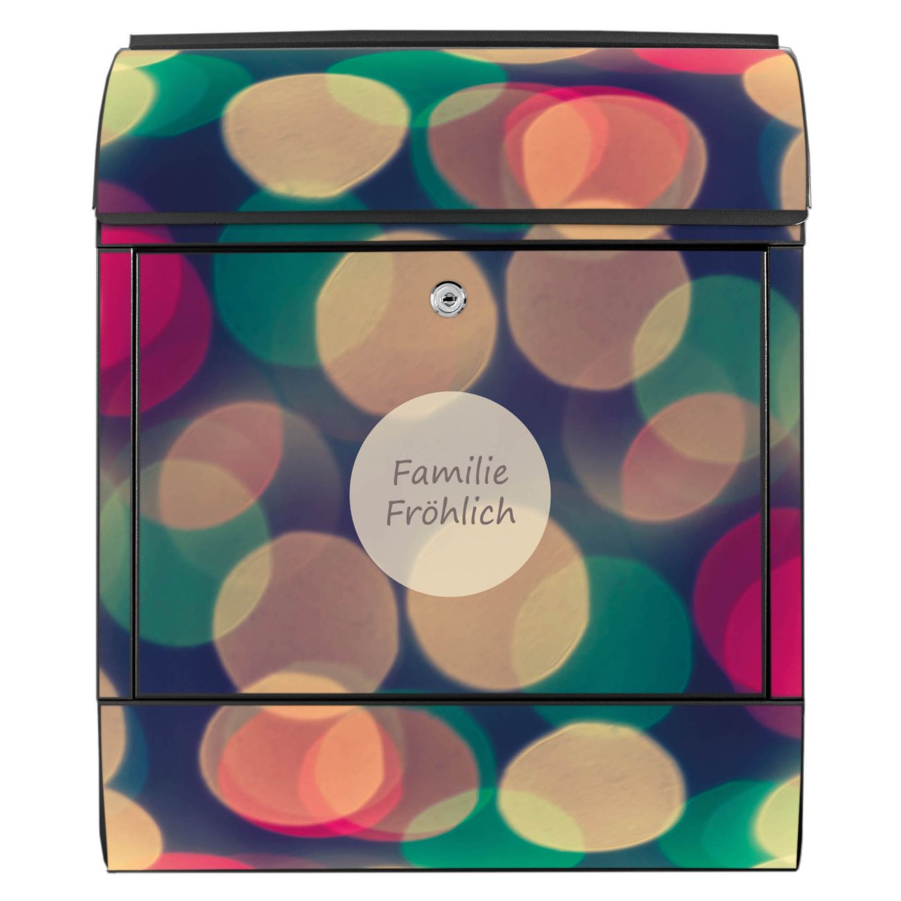 Großer Stahl Briefkasten Motiv Lichtpunkte Weiß Grün Rot