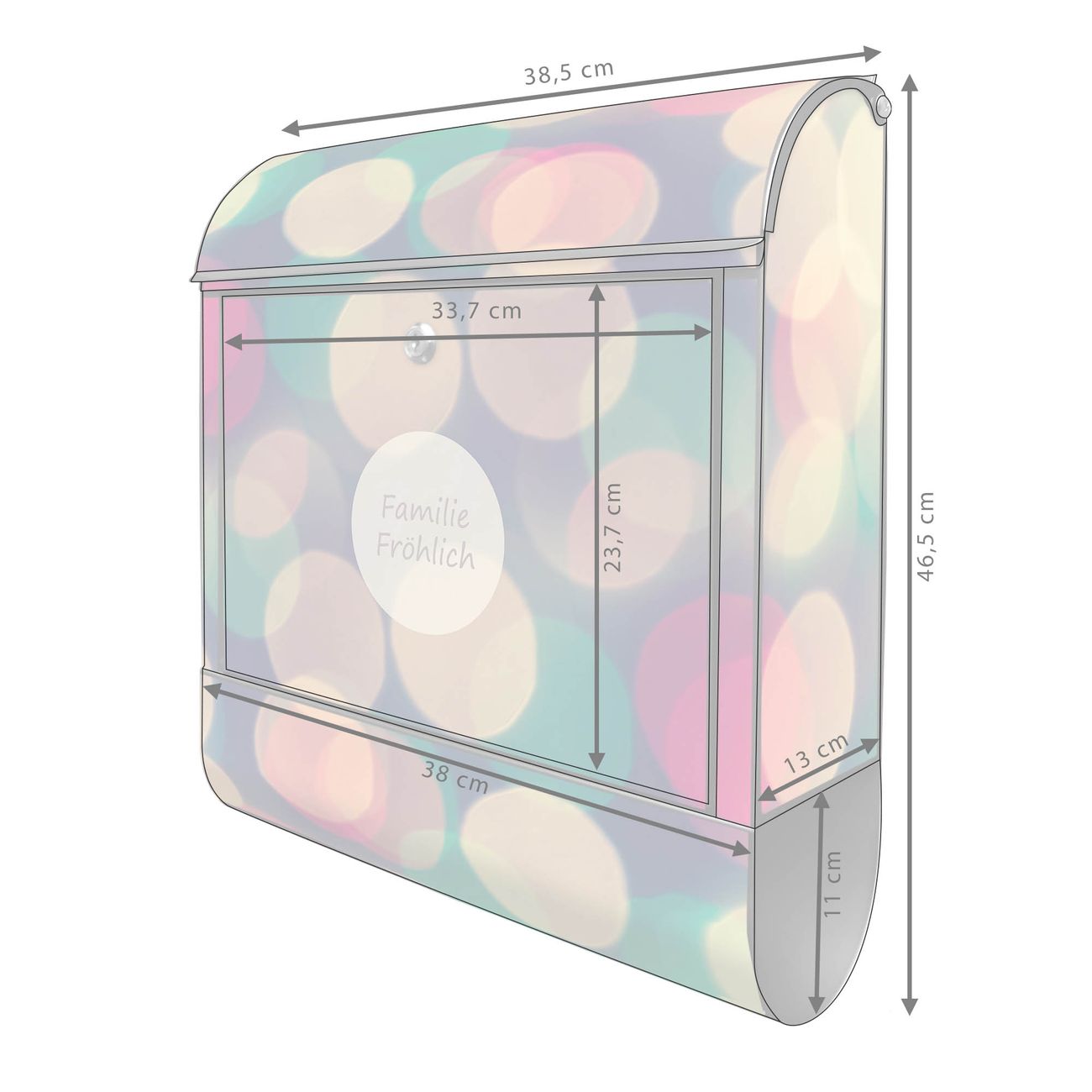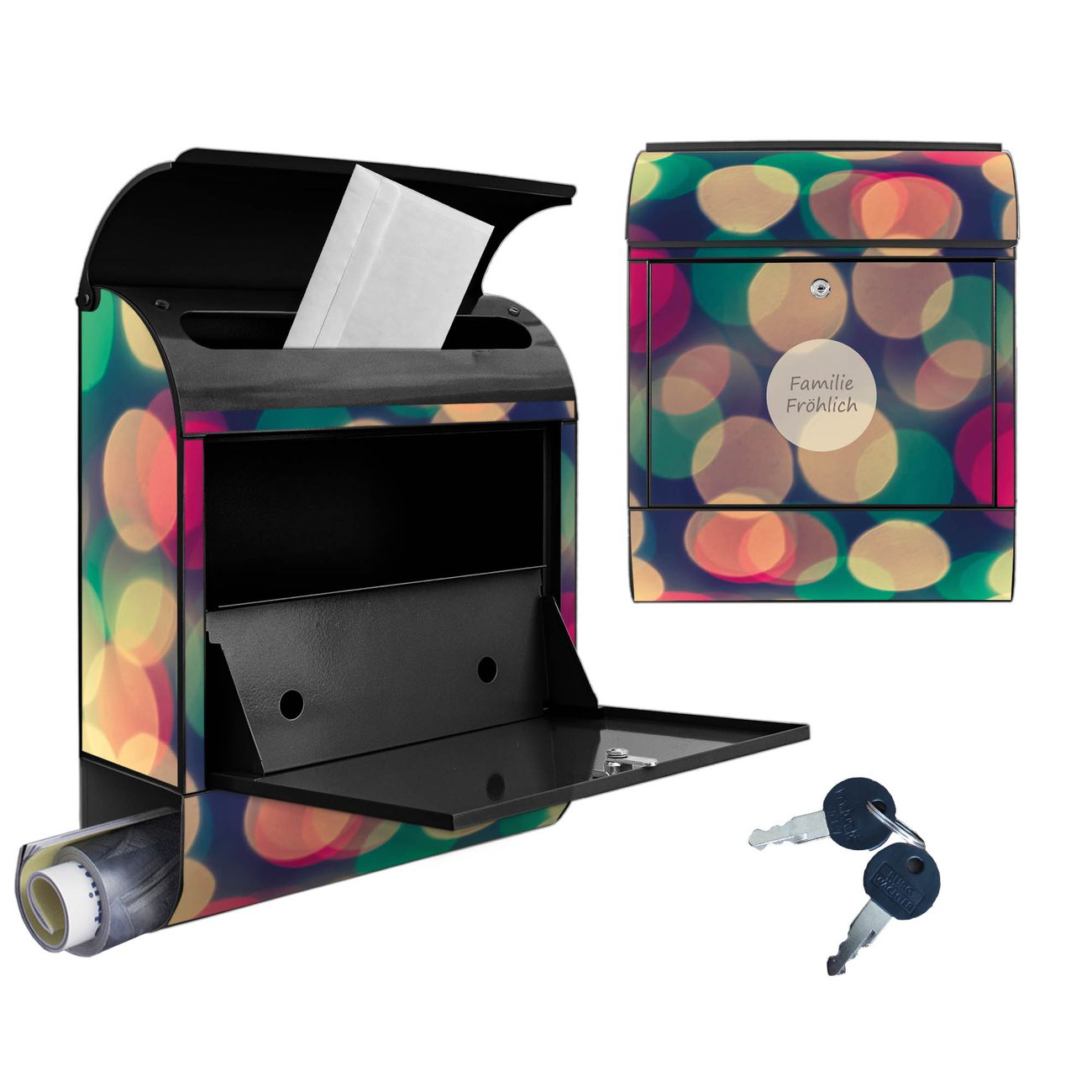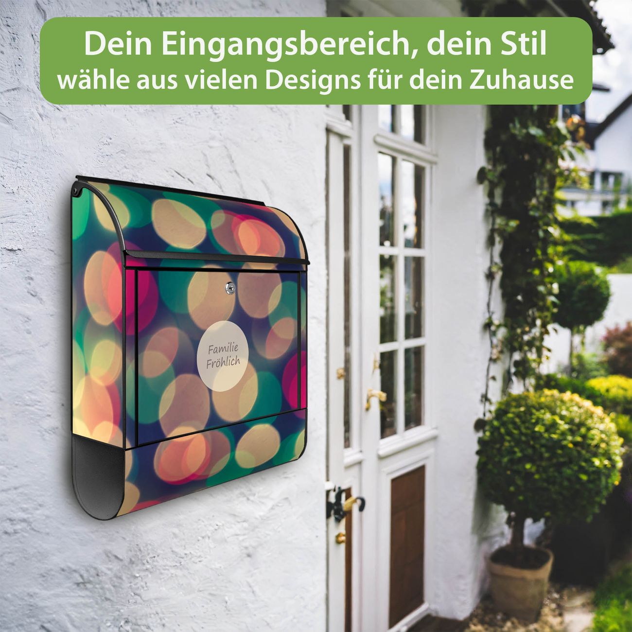 Großer Stahl Briefkasten Motiv Lichtpunkte Weiß Grün Rot
