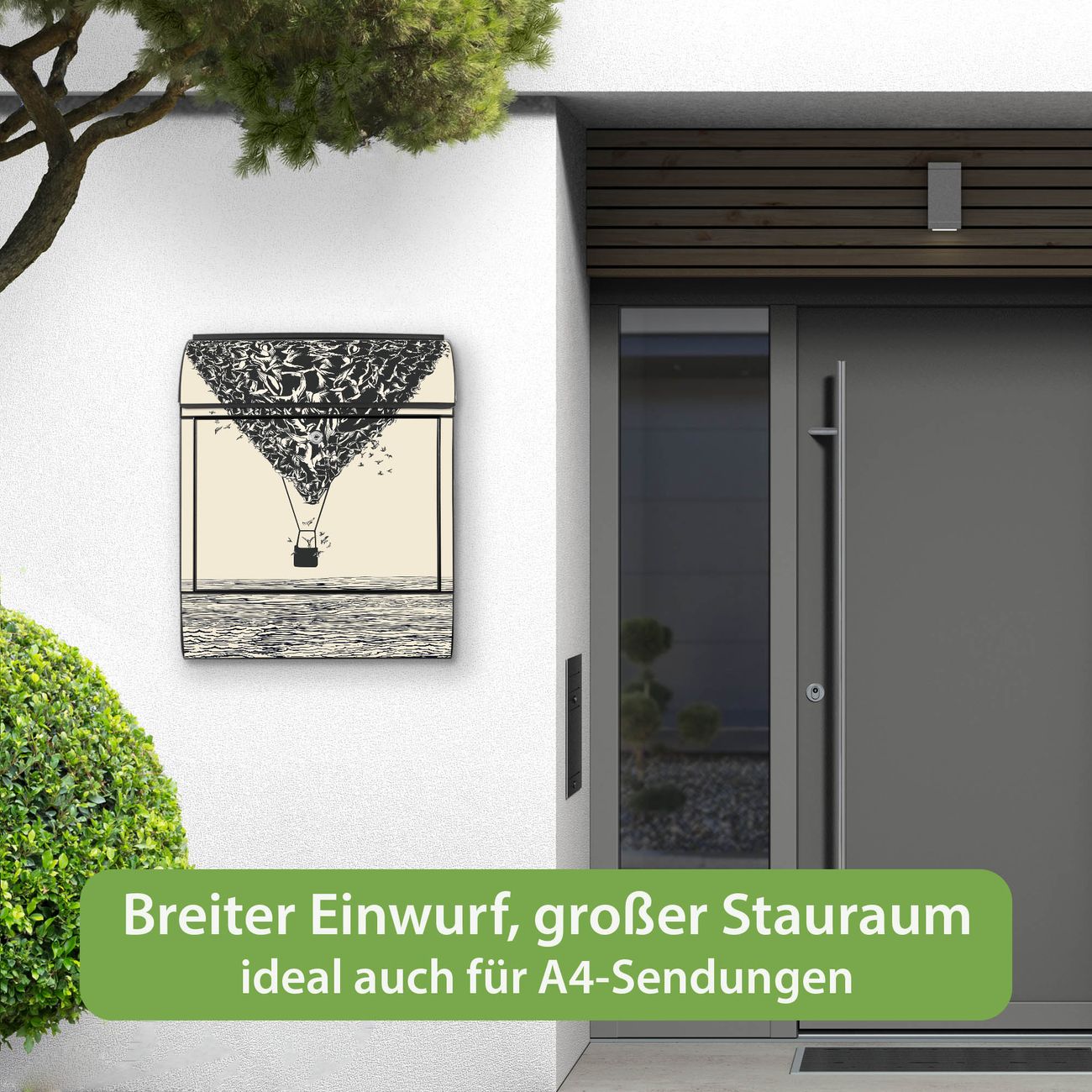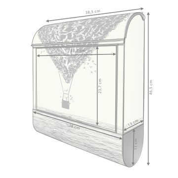 DESIGN: Der Postkasten mit Motiv Motiv Lift hat ein sehr ansprechendes und ausgefallenes Design, damit entlocken Sie Ihren Nachbarn und dem Postboten ein Lächeln. Heben Sie Sich von der tristen grauen Masse ab, ohne auf Funktionalität zu verzichten. DETAILS: Der Postkasten besteht aus pulverbeschichtetem Stahl. Er ist 38x46x12,5cm groß. Das Motiv besteht aus einer wetter- und UV-resistenten Folie, die mit einem Schutzlaminat überzogen ist, sodass der Briefkasten zusätzlich vor Kratzern geschützt ist. Der Briefkasten wird mit Montagematerial, zusätzlich zwei Schlüssel sowie einer Bohrschablone geliefert. NUTZEN: Sie können diesen Briefkasten sowohl als Wandbriefkasten montieren oder einen passenden Ständer kaufen und als Standbriefkasten einbetonieren. Die Größe bietet genügend Platz für Sendungen aller Art, der Einwurf fasst auch größere A4 Sendungen. BANJADO: Ihr Briefkasten wird in Sachsen in einer kleinen Manufaktur von Hand veredelt. Die Motivfolie ist lösungsmittelfrei und schutzlaminiert für einen langen Halt. Wir legen großen Wert auf die Verbindung von Funktionalität und Design. Sie erhalten Handarbeit aus Sachsen.