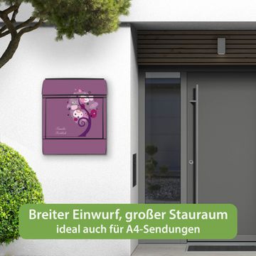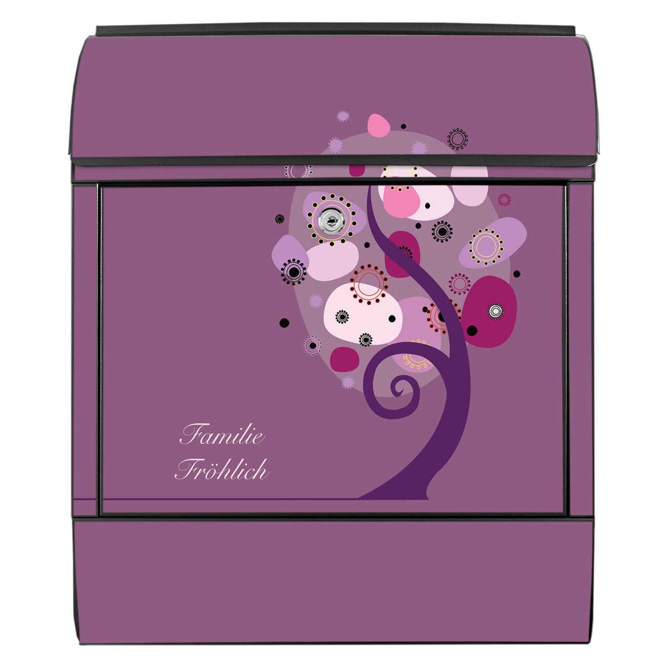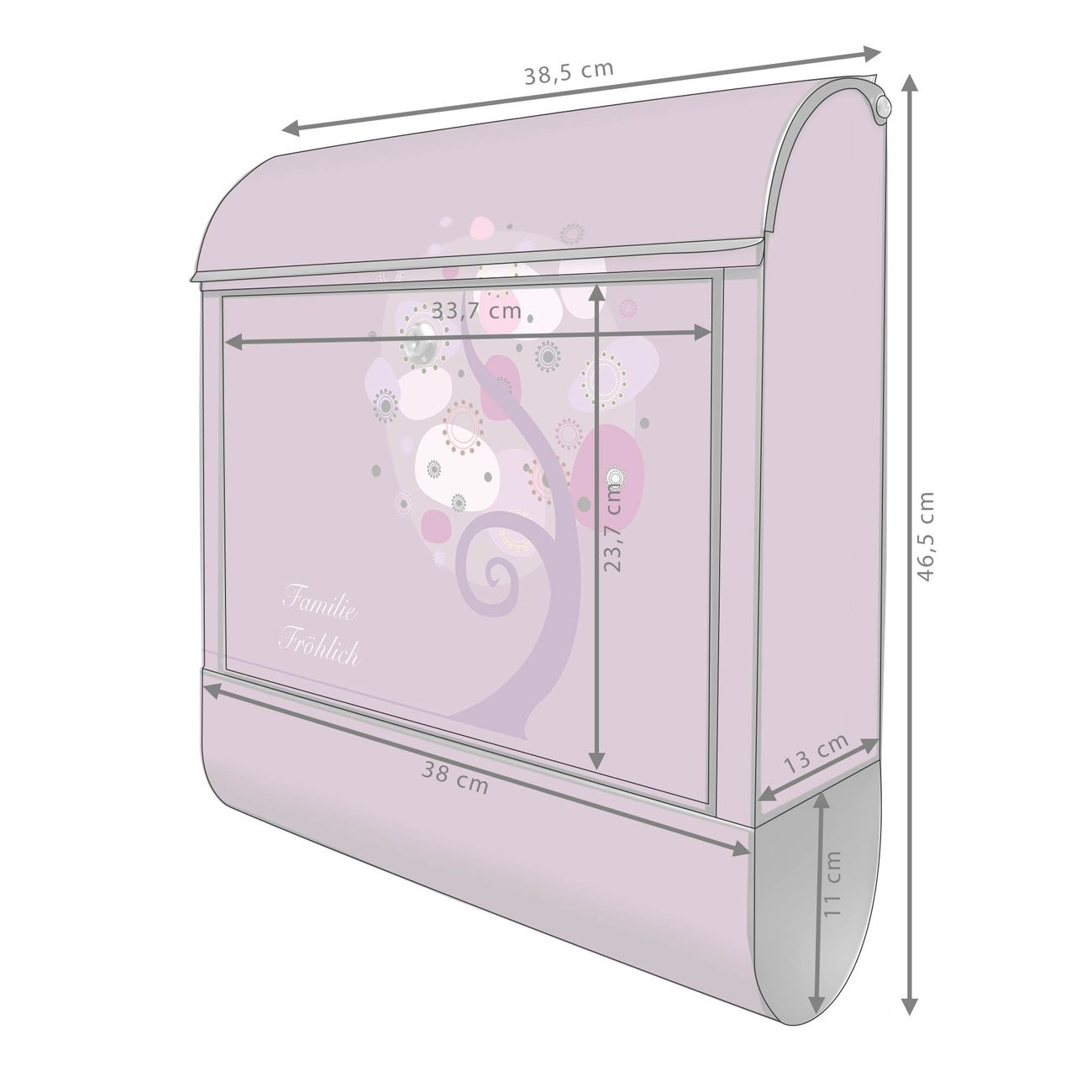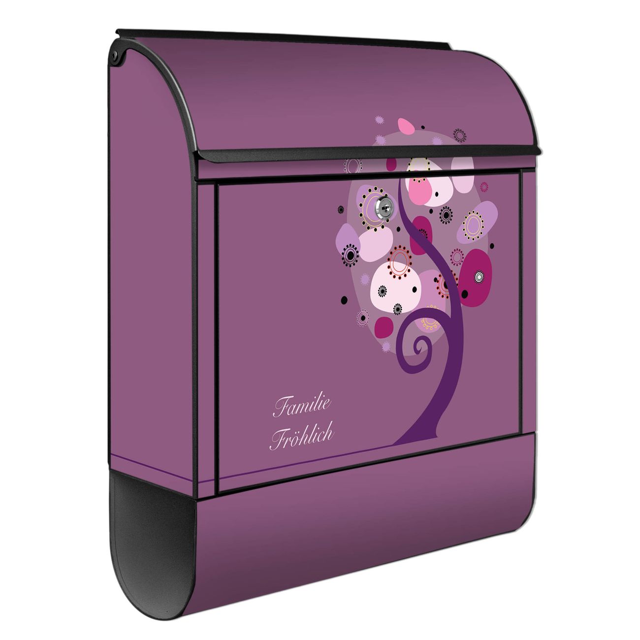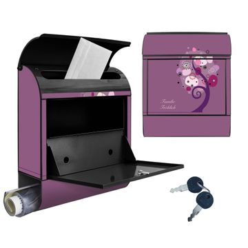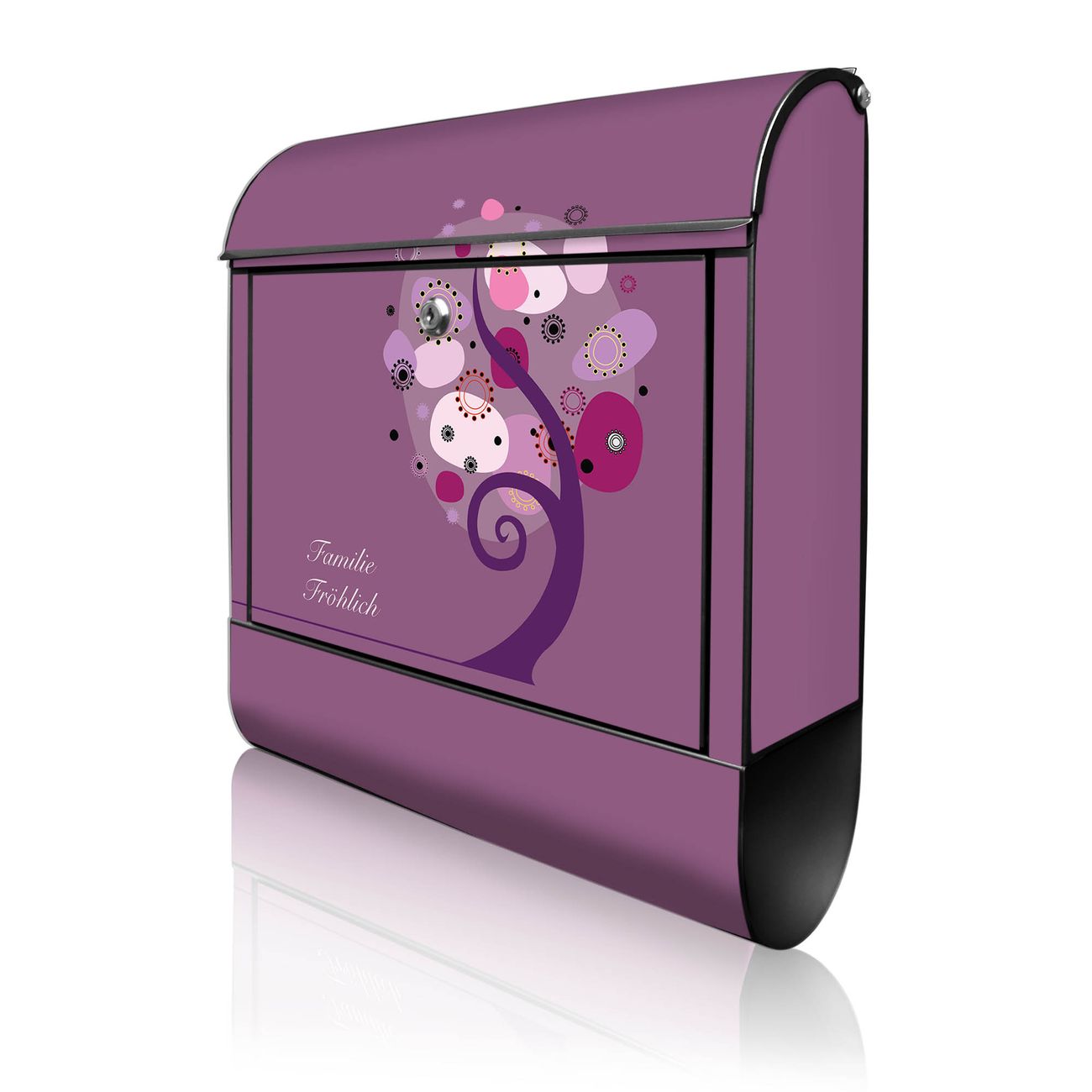 DESIGN: Der Postkasten mit Motiv Motiv Lila Baum hat ein sehr ansprechendes und ausgefallenes Design, damit entlocken Sie Ihren Nachbarn und dem Postboten ein Lächeln. Heben Sie Sich von der tristen grauen Masse ab, ohne auf Funktionalität zu verzichten. DETAILS: Der Postkasten besteht aus pulverbeschichtetem Stahl. Er ist 38x46x12,5cm groß. Das Motiv besteht aus einer wetter- und UV-resistenten Folie, die mit einem Schutzlaminat überzogen ist, sodass der Briefkasten zusätzlich vor Kratzern geschützt ist. Der Briefkasten wird mit Montagematerial, zusätzlich zwei Schlüssel sowie einer Bohrschablone geliefert. NUTZEN: Sie können diesen Briefkasten sowohl als Wandbriefkasten montieren oder einen passenden Ständer kaufen und als Standbriefkasten einbetonieren. Die Größe bietet genügend Platz für Sendungen aller Art, der Einwurf fasst auch größere A4 Sendungen. BANJADO: Ihr Briefkasten wird in Sachsen in einer kleinen Manufaktur von Hand veredelt. Die Motivfolie ist lösungsmittelfrei und schutzlaminiert für einen langen Halt. Wir legen großen Wert auf die Verbindung von Funktionalität und Design. Sie erhalten Handarbeit aus Sachsen.