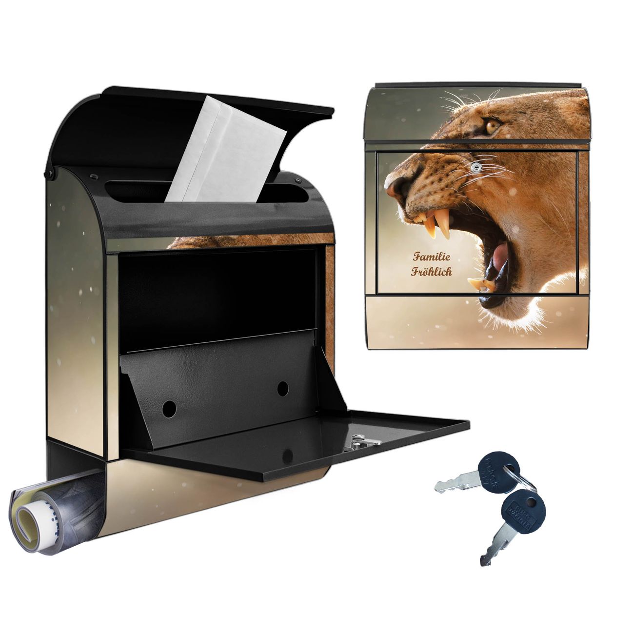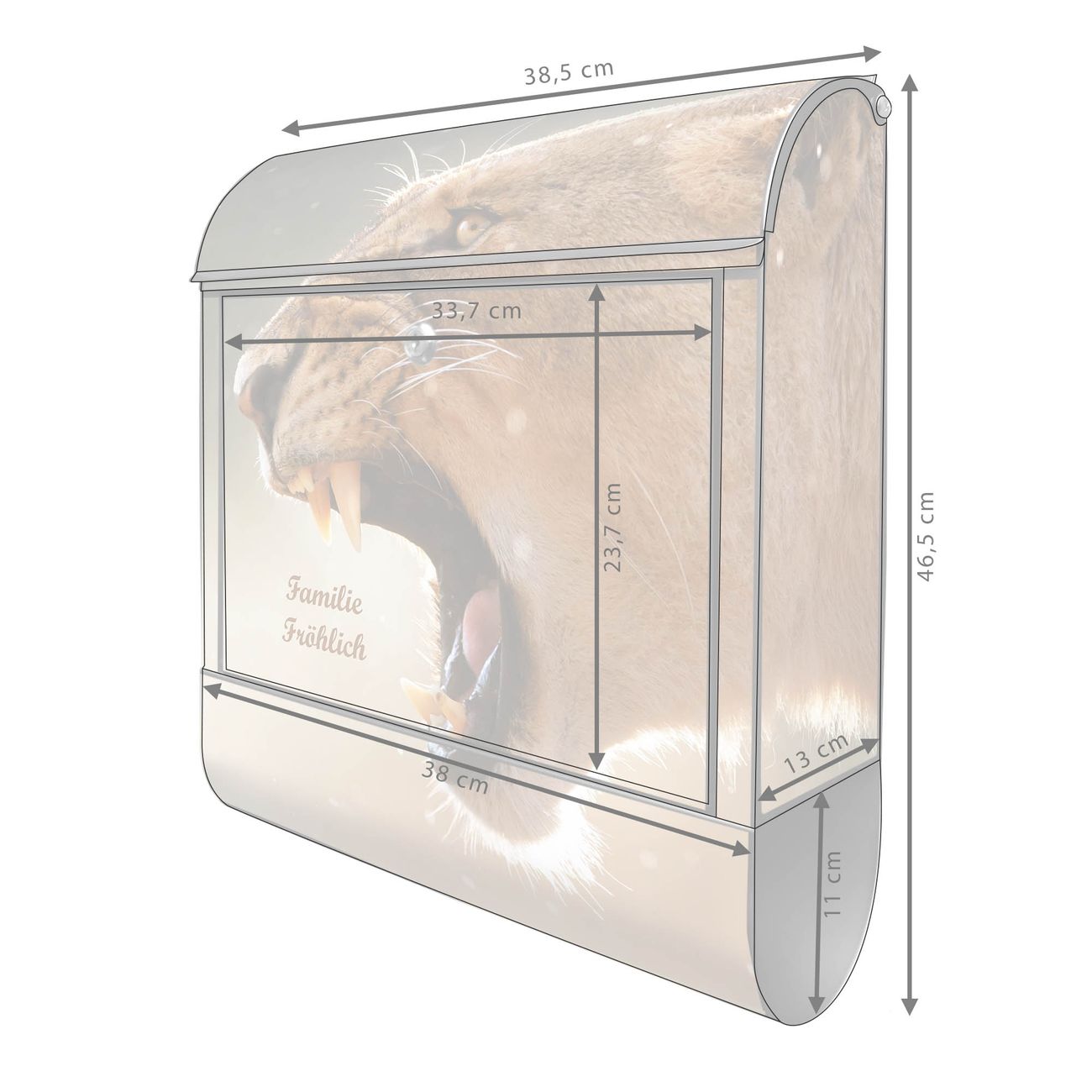 Großer Stahl Briefkasten Motiv Löwin