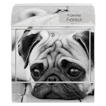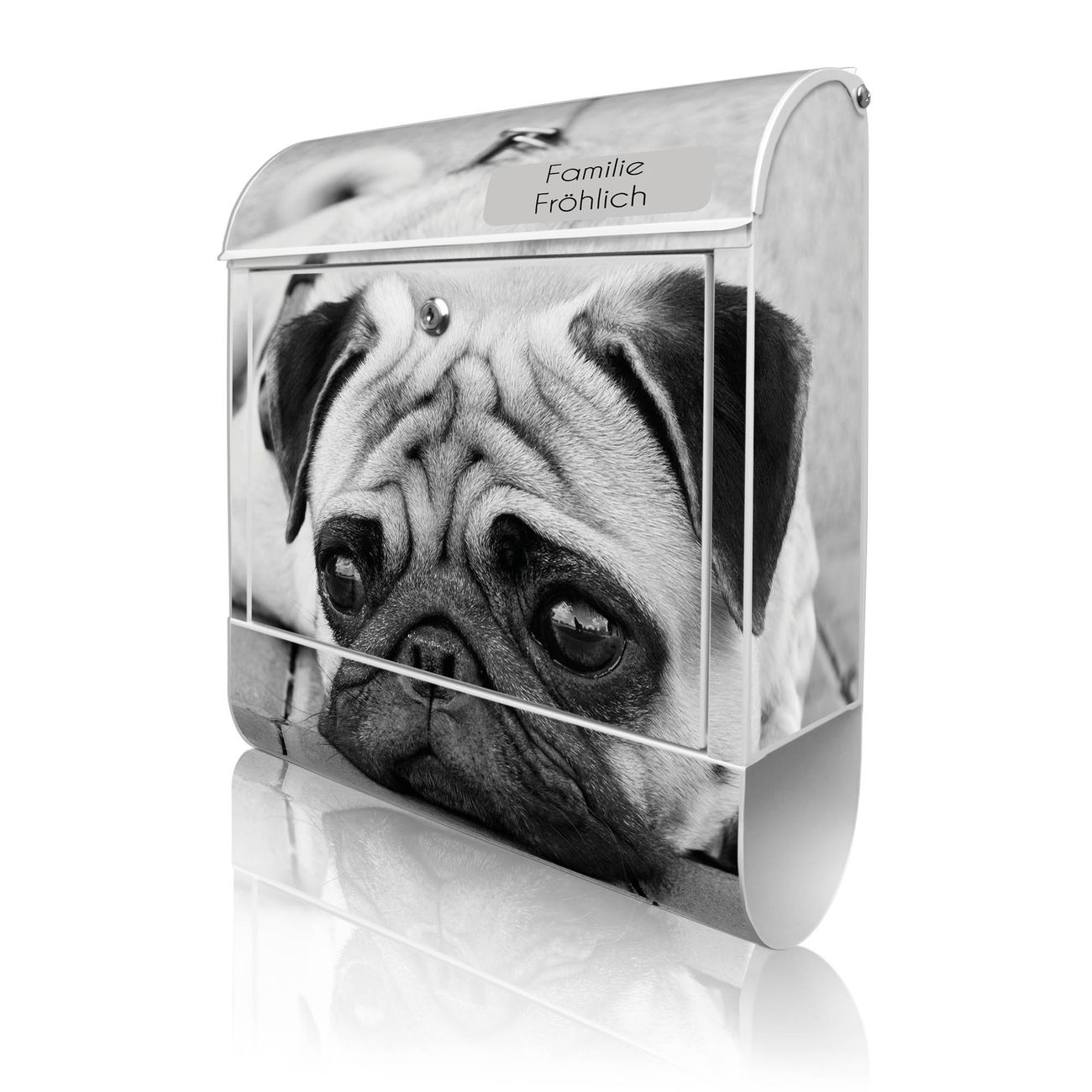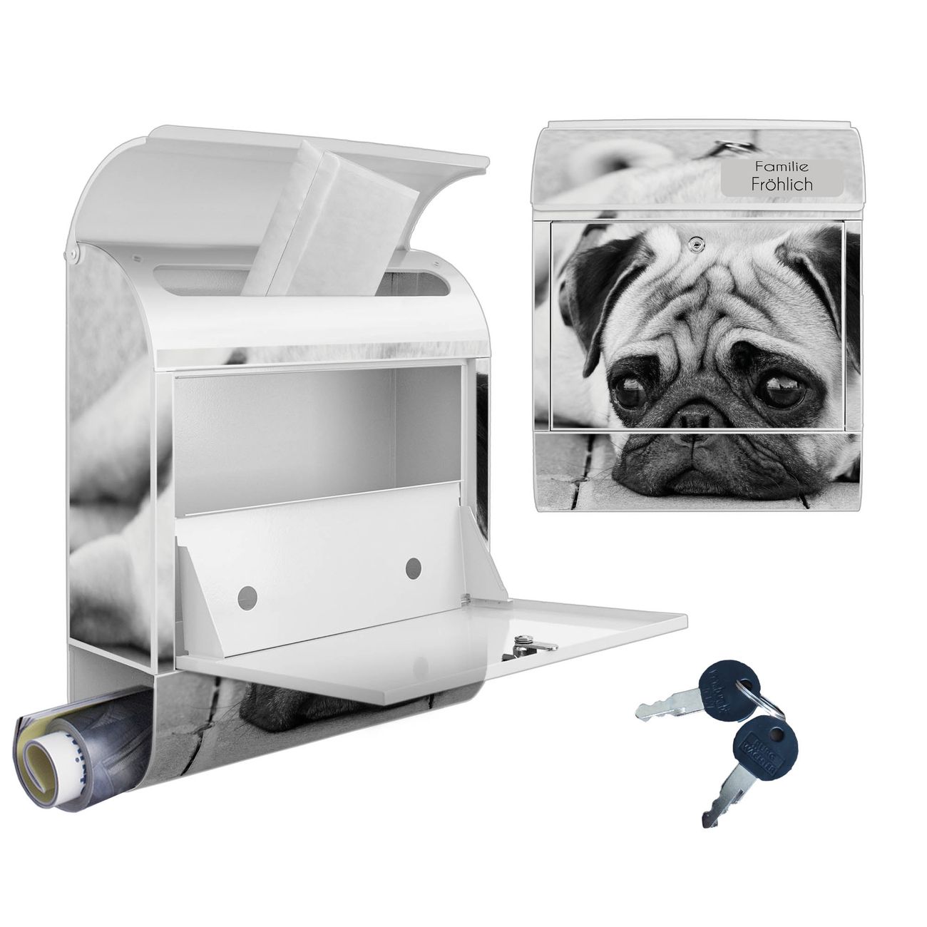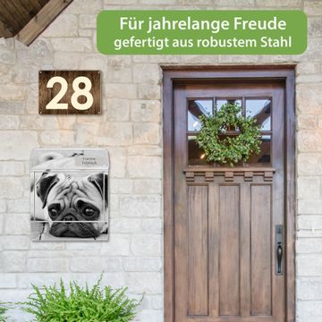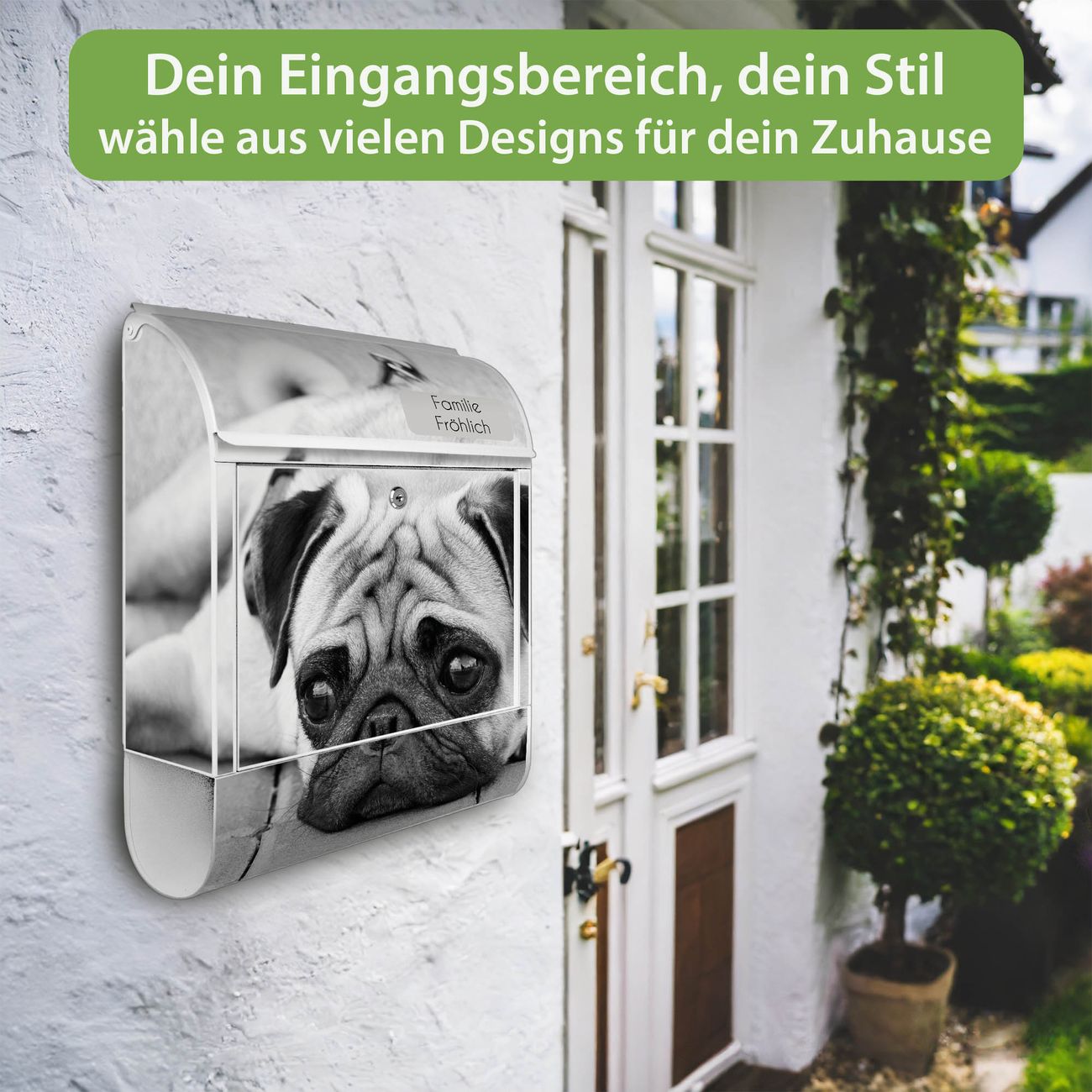 DESIGN: Der Postkasten mit Motiv Motiv Lotty hat ein sehr ansprechendes und ausgefallenes Design, damit entlocken Sie Ihren Nachbarn und dem Postboten ein Lächeln. Heben Sie Sich von der tristen grauen Masse ab, ohne auf Funktionalität zu verzichten. DETAILS: Der Postkasten besteht aus pulverbeschichtetem Stahl. Er ist 38x46x12,5cm groß. Das Motiv besteht aus einer wetter- und UV-resistenten Folie, die mit einem Schutzlaminat überzogen ist, sodass der Briefkasten zusätzlich vor Kratzern geschützt ist. Der Briefkasten wird mit Montagematerial, zusätzlich zwei Schlüssel sowie einer Bohrschablone geliefert. NUTZEN: Sie können diesen Briefkasten sowohl als Wandbriefkasten montieren oder einen passenden Ständer kaufen und als Standbriefkasten einbetonieren. Die Größe bietet genügend Platz für Sendungen aller Art, der Einwurf fasst auch größere A4 Sendungen. BANJADO: Ihr Briefkasten wird in Sachsen in einer kleinen Manufaktur von Hand veredelt. Die Motivfolie ist lösungsmittelfrei und schutzlaminiert für einen langen Halt. Wir legen großen Wert auf die Verbindung von Funktionalität und Design. Sie erhalten Handarbeit aus Sachsen.